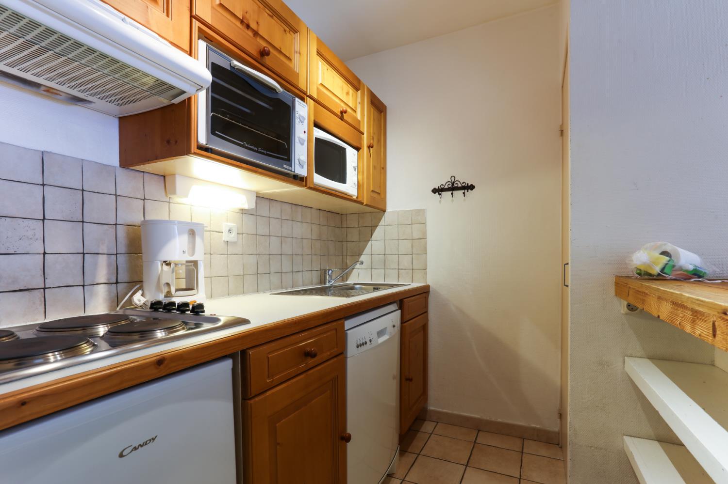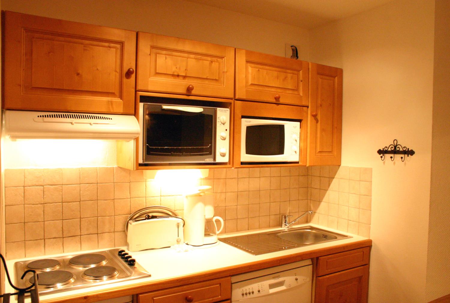 De volledig uitgeruste kitchenette is voorzien van een kookplaat, koelkast, magnetron, vaatwasser, koffiezetapparaat en broodrooster.