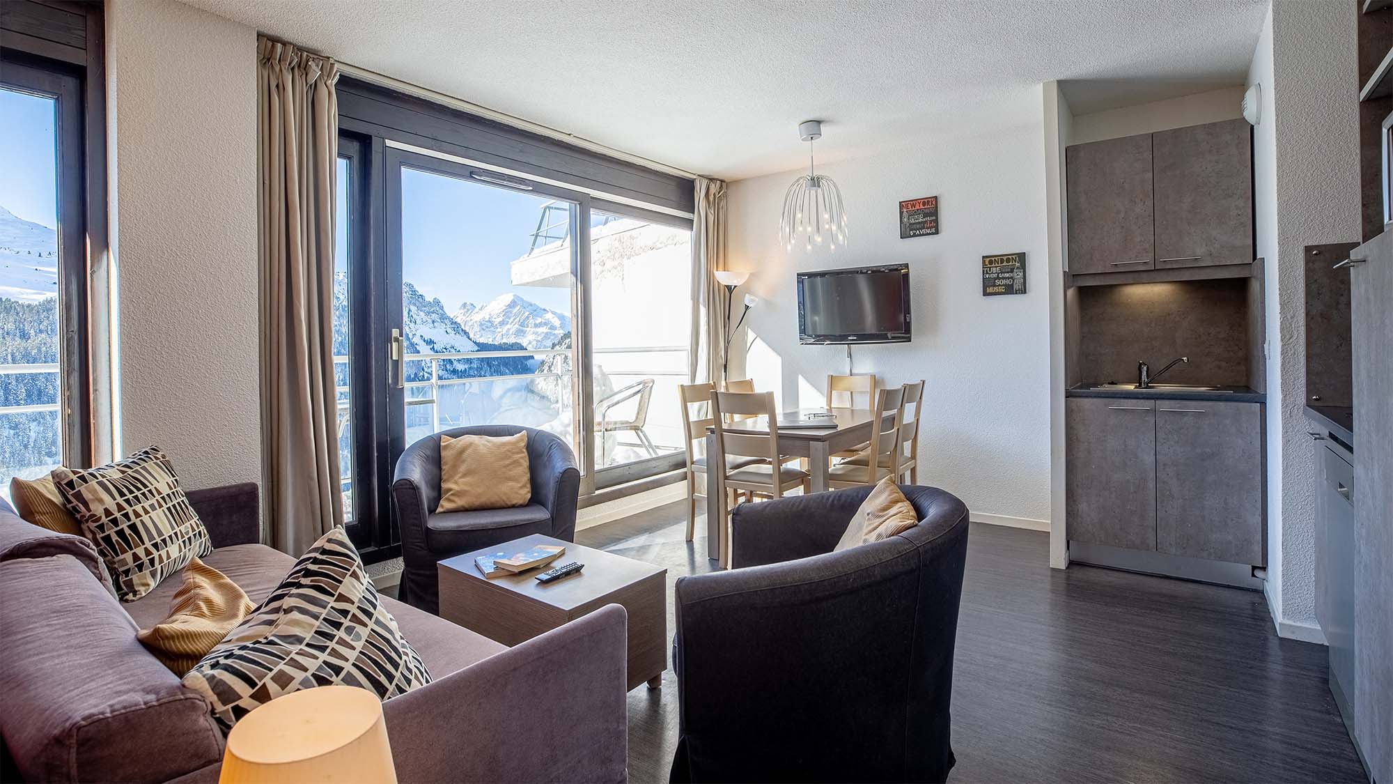 Het staat in Flaine-Forêt, op een hoogte van 1600 m, in een mooie en rustige omgeving, de residentie biedt accommodaties voor 4-10 personen. De residentie ligt mooi, dichtbij het centrum van het resort en direct naast de Grans Vans stoeltjeslift, u kunt zonder enige moeite naar de skipistes en kunt op uw ski’s naar huis.
