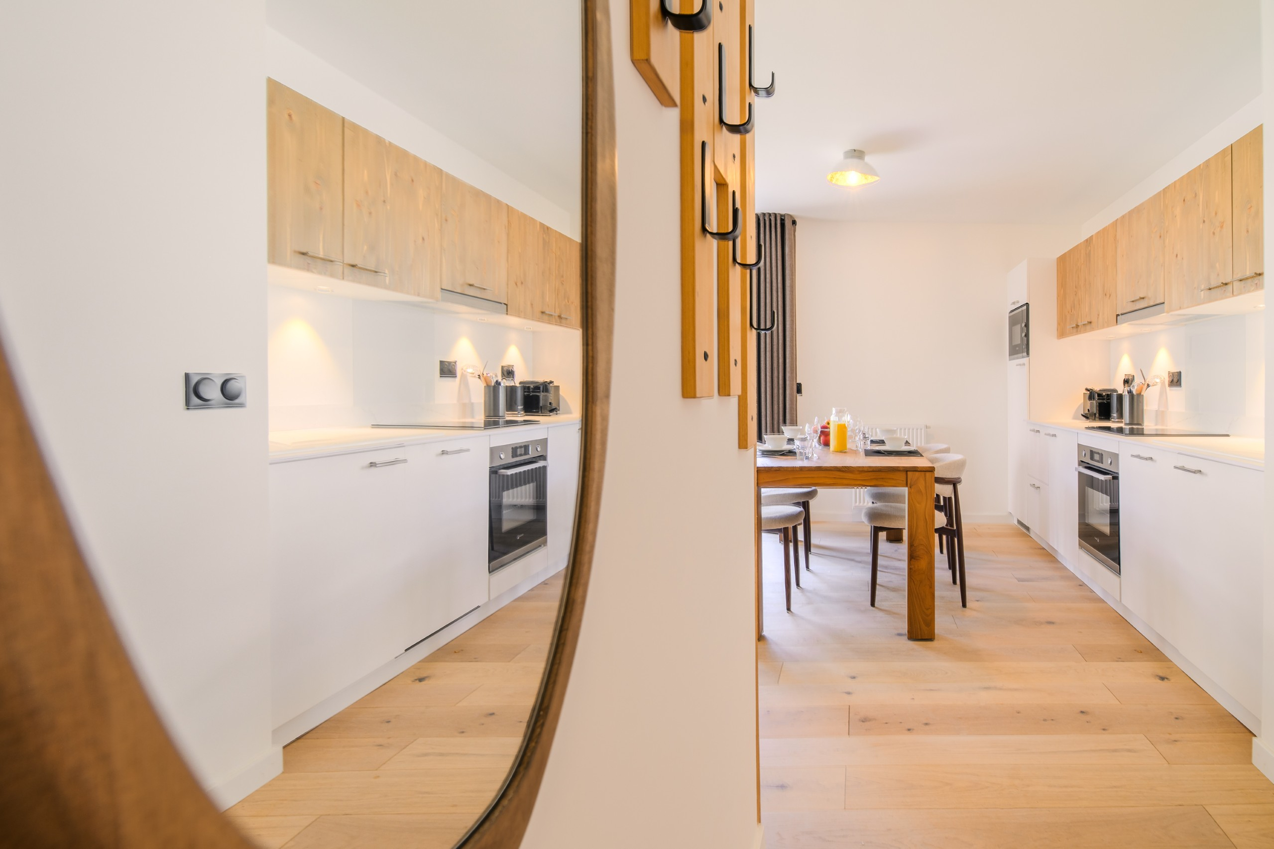 Verder is het appartement uitgerust met een flatscreen-tv met TNT-zenders en wifi. De open keuken beschikt over een keramische kookplaat, oven, magnetron, vaatwasser, koelkast, evenals een koffiezetapparaat, broodrooster, waterkoker en volledig servies. Hoogwaardig beddengoed – dekbedden en kussens – en een badkamer met handdoekradiator en handdoeken zorgen voor extra comfort.