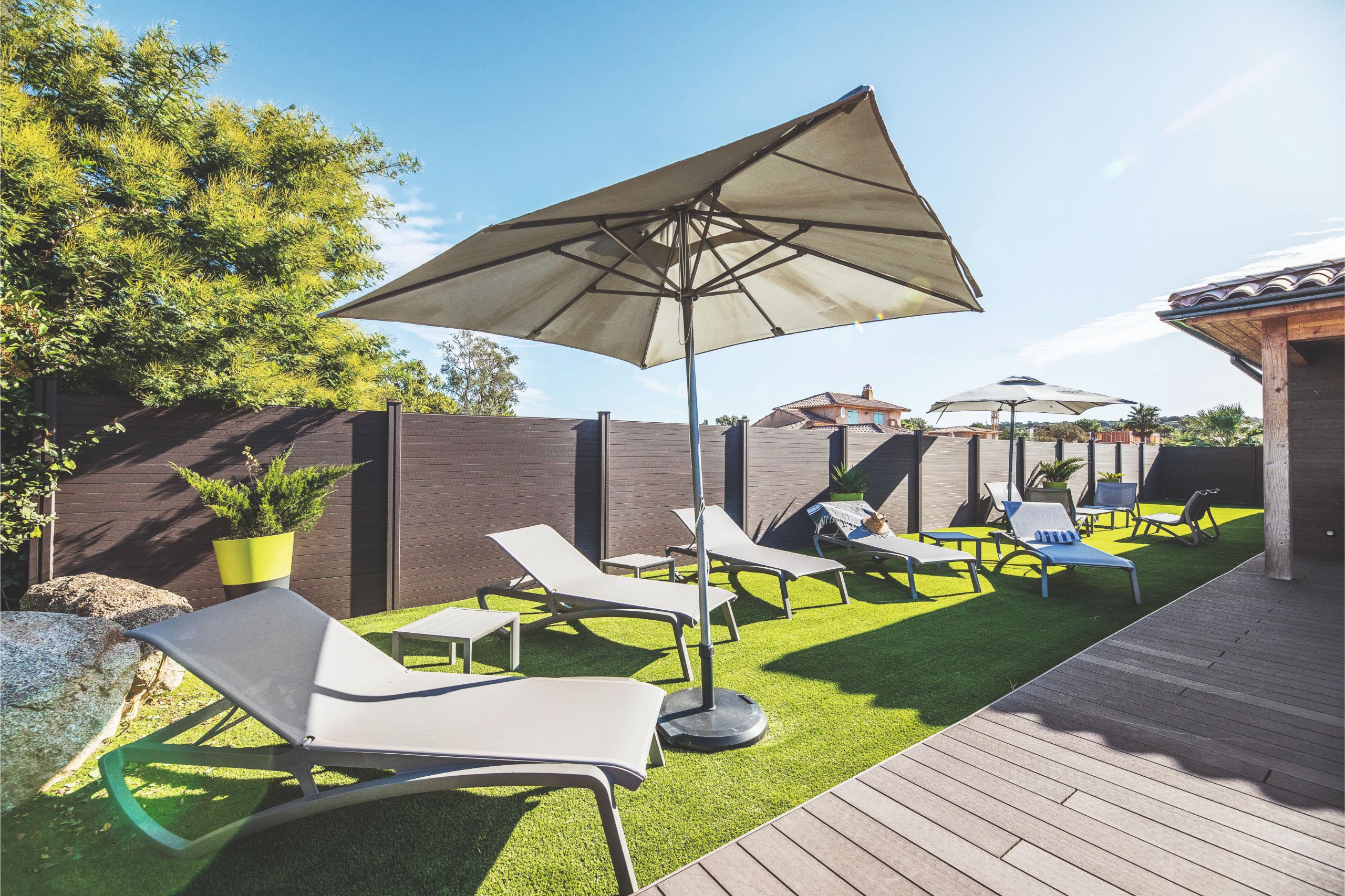 Op slechts 300 meter van het prachtige strand van Cala Rossa bieden deze stijlvolle villa’s de perfecte mix van privacy en ontspanning. Elke villa beschikt over een eigen verwarmd zwembad (van april tot november) en een smaakvol ingericht terras – ideaal om te genieten van de Corsicaanse zon.