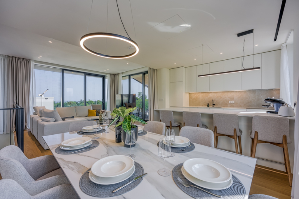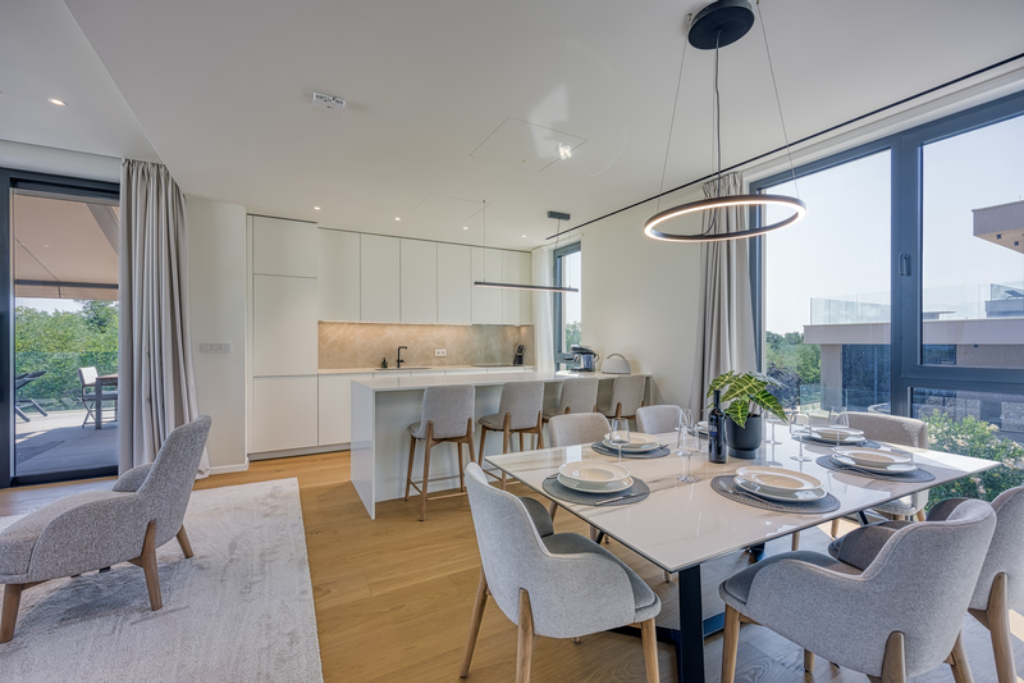 De villa is gelegen in een exclusief resort in Savudrija, Istrië, dat zich uitstrekt over negen hectare langs de Adriatische kust en modern luxe combineert met innovatief design. Het resort beschikt over 179 premium appartementen en 55 luxe villa’s, waarvan 11 met privé infinity-pools op de daken. In het hart van het resort vindt u de grootste infinity-pool op het dak van Europa en een dakterrasrestaurant met panoramisch uitzicht op de Golf van Piran en de Dolomieten.