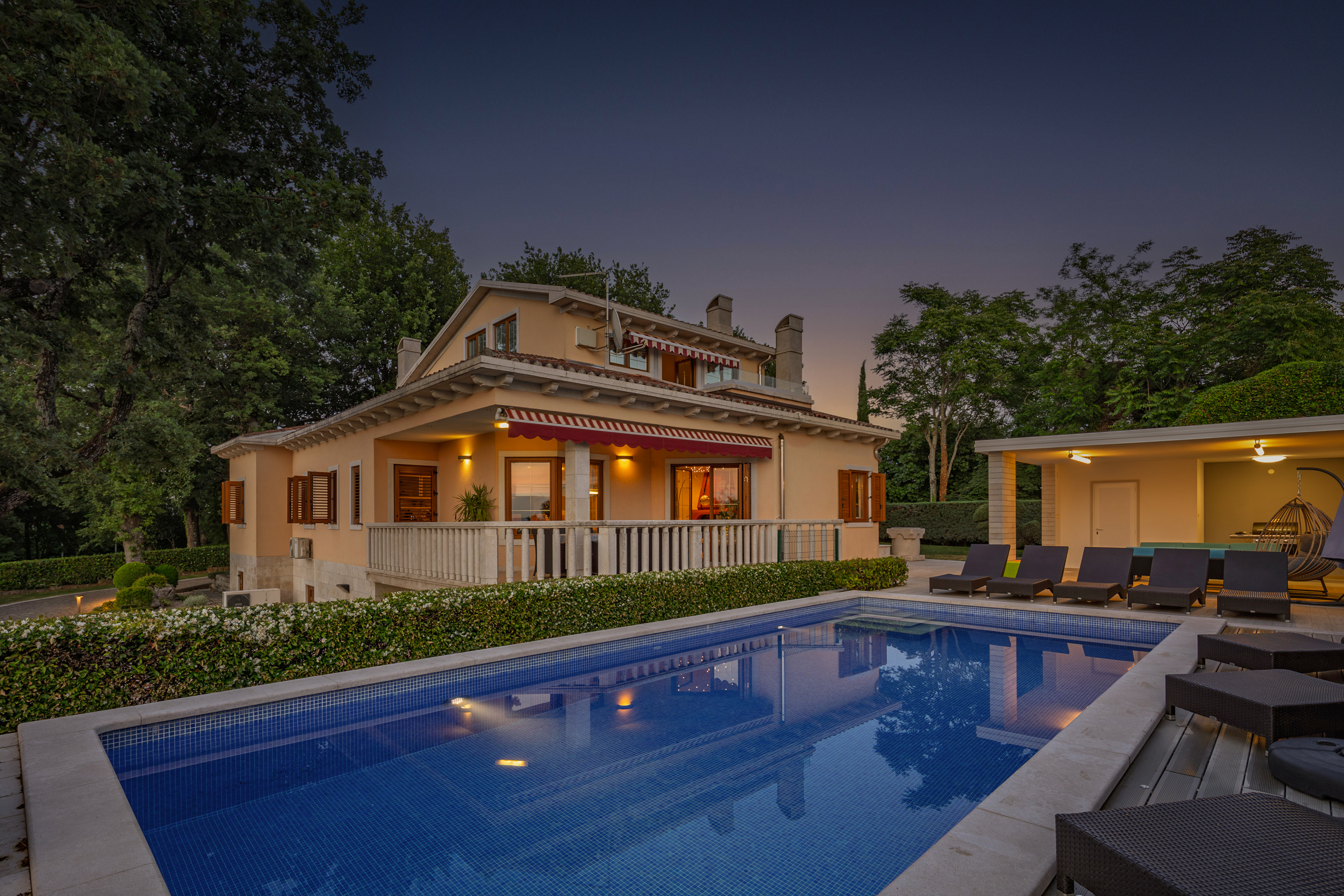 Genesteld in de schilderachtige heuvels van Istrië, biedt deze villa een perfecte combinatie van elegantie, comfort en privacy. Gelegen in het rustige dorp Presika, biedt deze exclusieve villa de ideale ontsnapping voor gezinnen en vrienden die op zoek zijn naar een authentieke mediterrane vakantie. Slechts enkele minuten van de historische stad Labin, ligt de villa ook op slechts 5 km van de prachtige stranden van Rabac, beroemd om zijn kristalheldere water en ongerepte witte kiezelstranden. De dichtstbijzijnde internationale luchthaven, Pula (PUY), ligt op slechts 40 km afstand en is gemakkelijk bereikbaar.