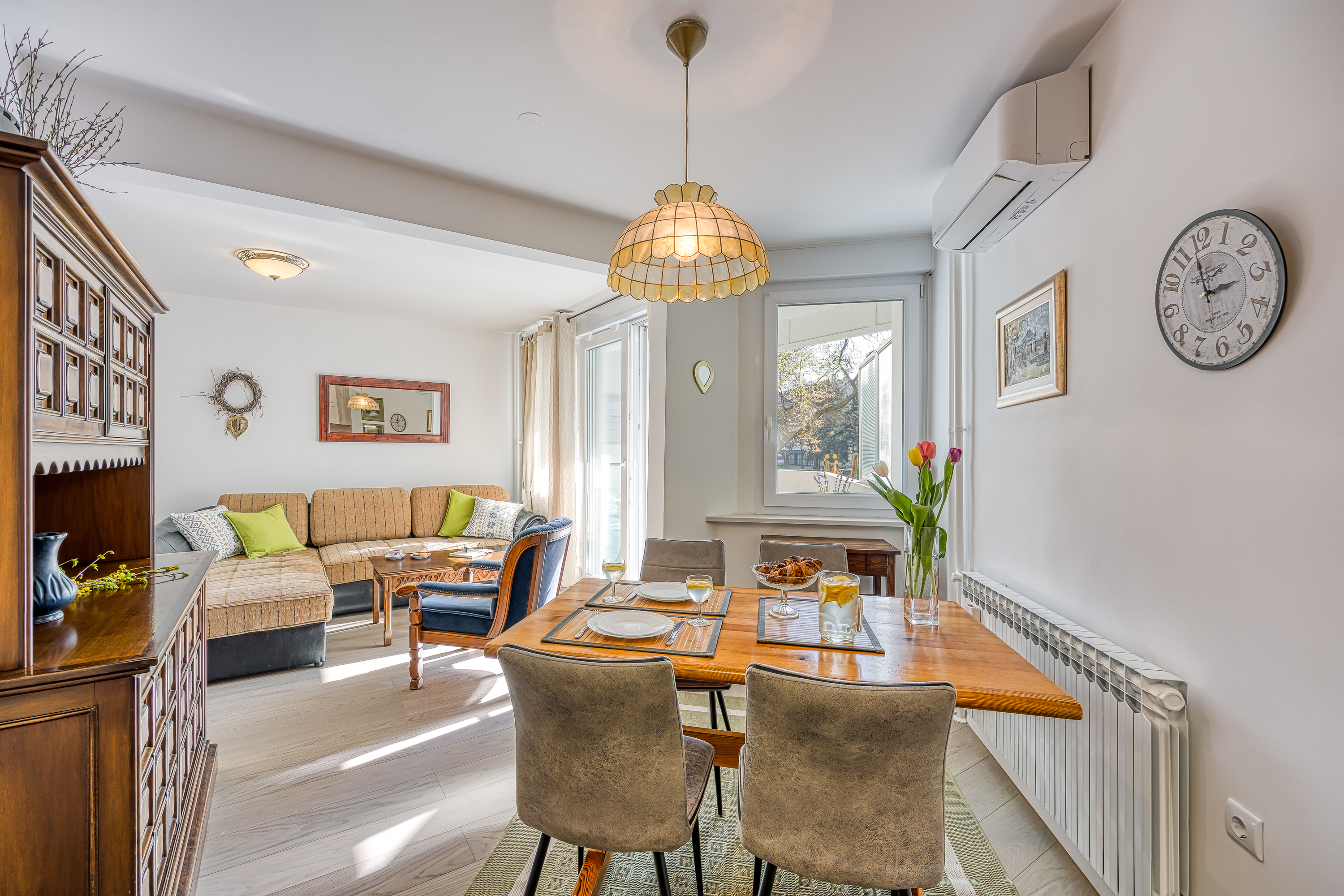 Dit prachtige appartement bevindt zich in een rustige woonwijk in het westelijke deel van Zagreb. Het is slechts 20 minuten van het Ban Jelacic Plein, het belangrijkste plein van Zagreb in de benedenstad. De stad biedt veel te zien en te doen, van de indrukwekkende gotische kathedraal tot het eigenzinnige Museum van Gebroken Relaties. De grootste boerenmarkt, Dolac, is slechts 20 minuten lopen, terwijl Britanski Trg (Brits Plein) slechts 15 minuten van het appartement verwijderd is. Het internationale vliegveld Franjo Tu?man in Zagreb ligt op 30 minuten rijden.