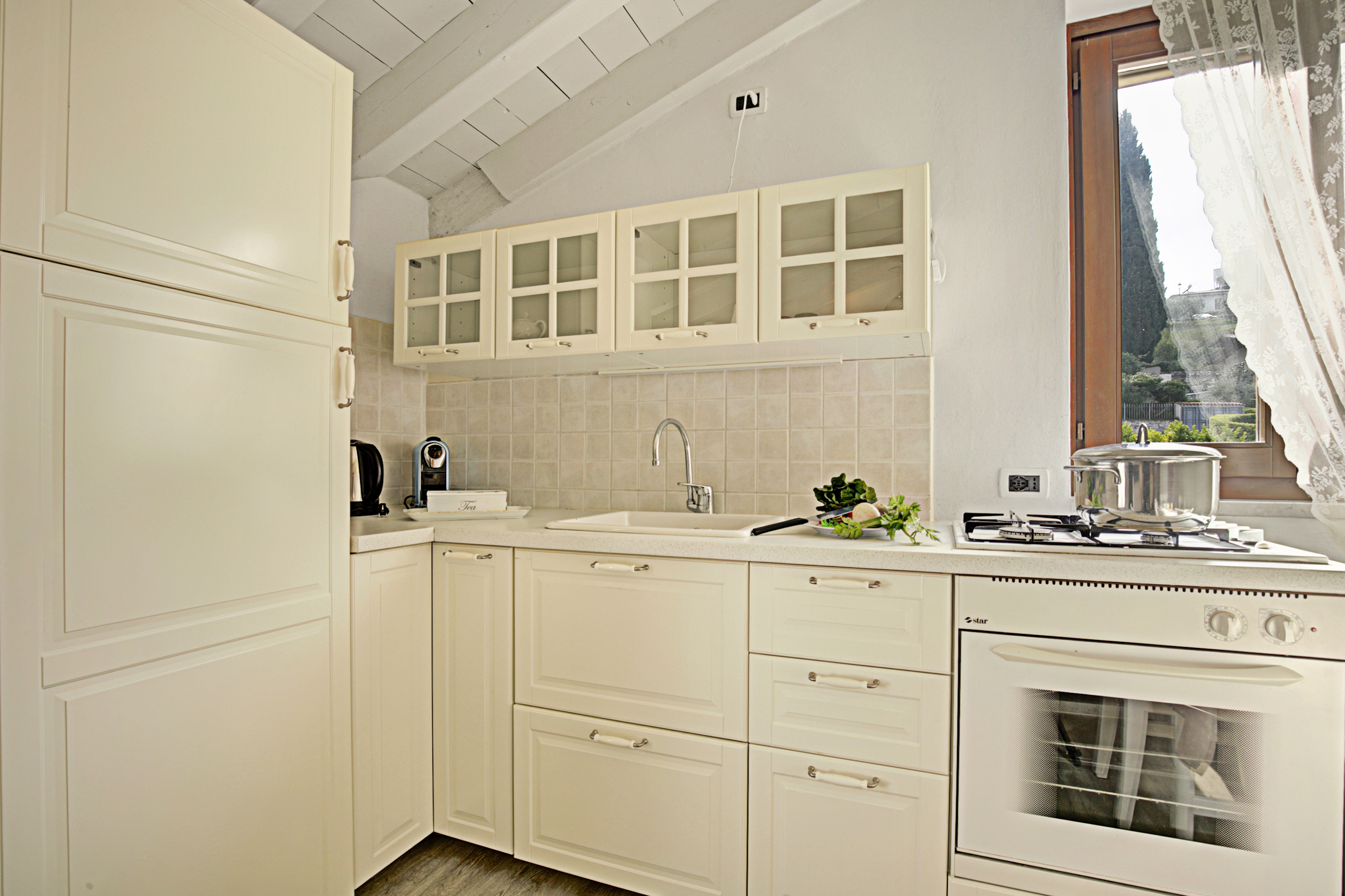 Gelegen op de tweede verdieping van een gebouw met twee verdiepingen, beschikt dit appartement over een gezellige woonkamer met airconditioning en een privébalkon – perfect om te ontspannen en van het uitzicht te genieten. De eetkeuken is volledig uitgerust met moderne voorzieningen, waaronder een waterkoker, oven, kookplaat, koelkast en koffiemachine (let op: gasten dienen compatibele cups bij de eigenaar aan te schaffen). Extra voorzieningen zijn onder meer gratis wifi, satelliet-tv en centrale verwarming voor de koelere maanden.