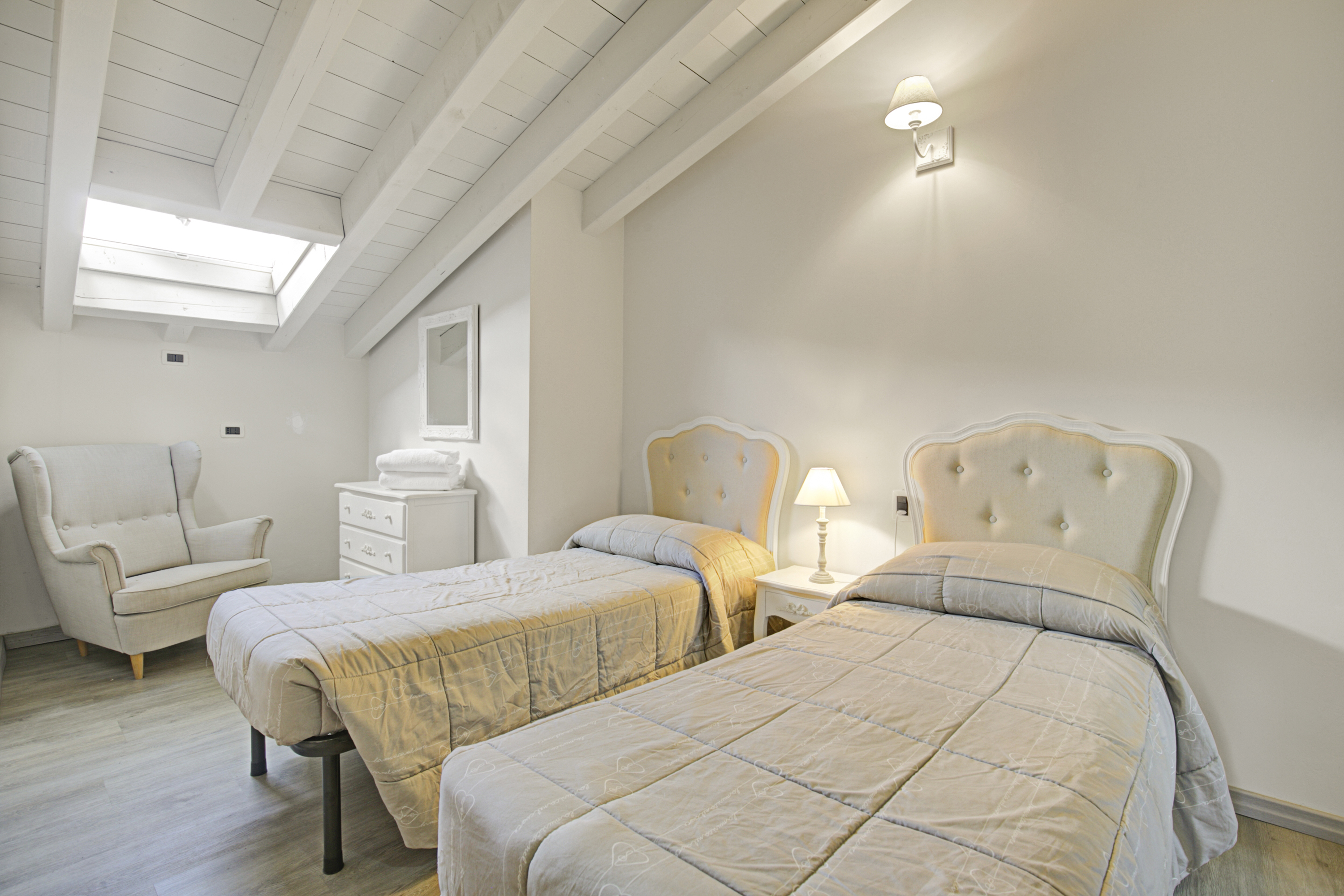Slaapkamer 2: Voorzien van twee eenpersoonsbedden, een kledingkast en airconditioning.