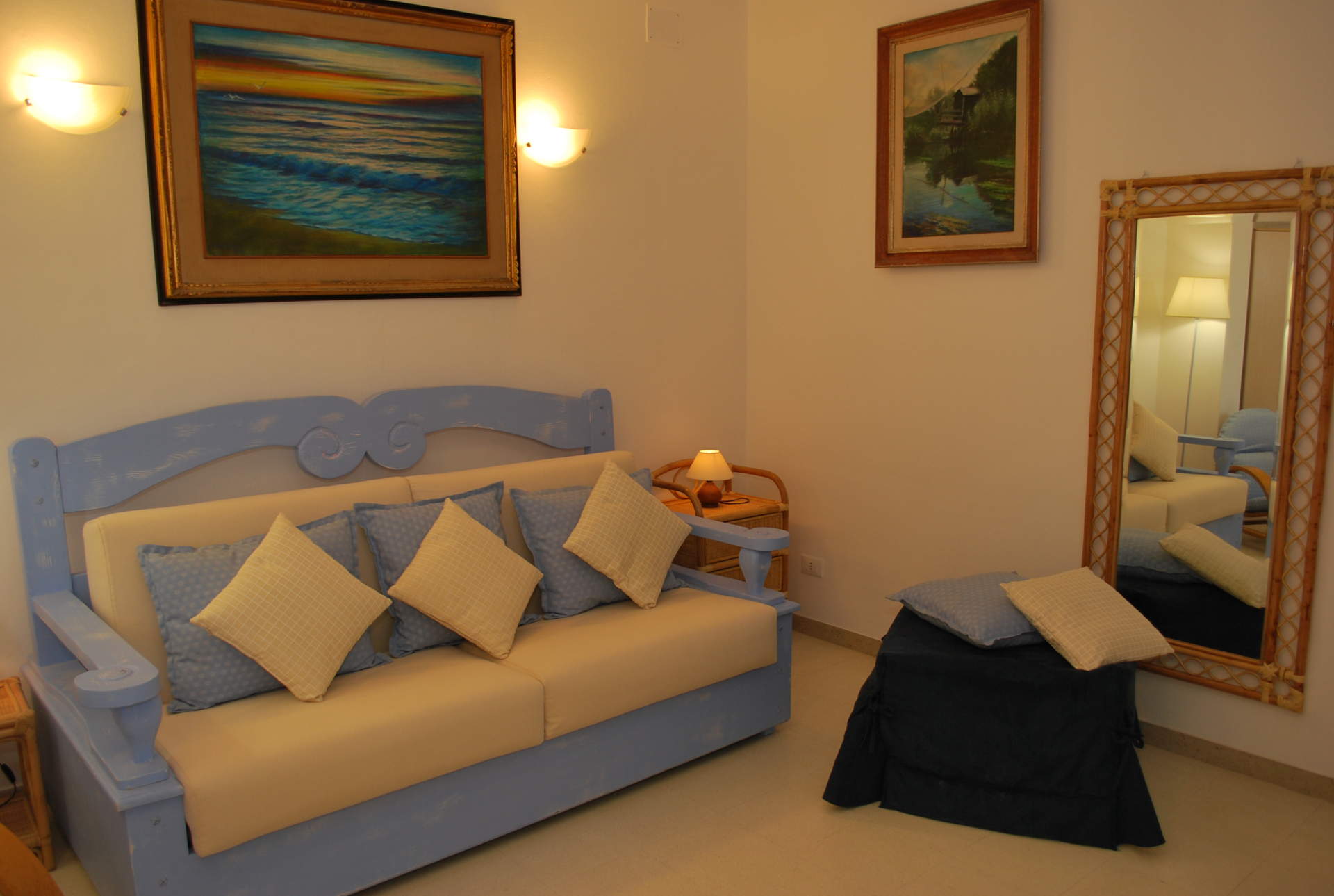 Deze comfortabele studio, ligt op hoogste verdieping en is bereikbaar met de lift. Deze woning is geschikt voor 2 tot 3 personen en heeft een oppervlakte van ca. 32m². De comfortabele woonkamer is gezellig gemeubileerd en voorzien van twee eenpersoonsslaapbanken die in een tweepersoonsbed veranderd kunnen worden. Ook staat hier nog een eenpersoonsslaapbank. De hoekopgestelde keuken is volledig ingericht met o.a. een 2-pits elektrisch fornuis, magnetron, koelkast met vriesvak, broodrooster, Italiaans en Nederlands koffiezetapparaat en een vaatwasser. Vanuit de woonkamer heeft u direct toegang tot het balkon voorzien van tuinmeubilair, waarvandaan u een adembenemend uitzicht heeft. De badkamer beschikt over een douche, toilet, bidet, haardroger en wasmachine. Het appartement is voorzien van centrale verwarming en TV met satelliet verbinding. Al het meubilair is in Zweeds grenen. Deze studio kan eventueel met de andere twee appartementen (Nautilus en Le Finestre) verbonden worden, mocht u met een grotere groep vakantie willen houden.