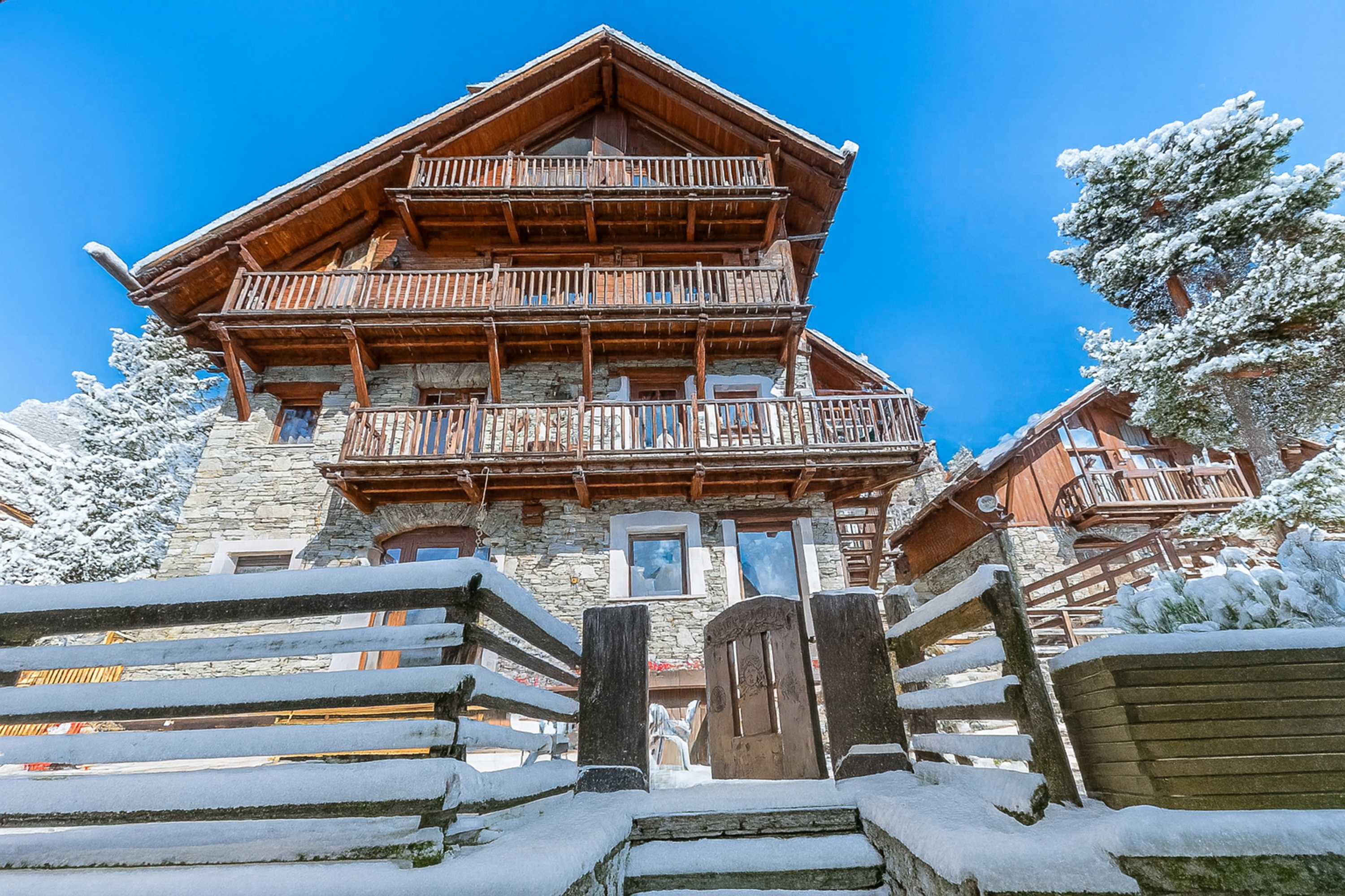 Ontsnap naar een van de meest schilderachtige gebieden van de Italiaanse Alpen. De accommodatie bevindt zich in het charmante dorp Bessen Haut, ook bekend als Bessè Alto, een gerestaureerd bergdorp uit de 18e eeuw. Het appartement, gelegen op de begane grond van een traditionele lodge van steen en hout, biedt plaats aan vijf personen. Het is het hele jaar door een comfortabel vakantieverblijf voor vrienden of families. Het appartement biedt een prachtig uitzicht over het dal en de omliggende bergen. De entree loopt via een mooie tuin aan de achterzijde van het huis.