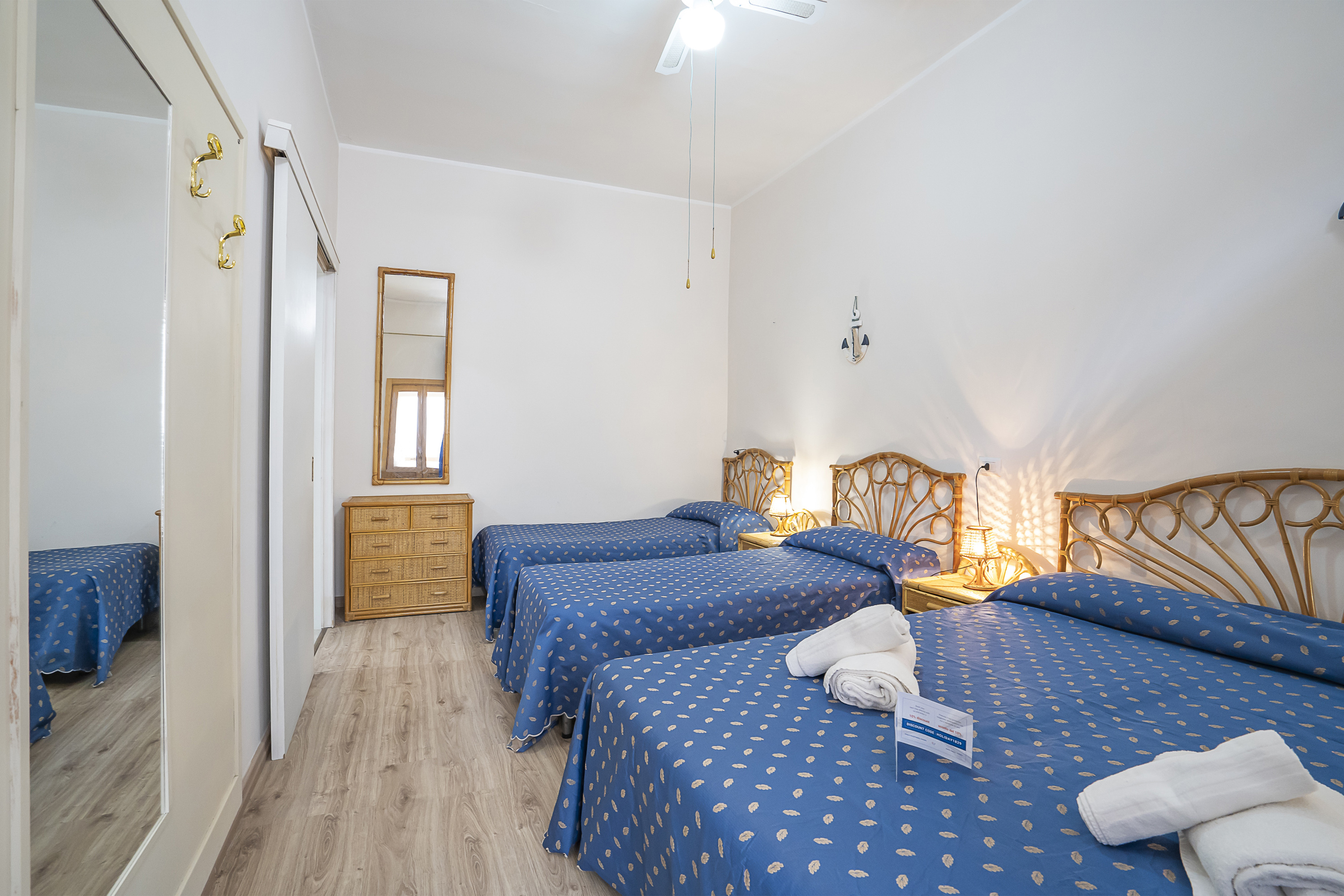 Slaapkamer 2: De tweede slaapkamer heeft een tweepersoonsbed en twee eenpersoonsbedden.