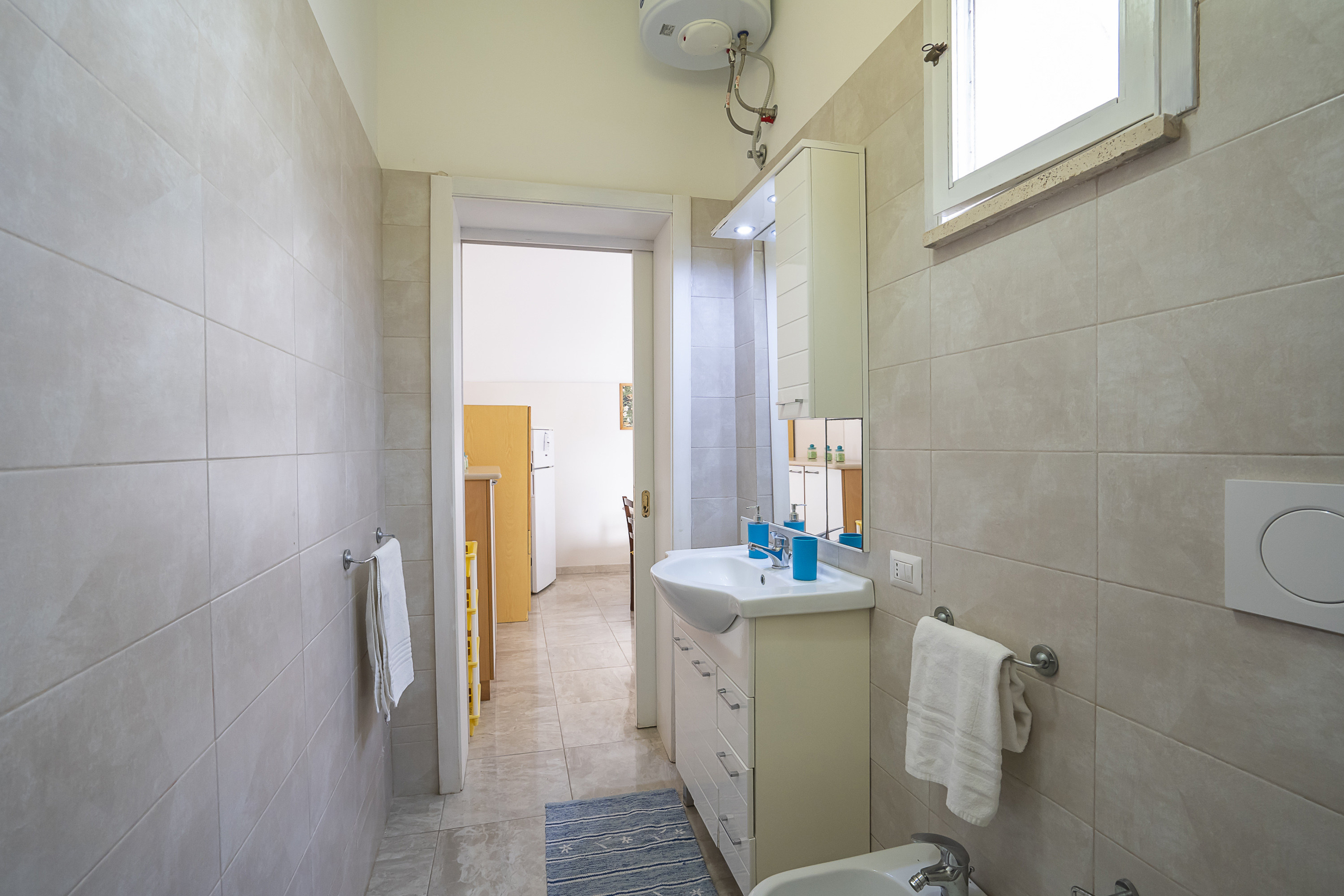 Badkamer 1: Het appartement heeft een goed uitgeruste badkamer met bidet, douche en toilet.