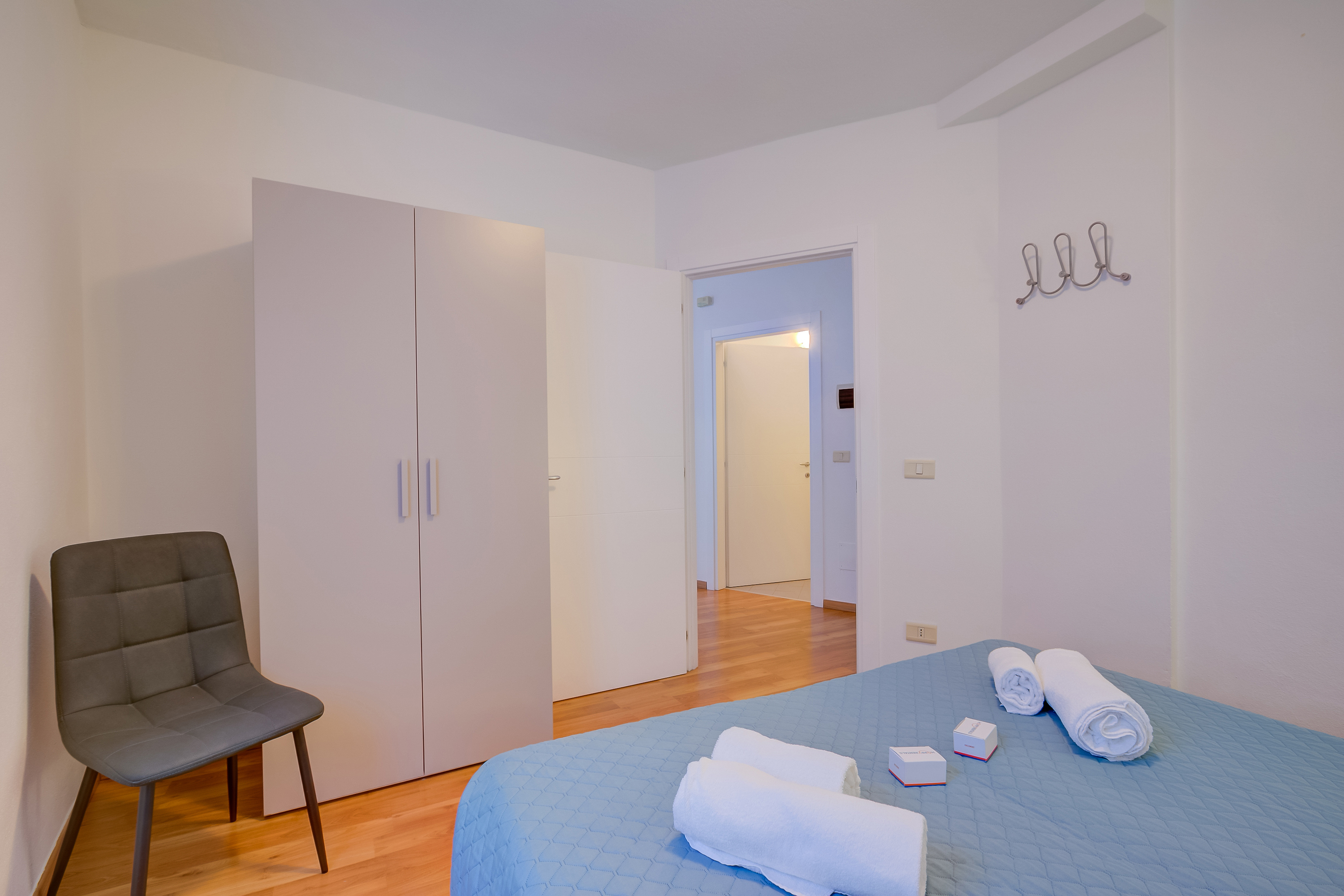 Slaapkamer 1: Een goed verlichte slaapkamer met een tweepersoonsbed en een kledingkast.
