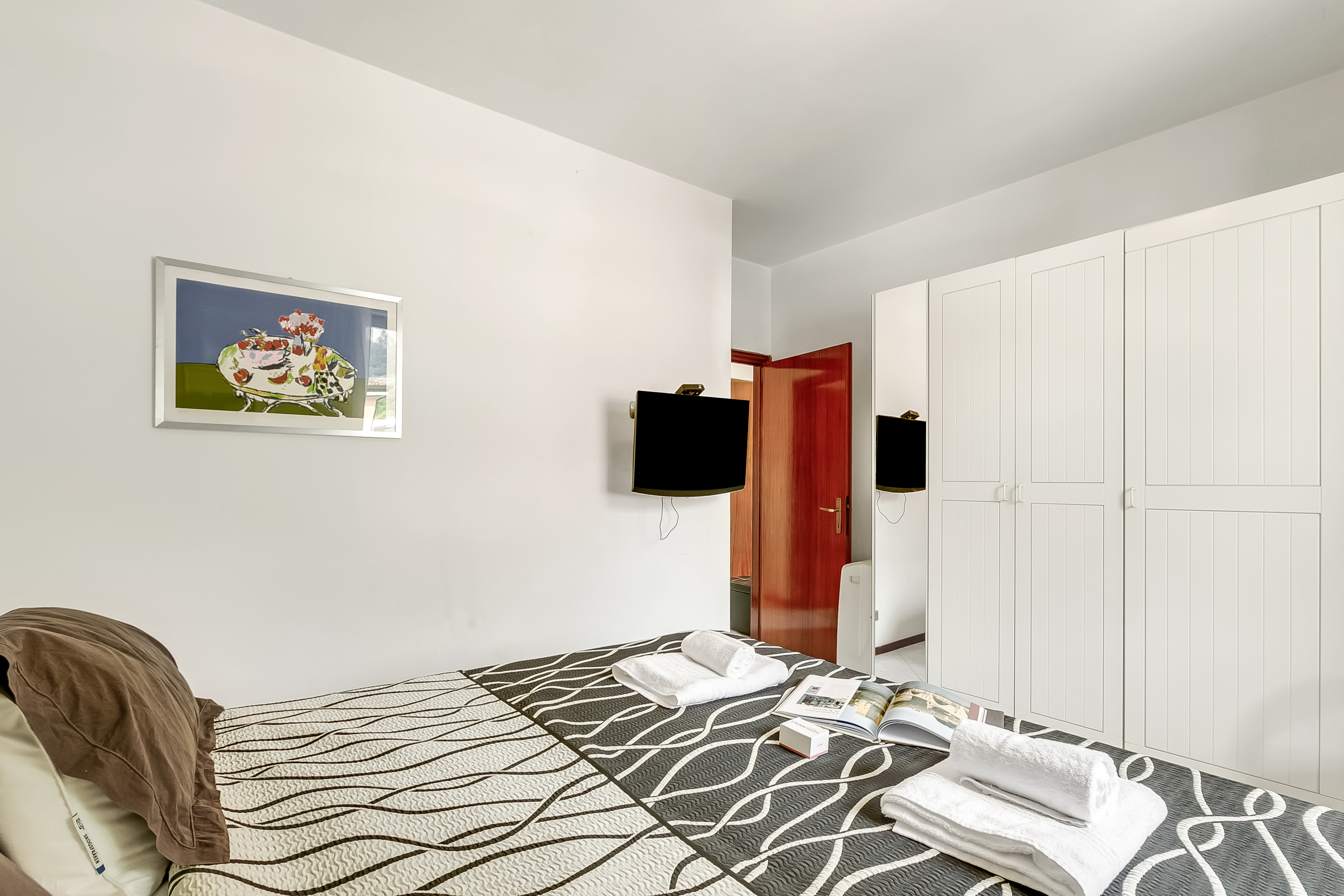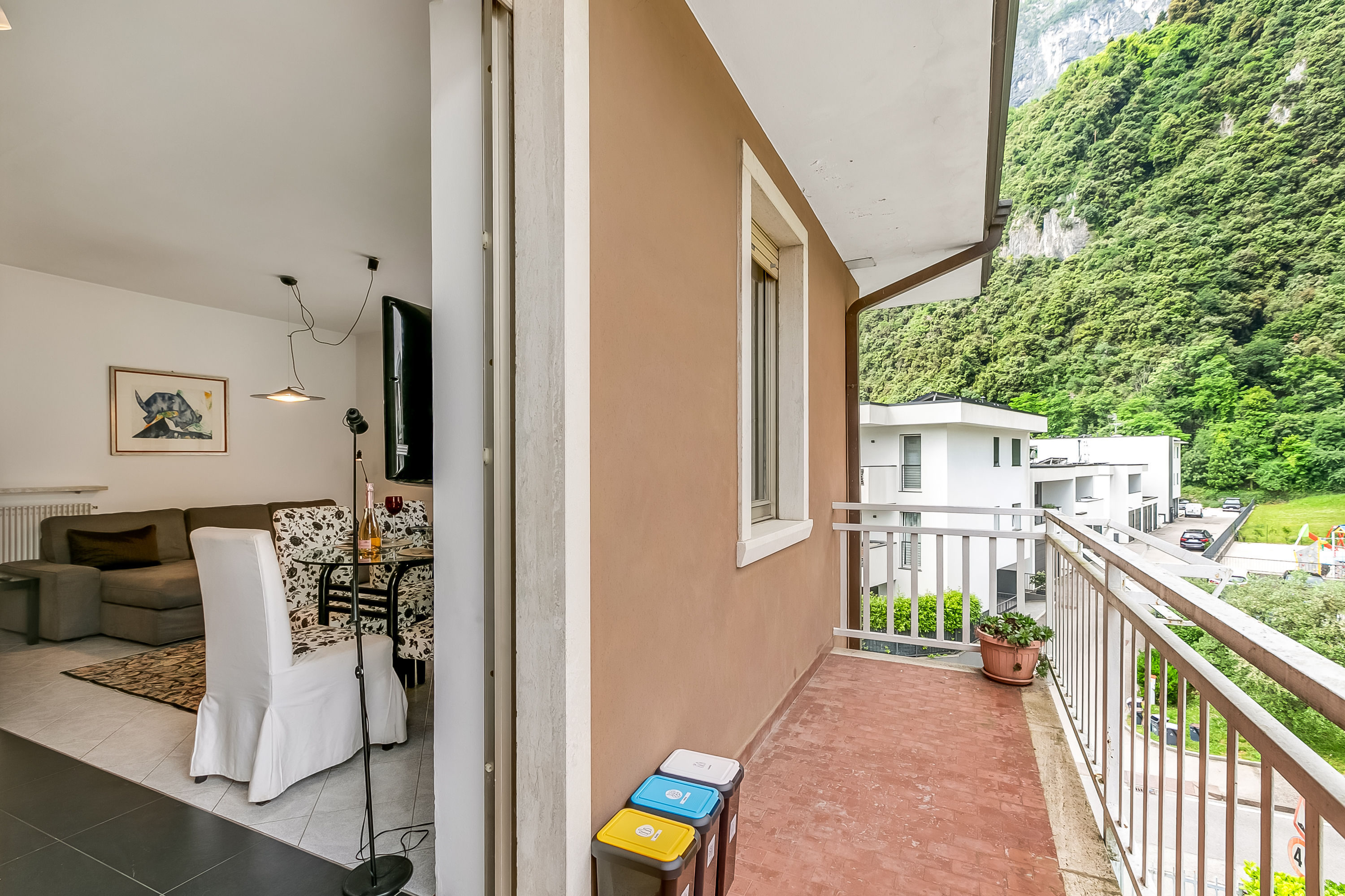 Dit lichte en gastvrije vakantiehuis is ideaal gelegen in een groene woonwijk, op slechts 10 minuten lopen van de oever van het meer. Het biedt een vredige omgeving en ligt tegelijkertijd dicht bij het hart van een charmant stadje aan het meer, Riva del Garda, aan de noordpunt van het Gardameer. Gasten kunnen gemakkelijk het plaatselijke strand en het historische stadscentrum bereiken, dat bekend staat om zijn boetiekjes, ambachtelijke winkels en levendige sfeer, allemaal op korte loopafstand. Nabijgelegen bezienswaardigheden zijn onder andere de Apponale-toren en het middeleeuwse kasteel Rocca di Riva, beide op slechts 10 minuten lopen. Voor gasten die per vliegtuig arriveren, is de dichtstbijzijnde internationale luchthaven Verona Valerio Catullo Airport, die zich op ongeveer een uur en tien minuten rijden met de auto bevindt.
