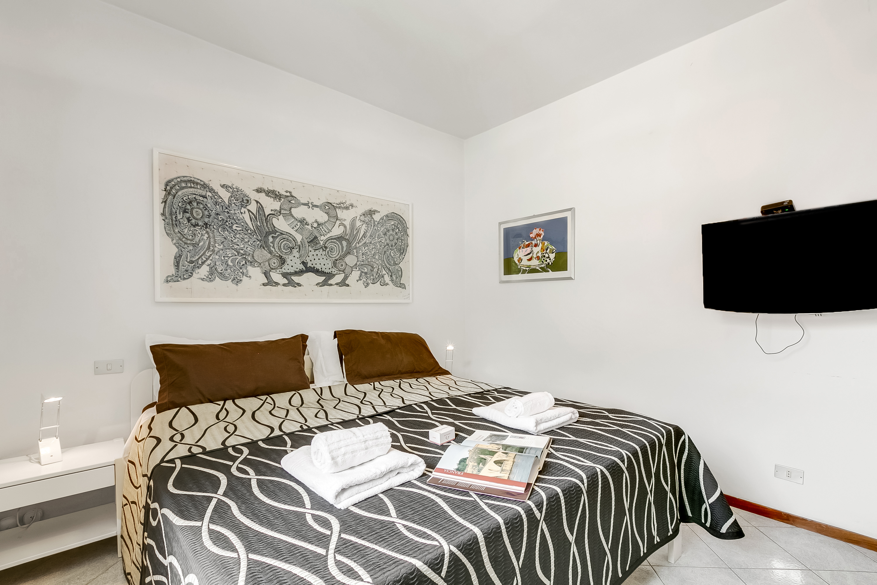 Deze lichte en uitnodigende woning met twee zijden bevindt zich op de tweede verdieping van een gebouw met drie verdiepingen, is omgeven door weelderig groen en biedt een gastvrije open woonkamer met een volledig uitgeruste keuken. De ruimte wordt aan twee zijden begrensd door een privé balkon, wat zorgt voor een lichte en luchtige sfeer. De stijlvol ingerichte woonkamer omvat een comfortabele slaapbank, een eettafel en een grote flatscreen satelliet-tv. De moderne keuken is uitgerust met een koffiezetapparaat, kookplaat, oven, magnetron, vaatwasser en koelkast, en biedt alles wat nodig is voor een gemakkelijk verblijf met eigen kookgelegenheid.