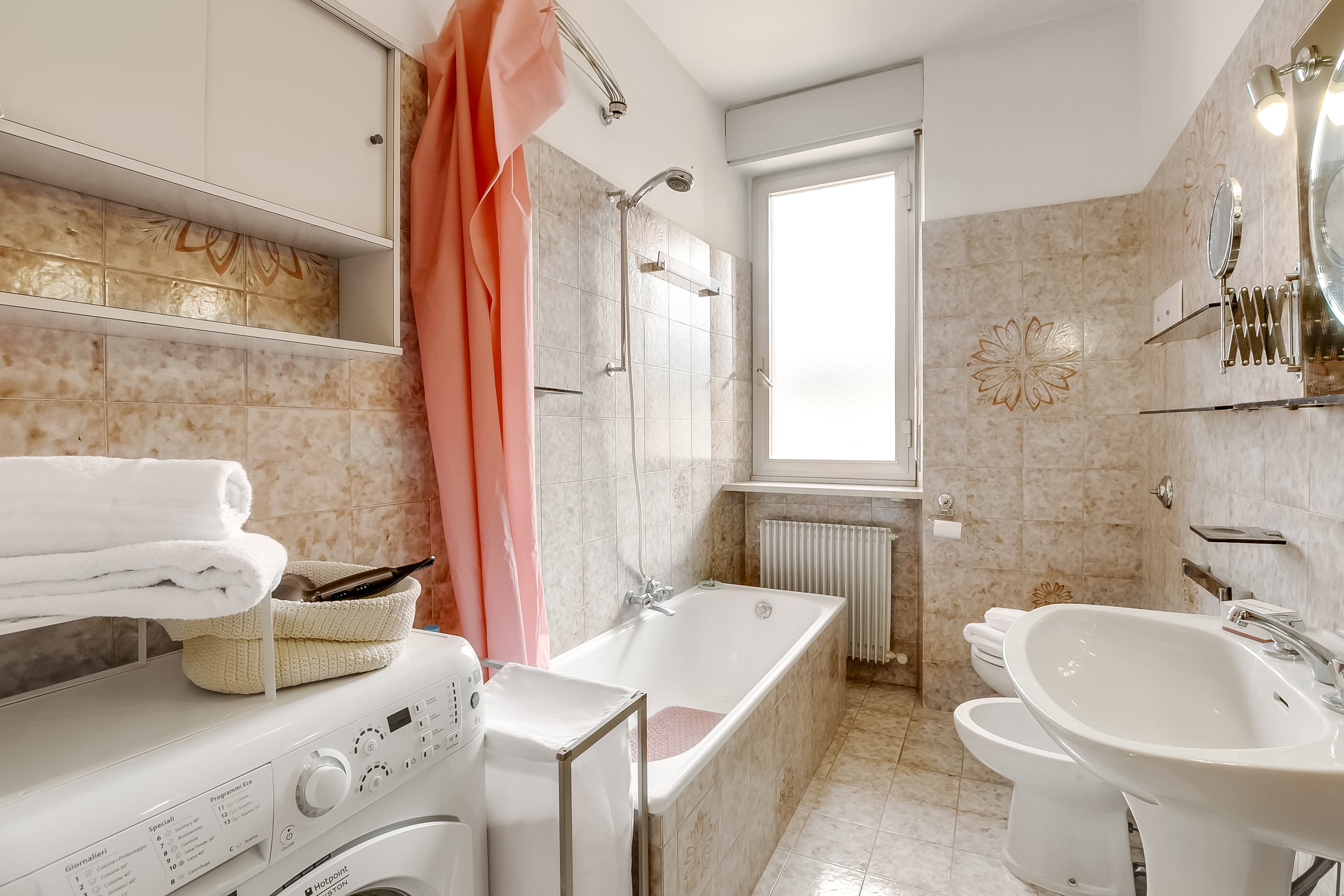 Badkamer: De badkamer is uitgerust met een douche in het bad, een wastafel, een bidet en een toilet.