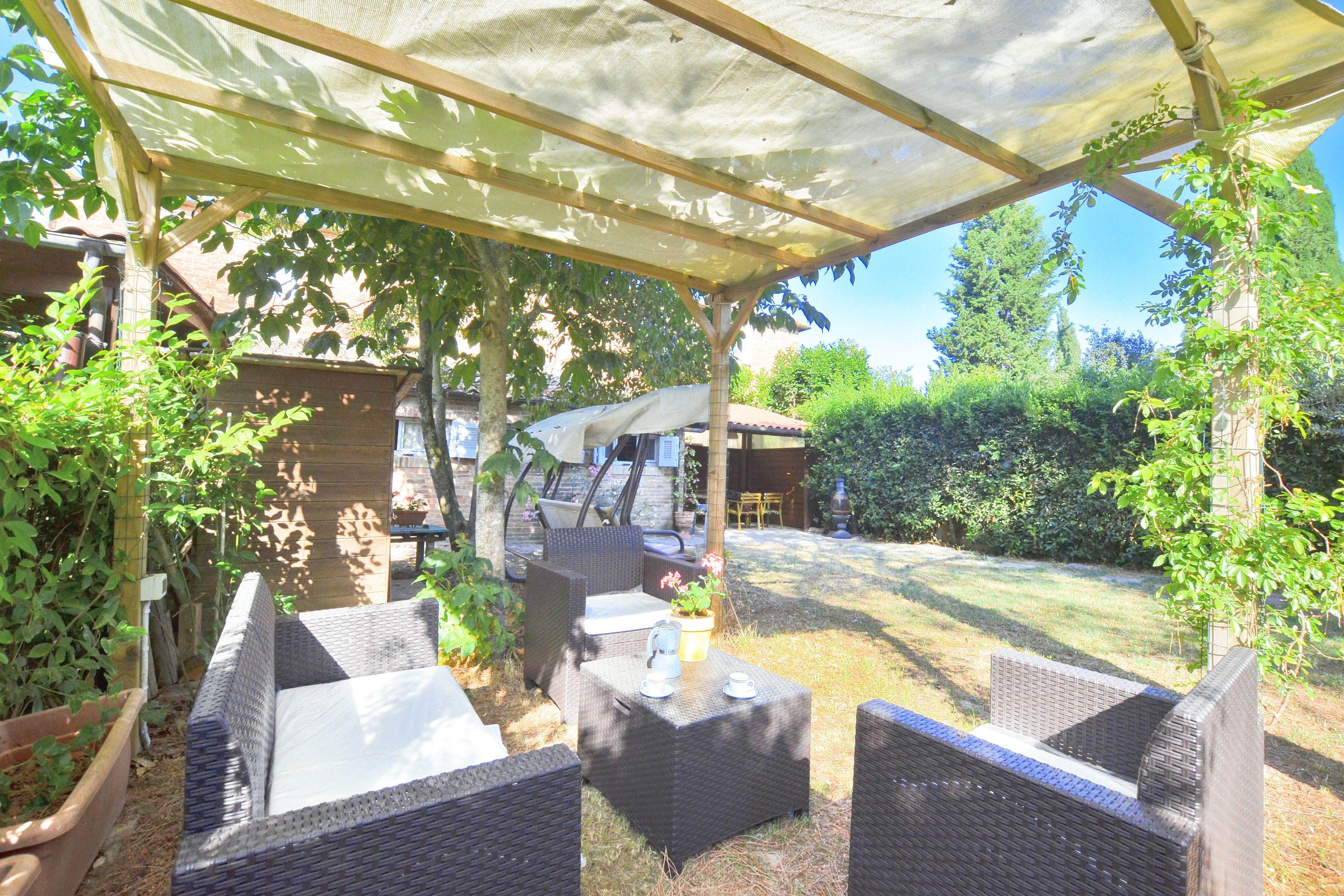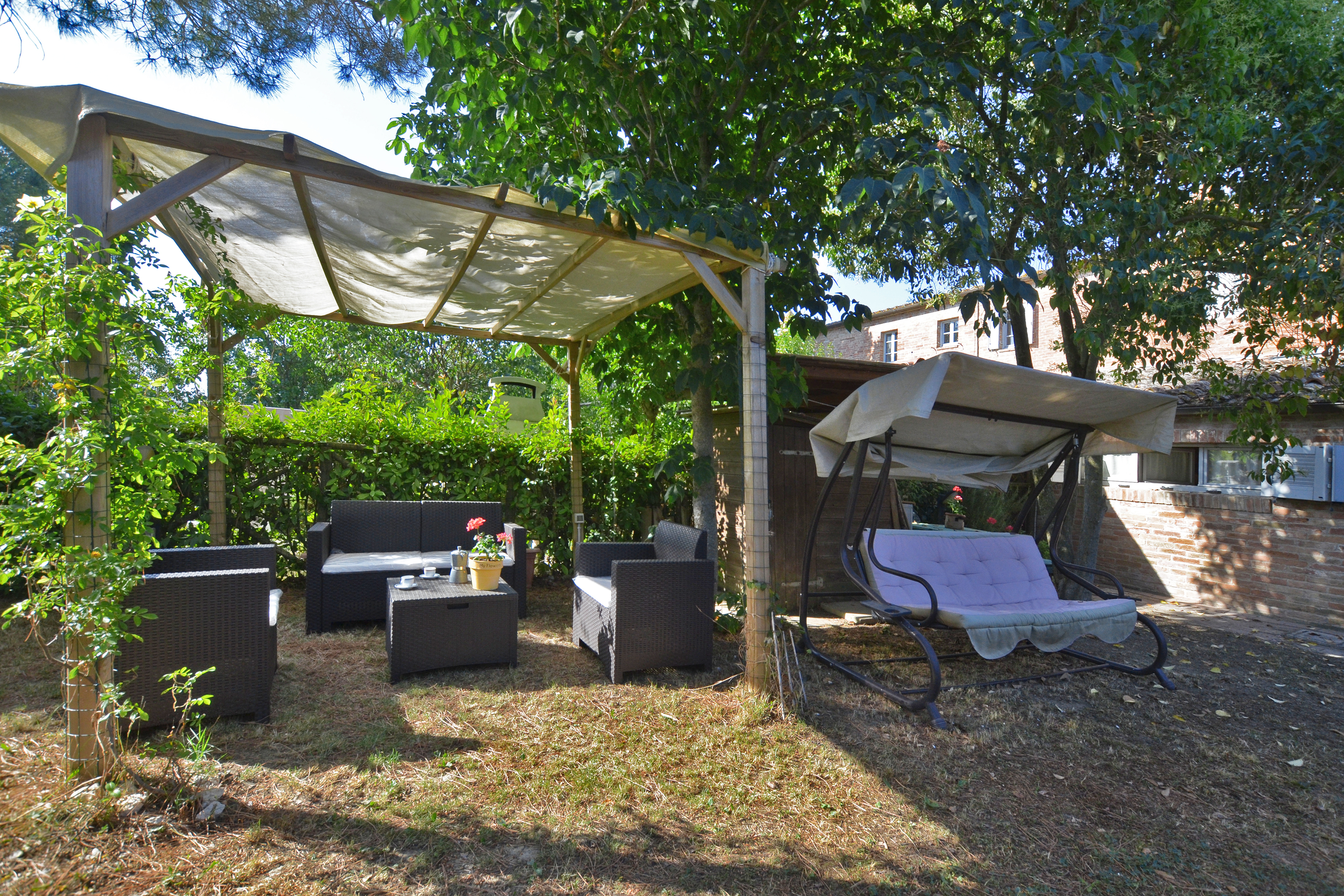 Gelegen tussen Asciano en Siena, maakt het vakantieappartement deel uit van een weelderig complex van 18 appartementen en biedt het een van de meest goed uitgeruste en rustige locaties om te genieten van een leuke, ontspannende en zorgeloze vakantie. Het complex profiteert van een enorm gedeeld zwembad, een grote gemeenschappelijke tuin met schaduwrijke en zonnige ontspanningsruimtes, evenals een privétuin van 100 vierkante meter met een uitnodigende, uitgeruste pergola. Onder de pergola is er ook de mogelijkheid om buiten te dineren met uitzicht op de tuin en een leuke schommel om lange gesprekken te voeren.