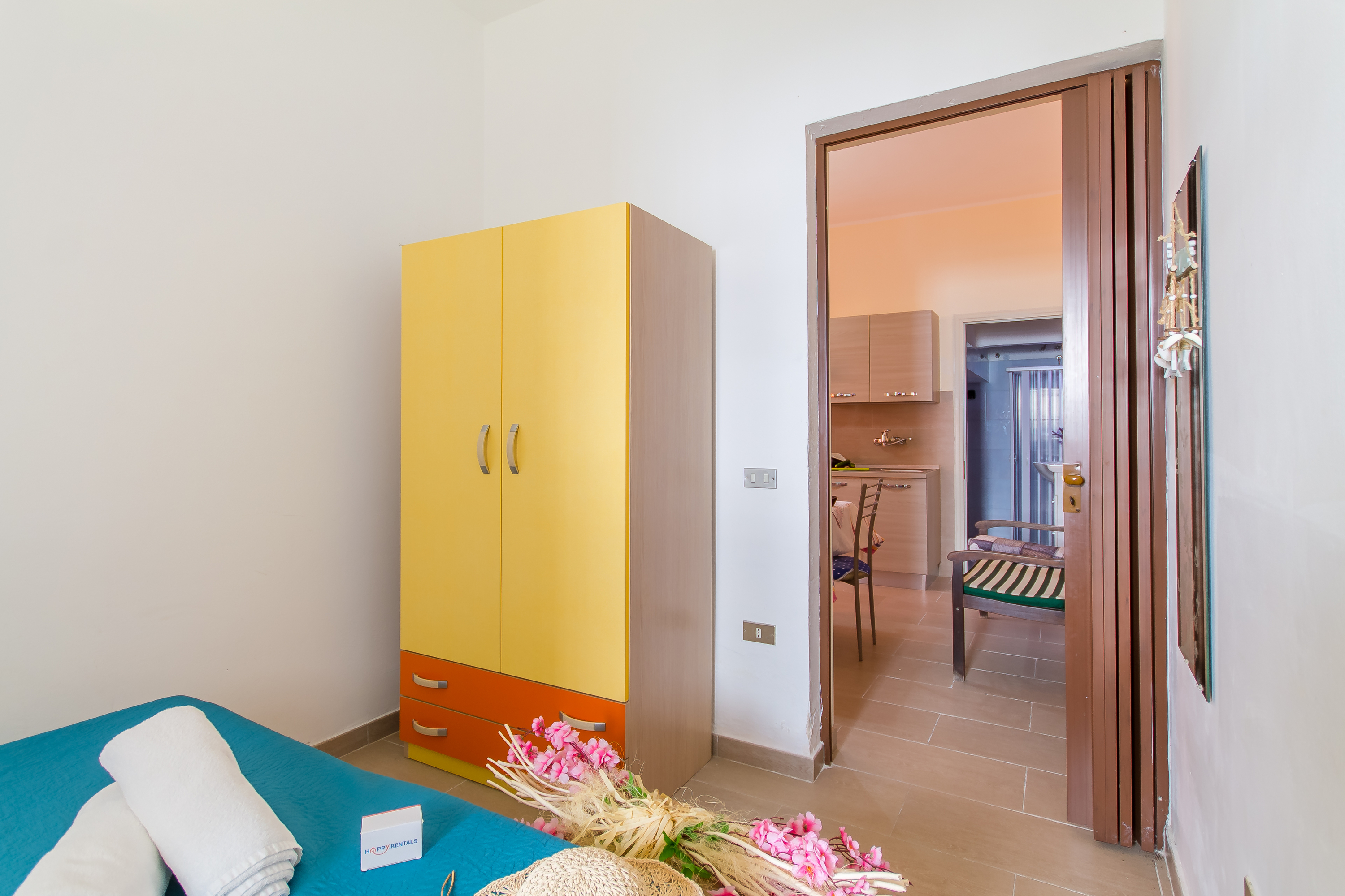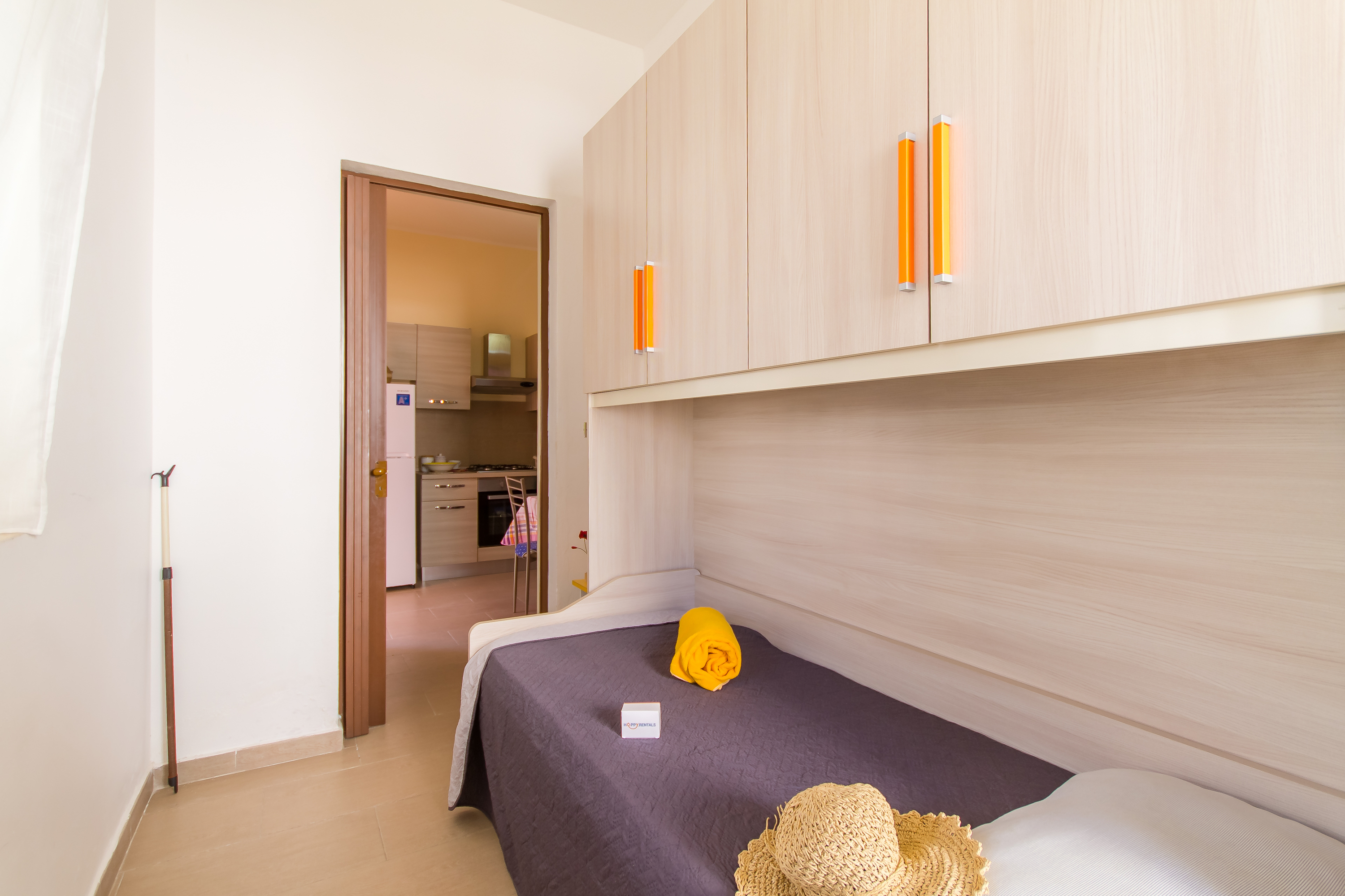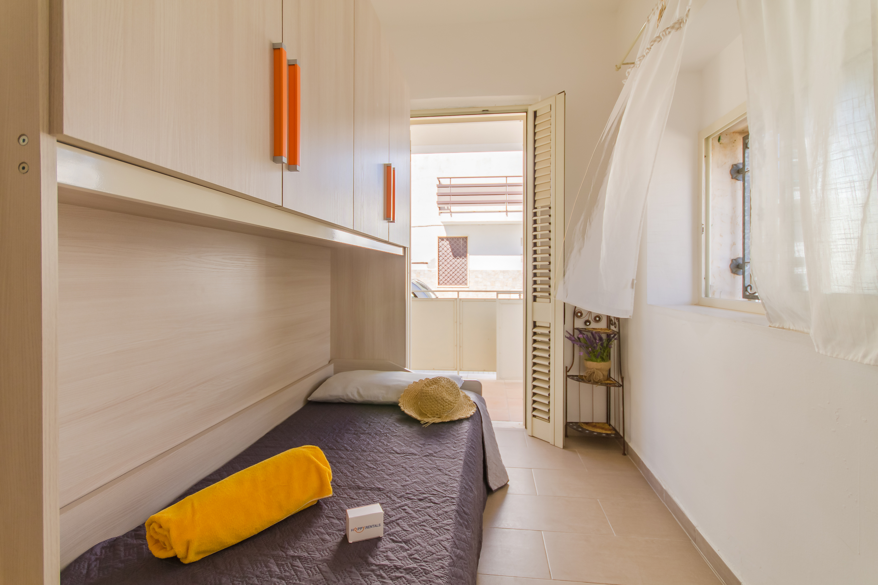 - Slaapkamer 2: Een kamer met een stapelbed en een kast, met directe toegang tot de veranda.
