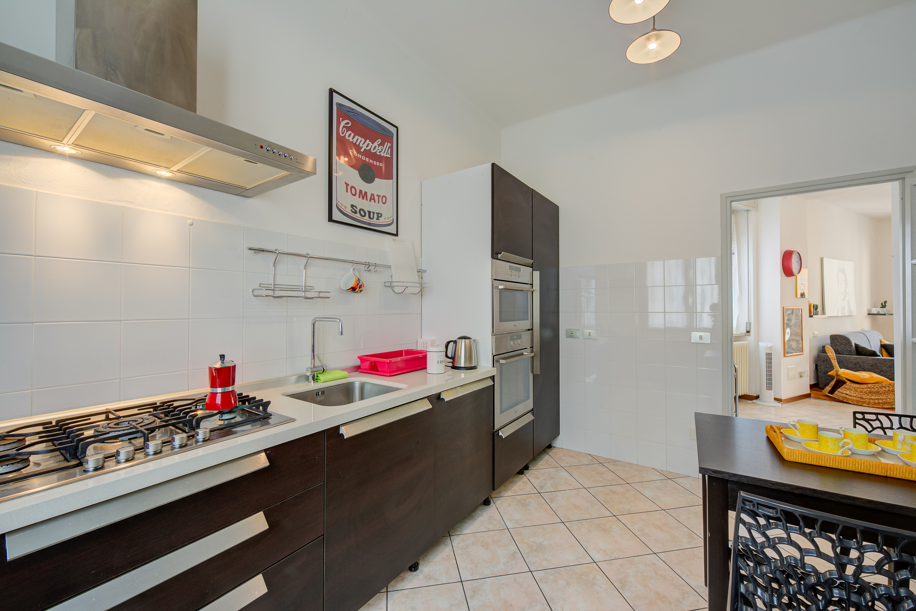 Binnen biedt het appartement met 2 slaapkamers rustige en flexibele accommodatie voor maximaal 5-6 gasten. De woonkamer heeft een slaapbank en een Smart TV. De keuken van de huurwoning is apart en volledig uitgerust zodat u zorgeloos kunt genieten van zelfgemaakte maaltijden: een eetopstelling en essentiële voorzieningen zoals een vaatwasser, magnetron, oven, koelkast, broodrooster en zijn beschikbaar voor de gasten.