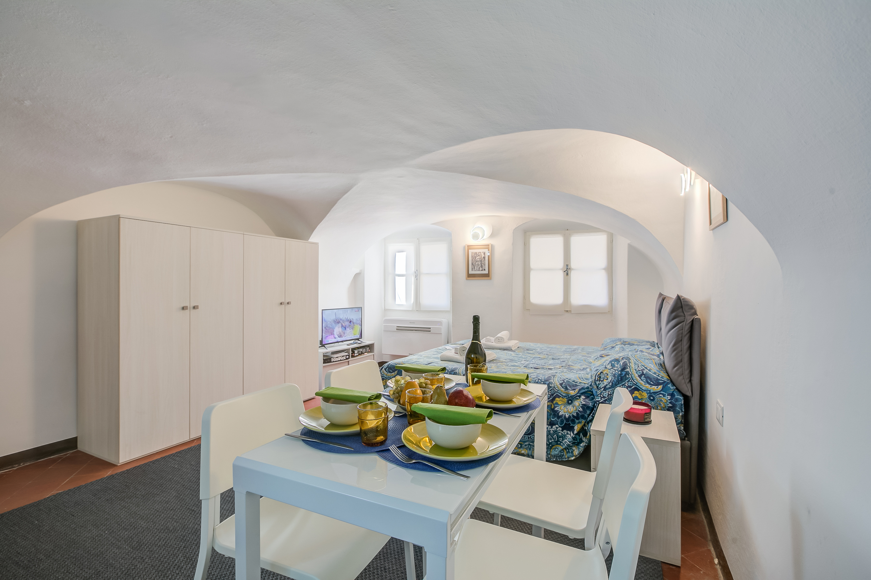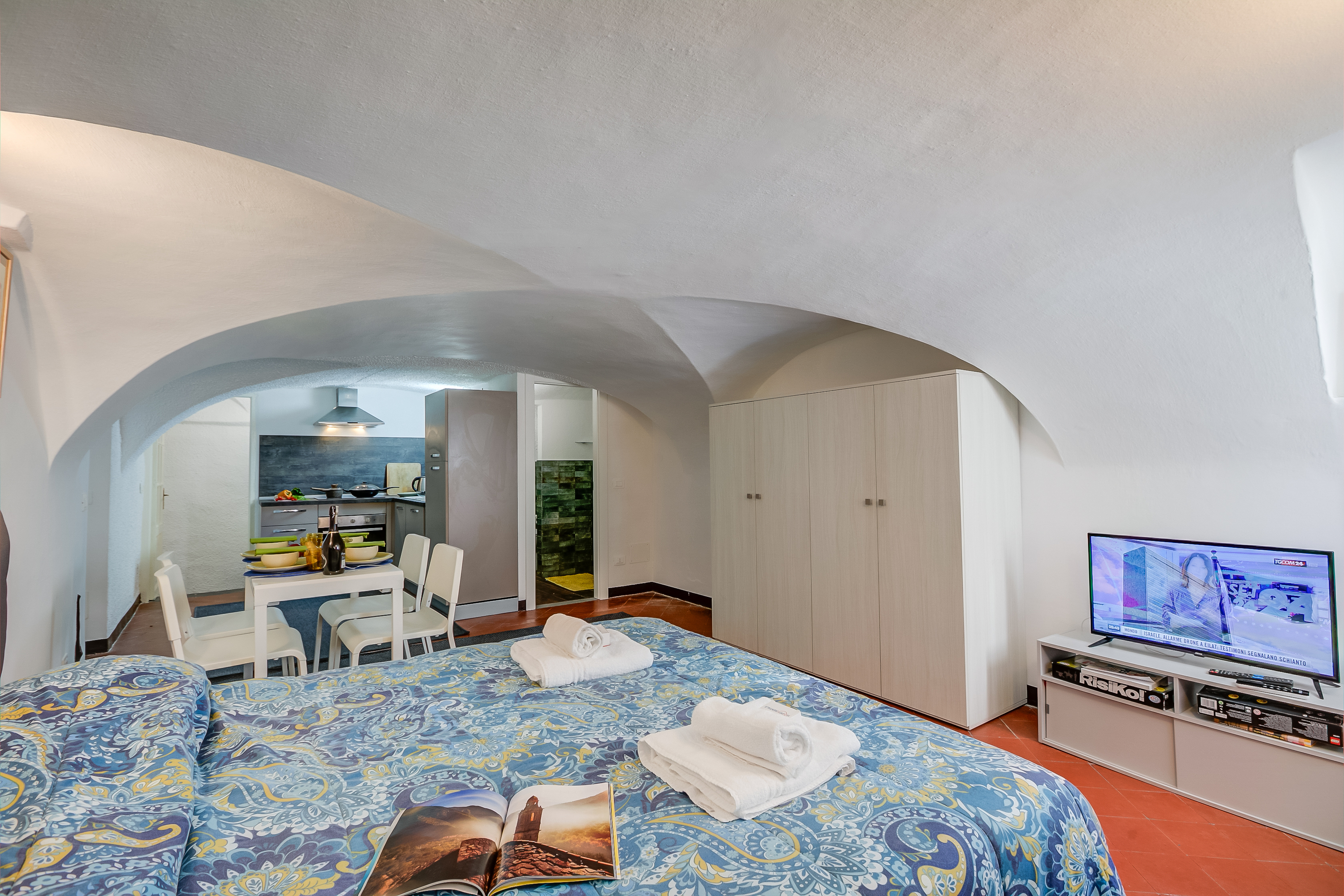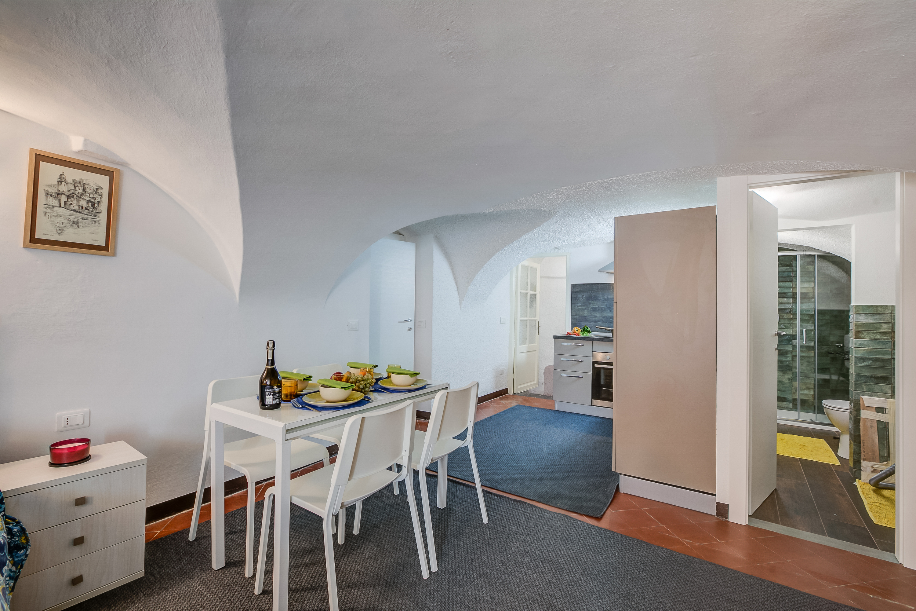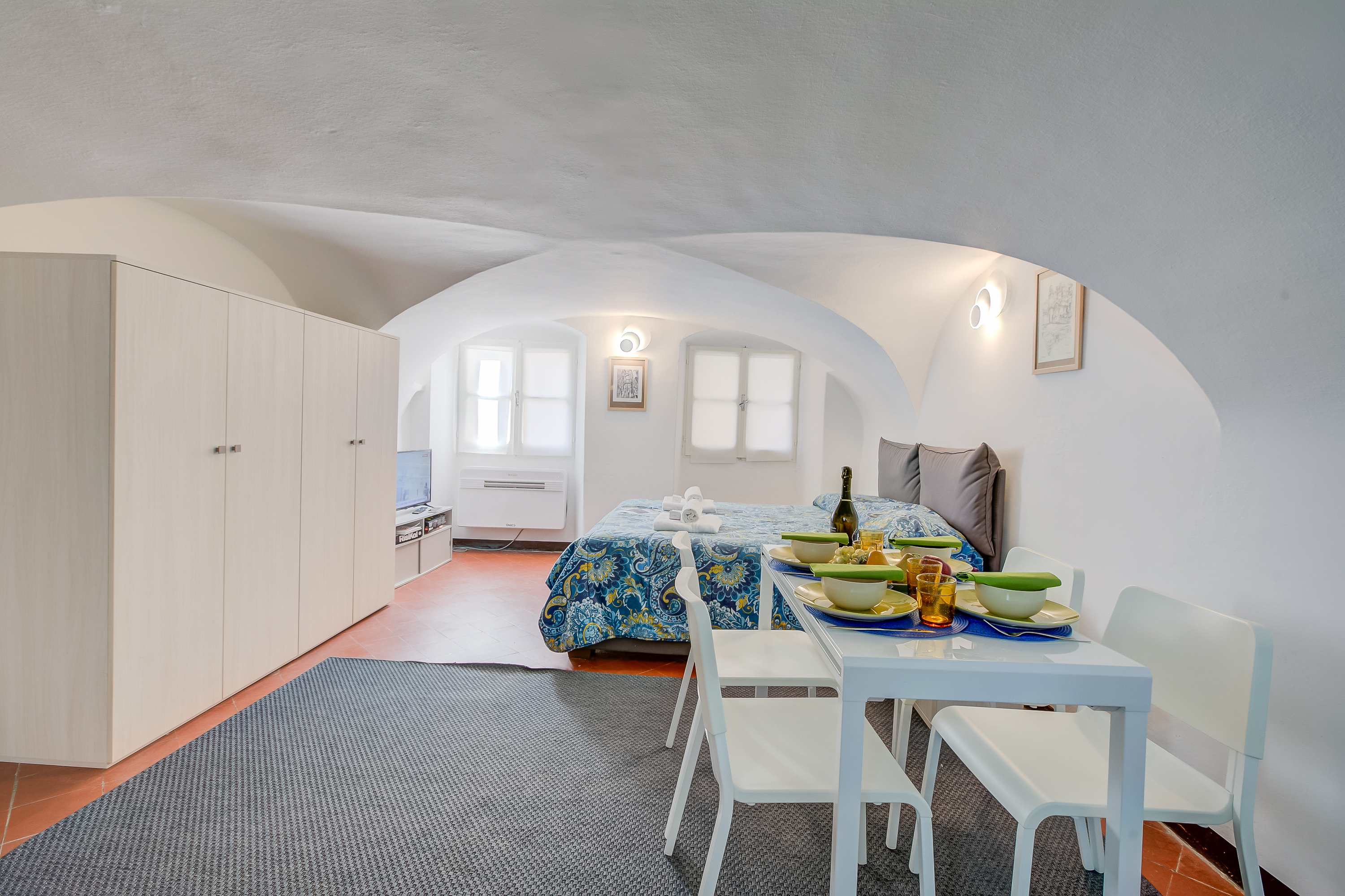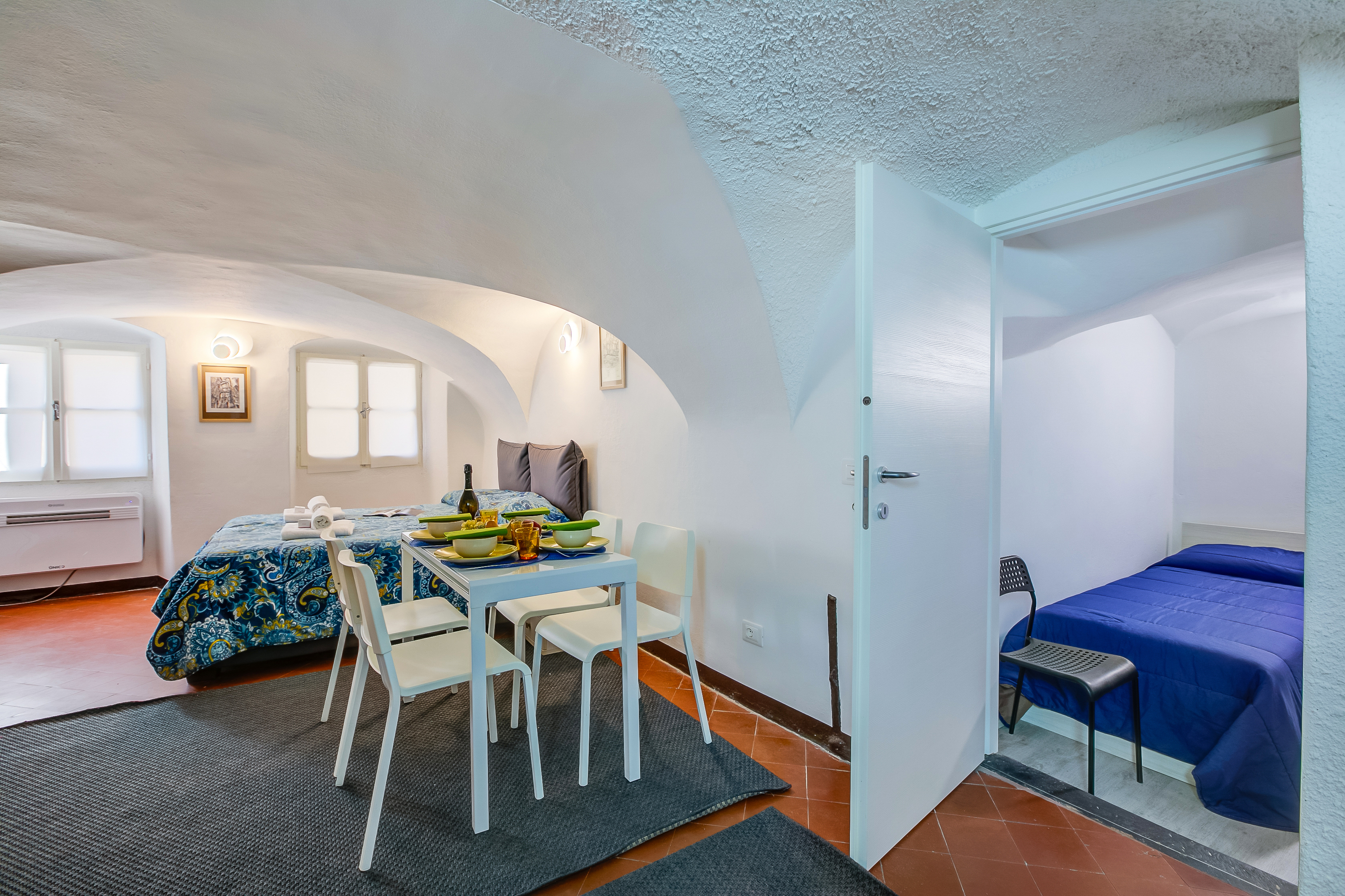 Genesteld tussen de kronkelende steegjes van Sanremo, combineert het appartement harmonieus de rustieke charme van zijn traditionele buitenkant met een elegant, modern interieur, compleet met gewelfde plafonds die het tijdloze karakter benadrukken.