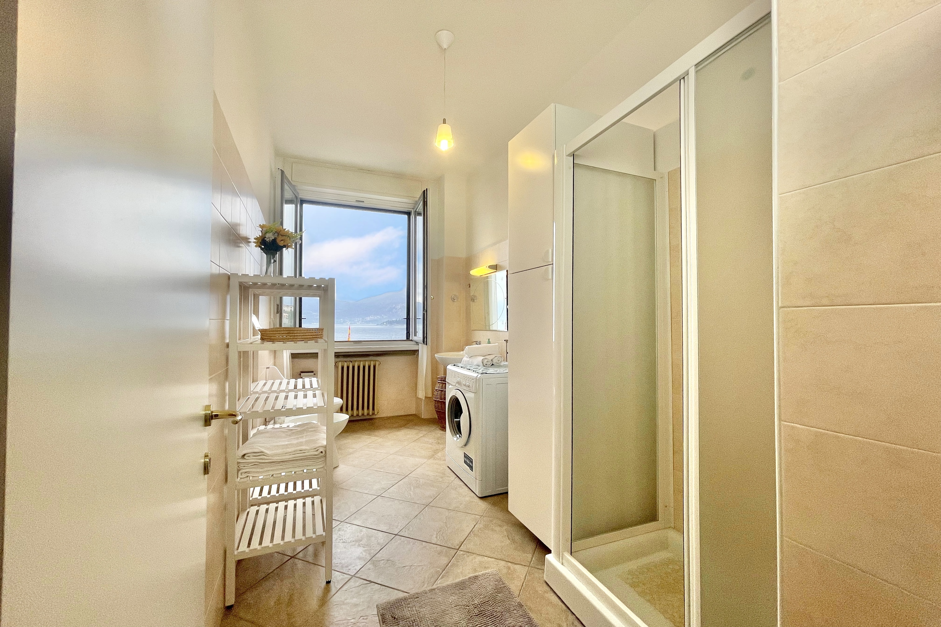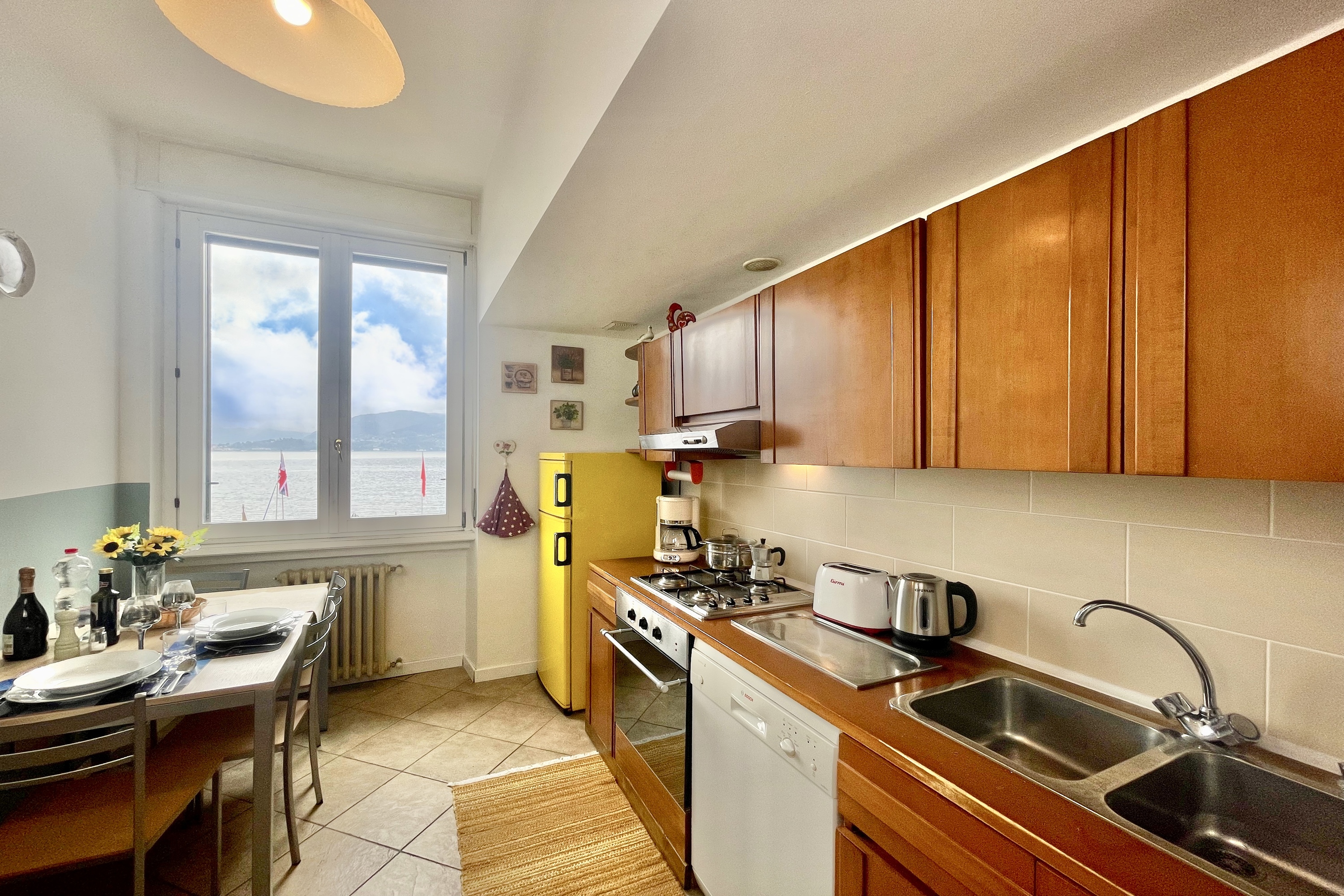 Dit appartement op de tweede verdieping heeft kamers met uitzicht op het meer en een volledig uitgeruste keuken, wat zorgt voor een comfortabele en aangename verblijf. De ruime en uitnodigende woonkamer beschikt over moderne voorzieningen, waaronder een Smart TV en bank, en creëert een gezellige en intieme sfeer. De keuken is volledig uitgerust met alles wat nodig is voor een zorgeloos verblijf, inclusief een vaatwasser, magnetron, oven, koffiezetapparaat, inductiekookplaat en broodrooster. Daarnaast zijn er strijkfaciliteiten en een wasmachine beschikbaar.