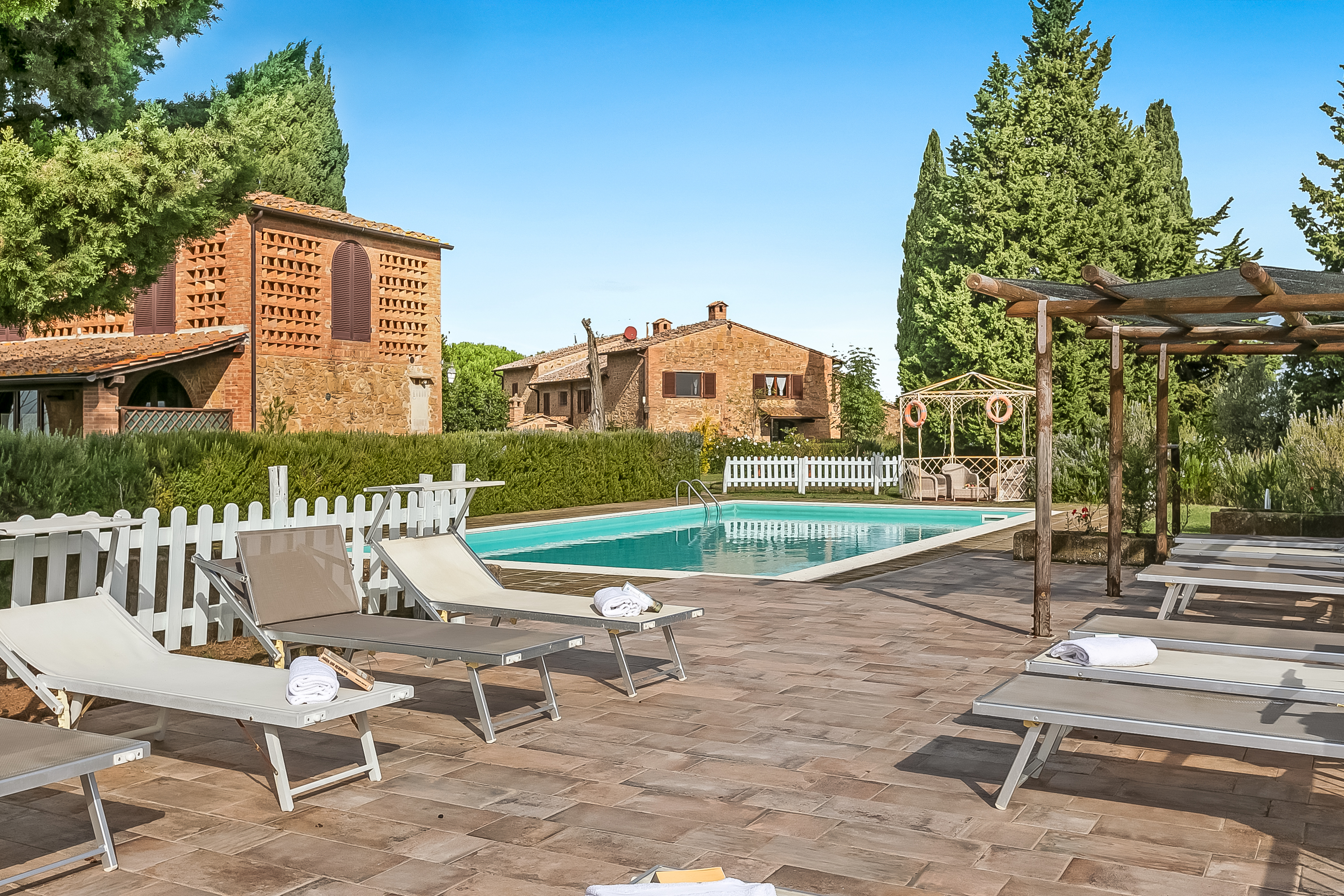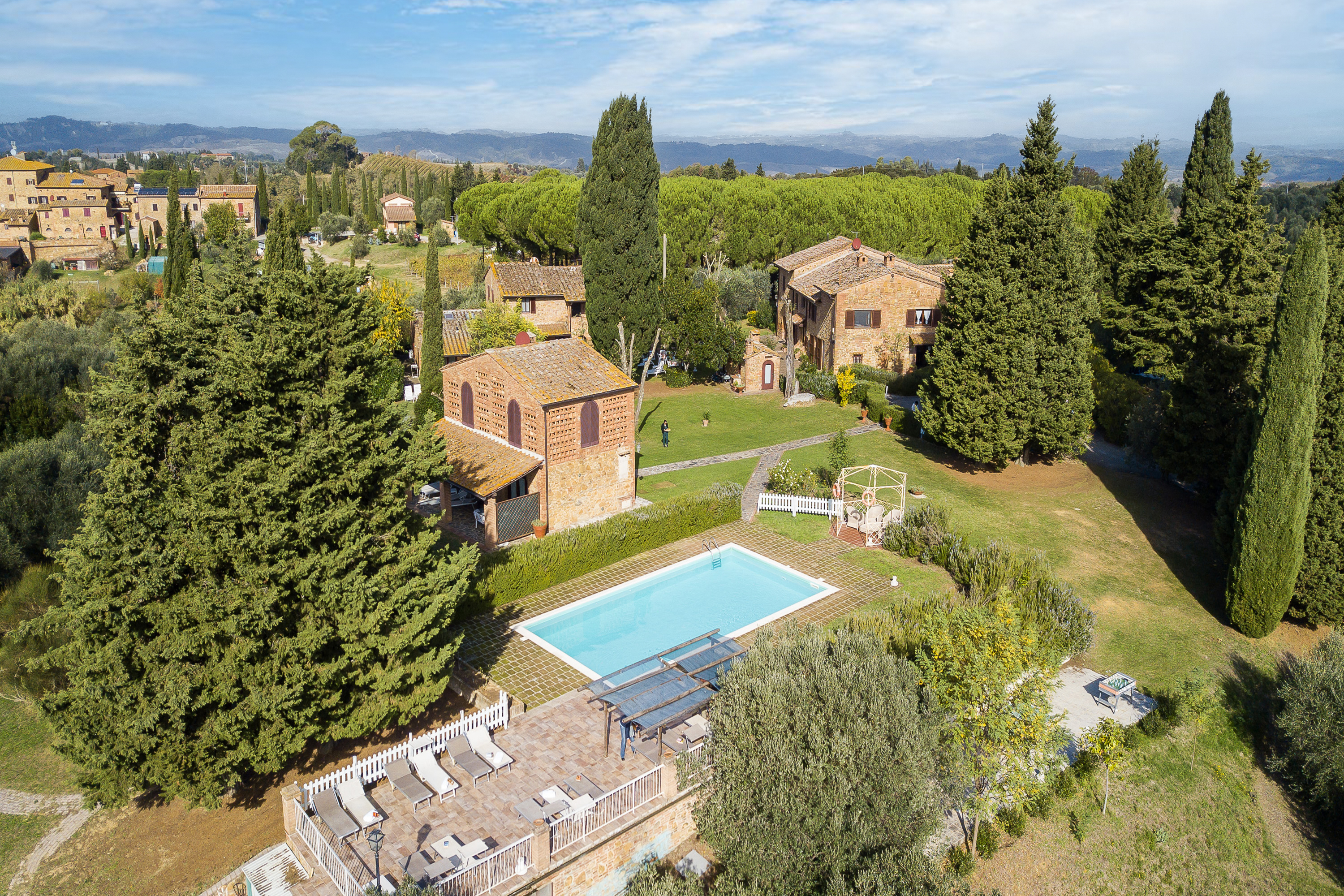 Beleef het authentieke Toscane in dit mooie appartement voor vijf personen, gelegen in een van de mooiste regio’s van Italië. Een met cipressen omzoomde oprijlaan leidt naar dit rustige gehucht met vijf huizen en twaalf appartementen, omringd door een idyllisch landschap – perfect voor een ontspannen vakantie.