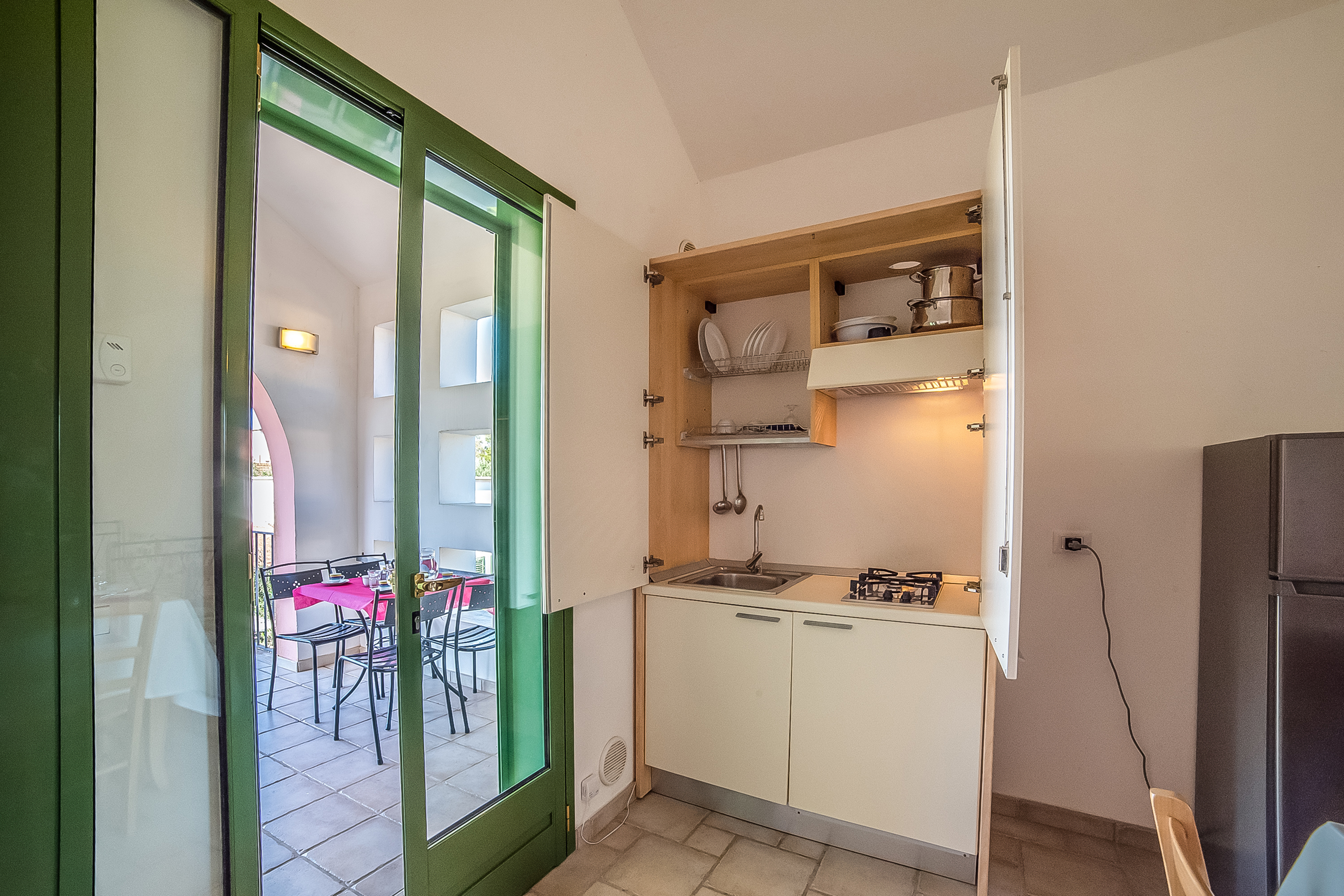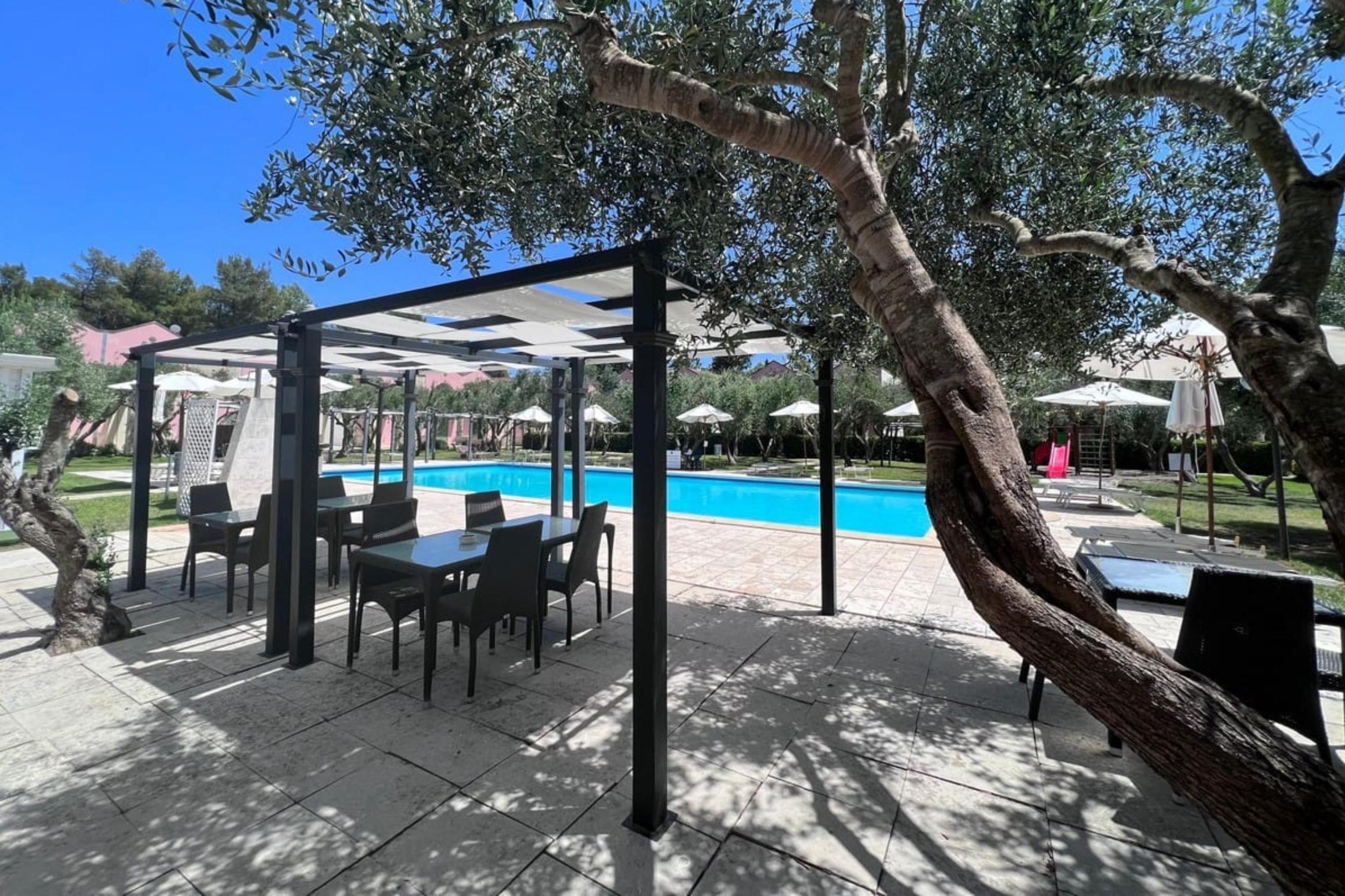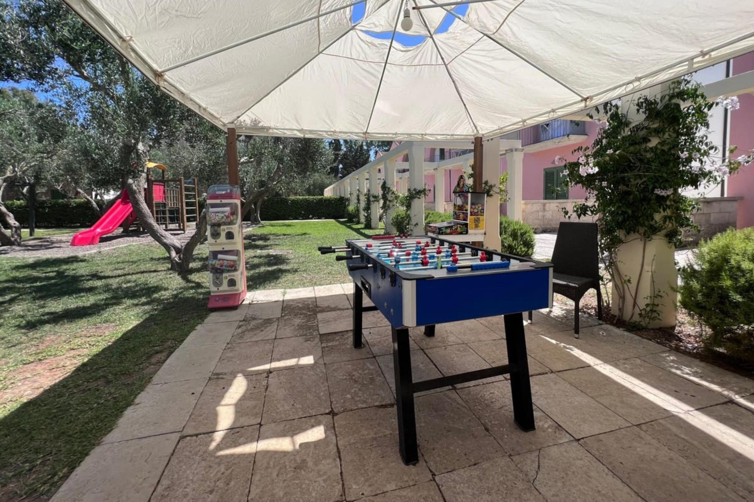 Buiten kunnen gasten genieten van een gemeenschappelijk buitenzwembad en een omheinde tuin, ideaal voor familieactiviteiten. Een eethoek buiten met een tafel maakt het mogelijk om maaltijden te nuttigen in het zonnige Italiaanse klimaat.