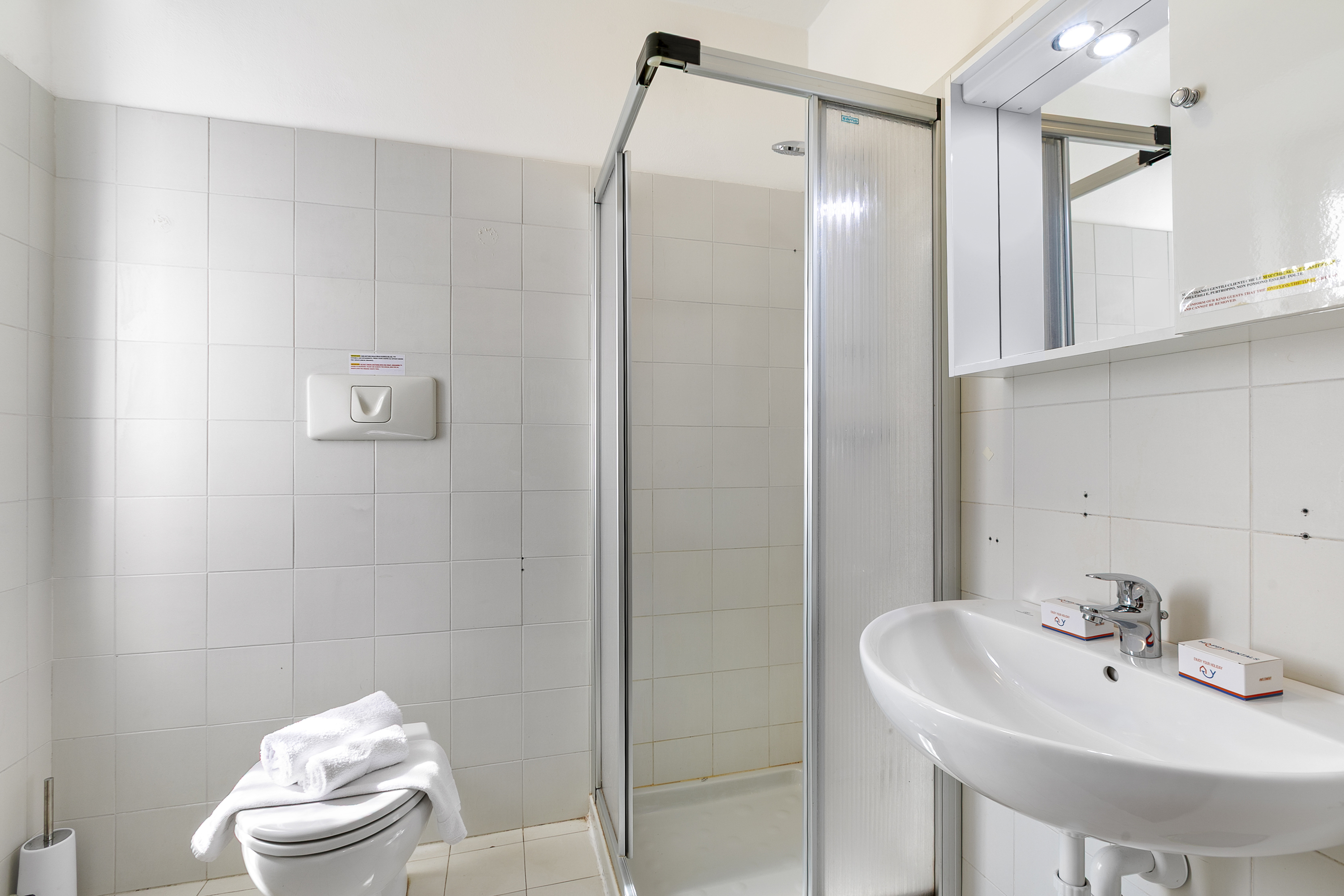 De slaapkamer is ontworpen voor ontspanning en beschikt over een tweepersoonsbed en een kledingkast. De badkamer is uitgerust met een douche, bidet, wastafel en toilet, en biedt alle essentiële voorzieningen in een schone, functionele indeling.
