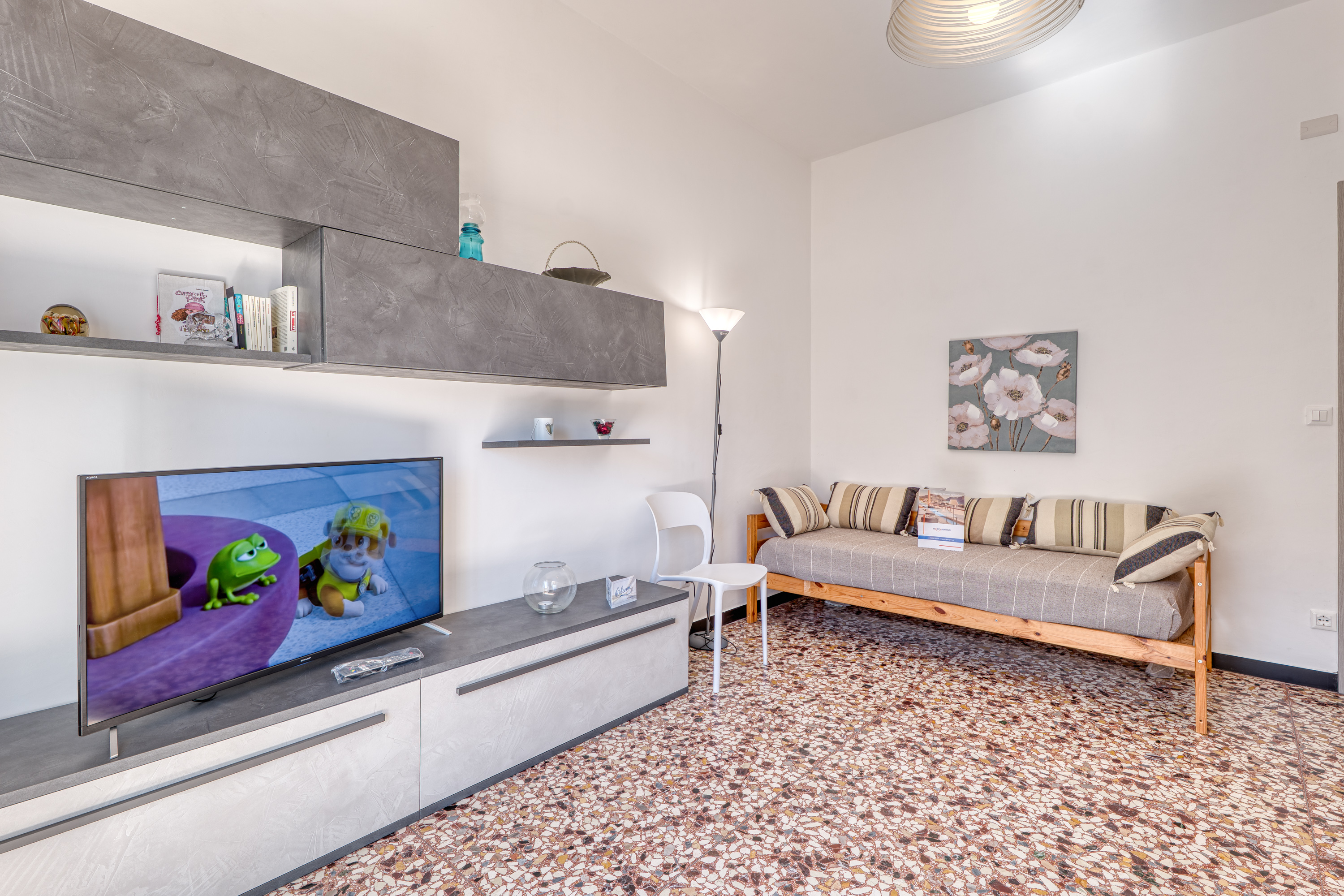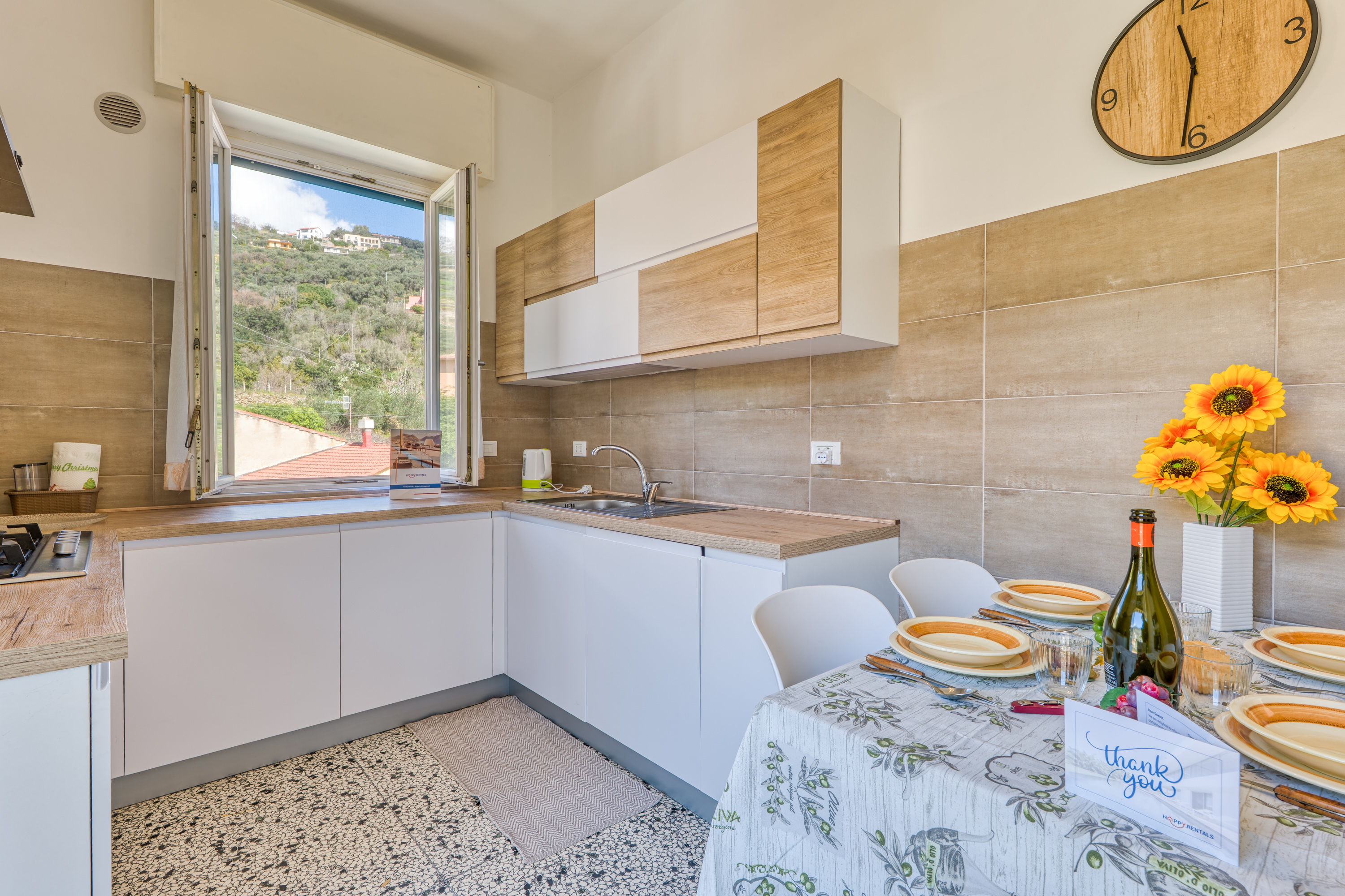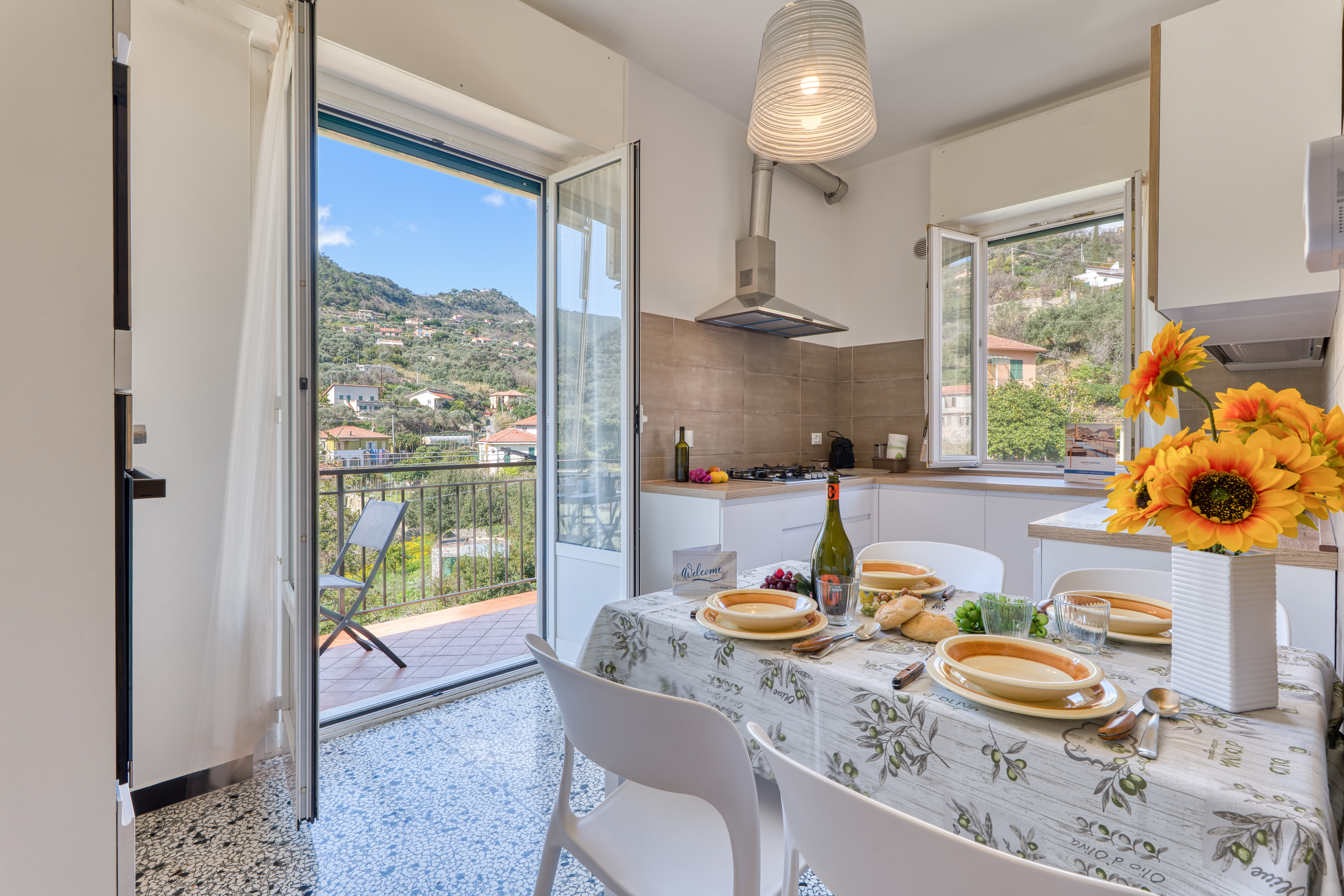 Het appartement, gelegen op de tweede verdieping, is licht en ruim, met Franse deuren zowel in de keuken/eetkamer als in de woonkamer, die leiden naar een privébalkon. Het balkon is ingericht met een café-stijl tafel en stoelen, en biedt de perfecte plek voor gasten om van een glas wijn of een kop koffie te genieten terwijl ze het prachtige uitzicht in zich opnemen. Binnen beschikt de woonkamer over twee comfortabele banken en een flatscreen-tv. De aparte keuken/eetkamer is volledig uitgerust met een kookplaat, oven, magnetron, koelkast/vriesvak en een koffiezetapparaat.