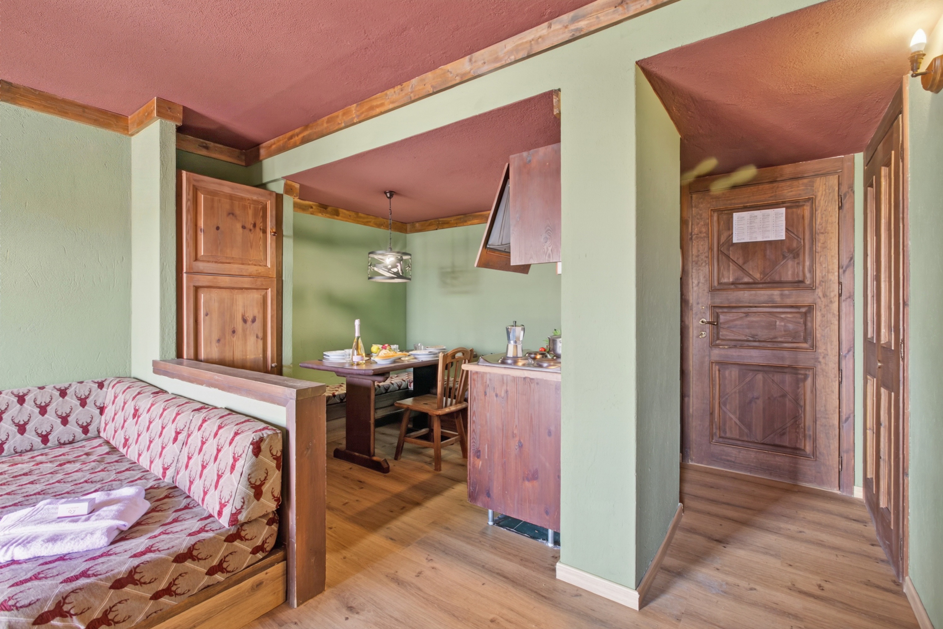 Het gezellige appartement biedt comfortabel plaats aan 4 personen. De woonkamer beschikt over een L-vormige bank, flatscreen-tv, grote houten ladekast en een klein balkon. De open kitchenette is uitgerust met een kookplaat, magnetron en koelkast. De eettafel biedt plaats aan 4 personen. De slaapkamer heeft een comfortabel tweepersoonsbed en de banken in de woonkamer kunnen worden omgebouwd tot 2 eenpersoonsbedden. De betegelde badkamer beschikt over een douche, wastafel, bidet en toilet.