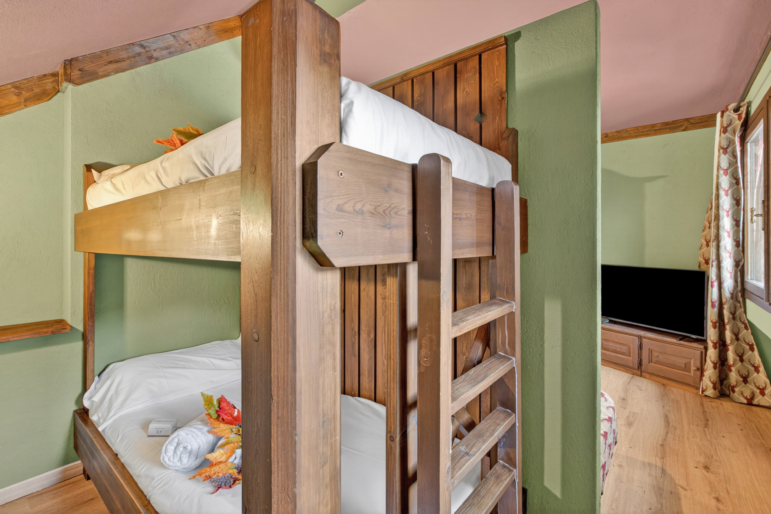 Extra: Er is een stapelbed in een knusse slaapkamer naast de hoofdwoonruimte.