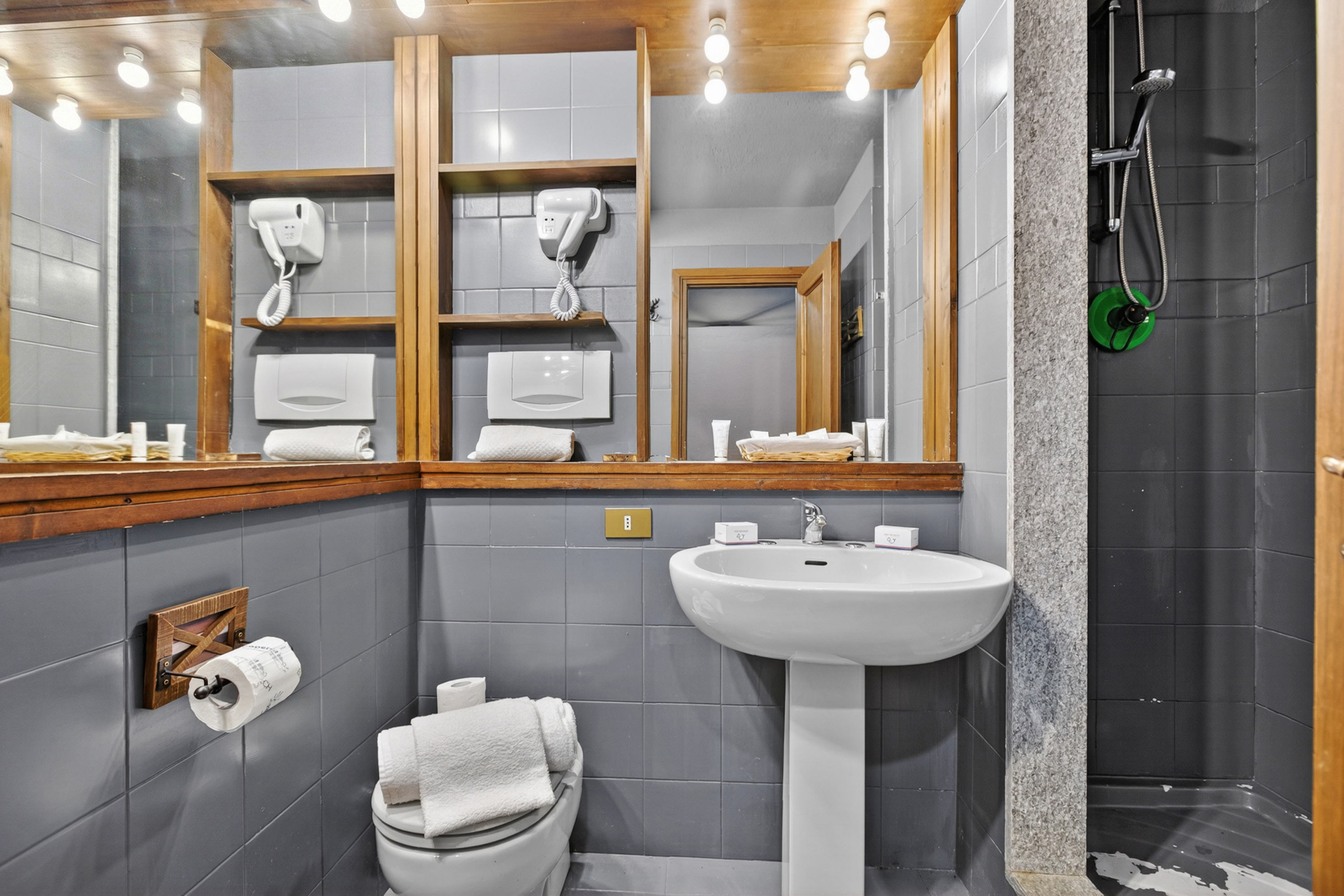 – De nieuw betegelde badkamer is voorzien van een douche, wastafel, bidet en toilet.