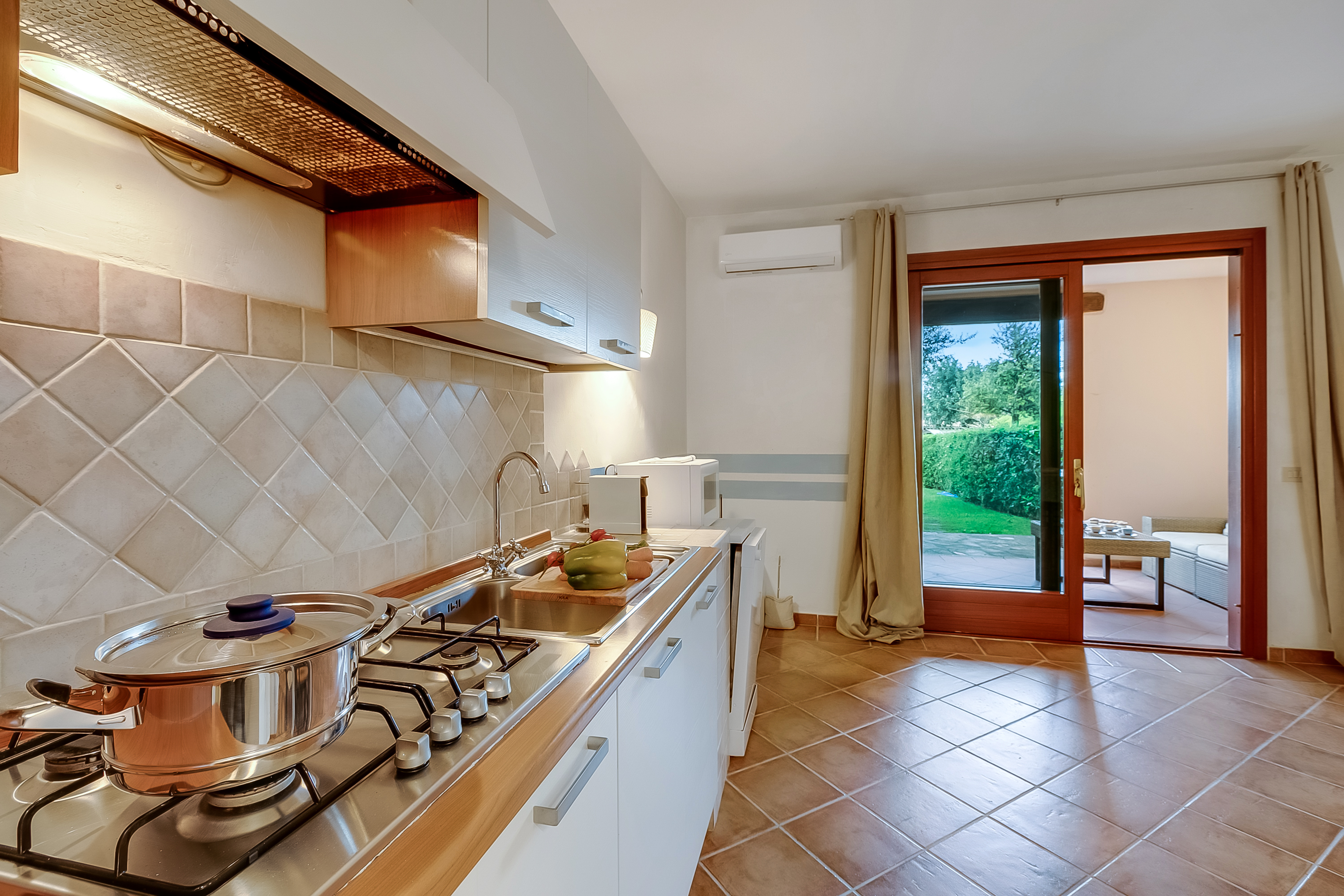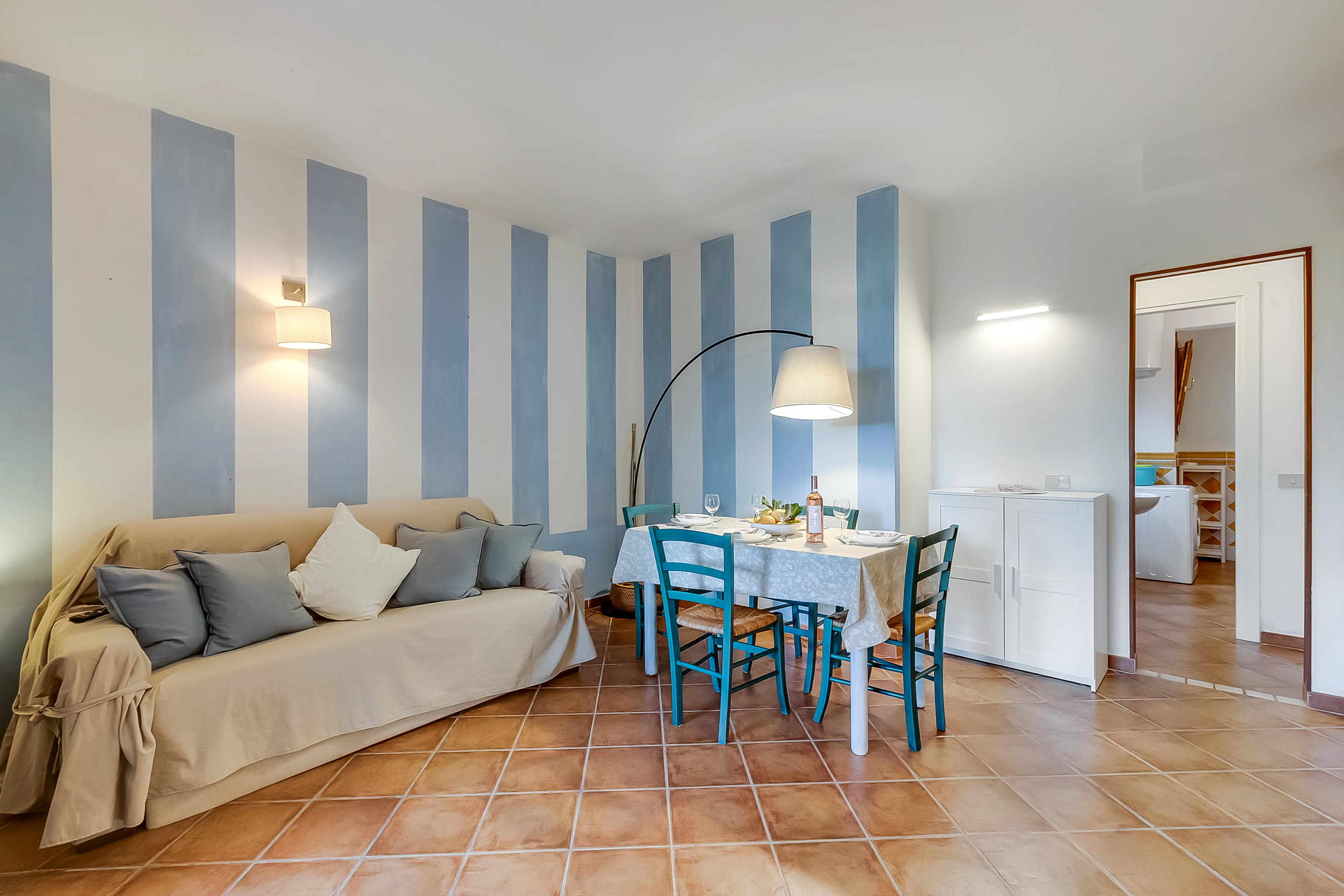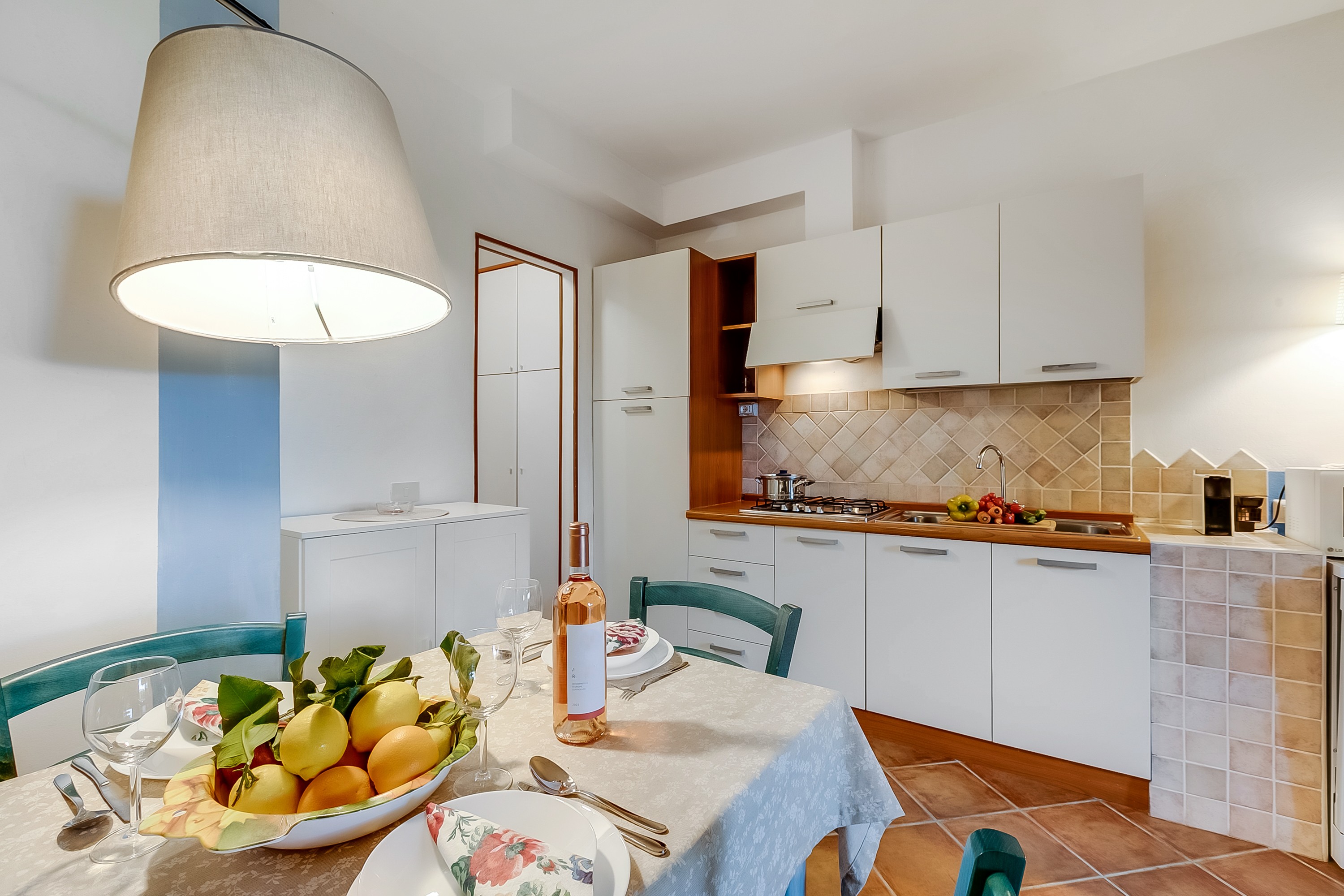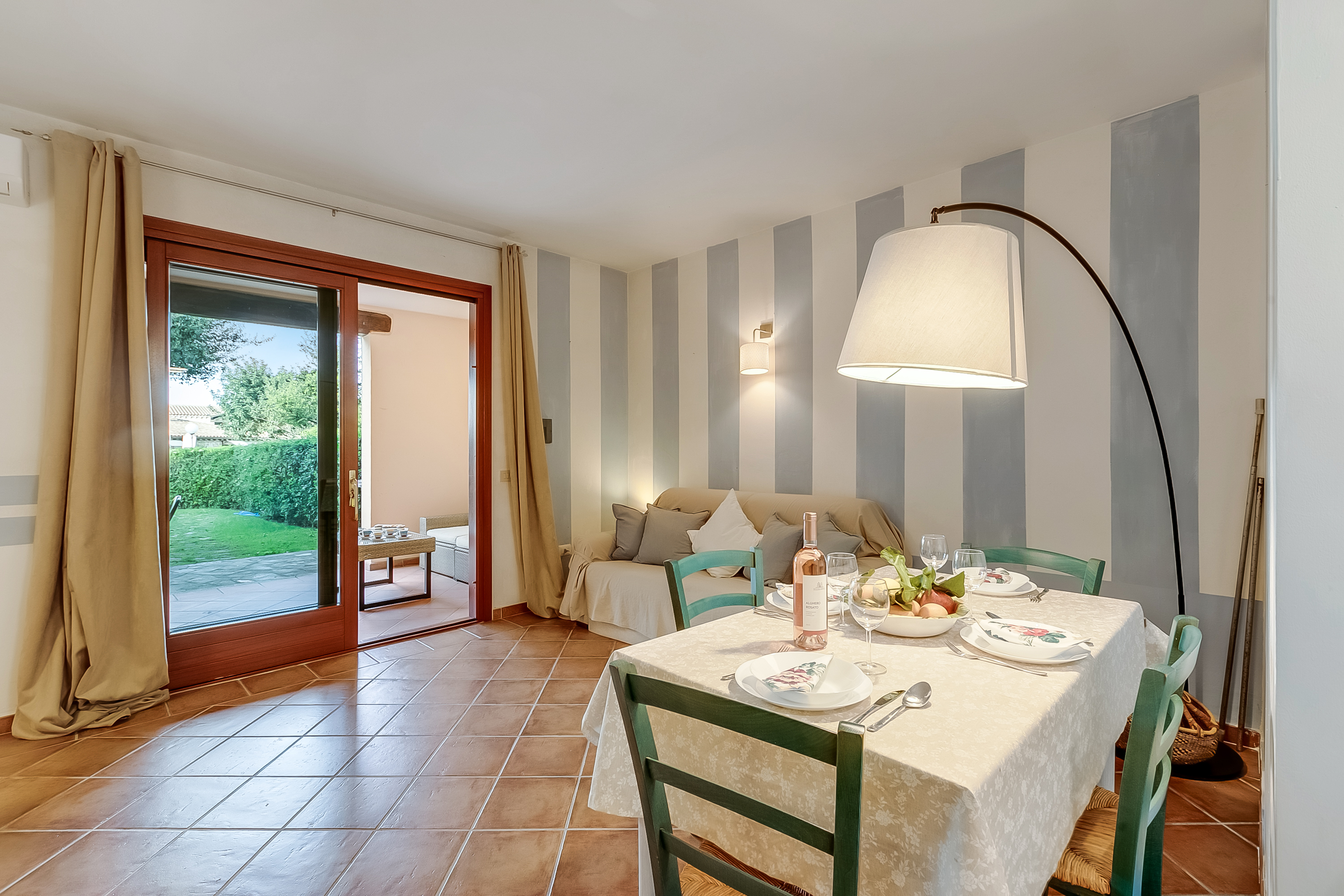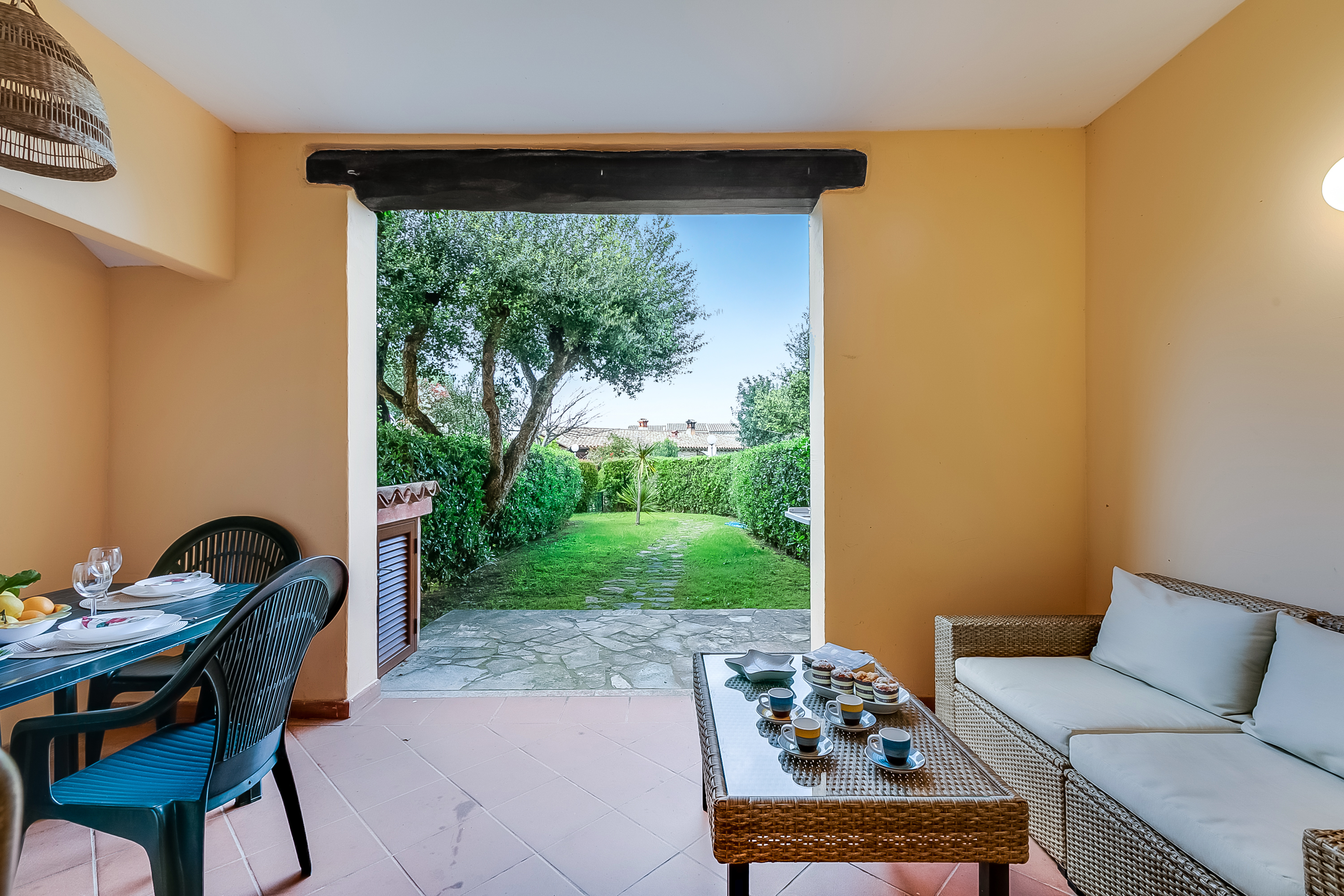 Het appartement biedt comfortabel plaats aan 4 personen en is prachtig ingericht. De woonkamer beschikt over een bank, flatscreen-tv, eettafel voor 4 personen, en een open keuken voorzien van een kookplaat, magnetron, vaatwasser, koel-/vriescombinatie en een koffiemachine. Grote schuifdeuren van glas leiden naar een schaduwrijk terras dat een sofa en een tweede eettafel bevat, ideaal voor maaltijden in de buitenlucht. De hoofdslaapkamer heeft een tweepersoonsbed, een grote kledingkast en Franse ramen naar een privéterras. De bank in de woonkamer kan worden omgezet in een comfortabel tweepersoonsbed. De aantrekkelijk betegelde badkamer beschikt over een douche, bidet, wastafel, wasmachine en wc. Extra voorzieningen zijn onder andere airconditioning, kindvriendelijke functies, een privétuin en privéparkeergelegenheid (auto noodzakelijk).