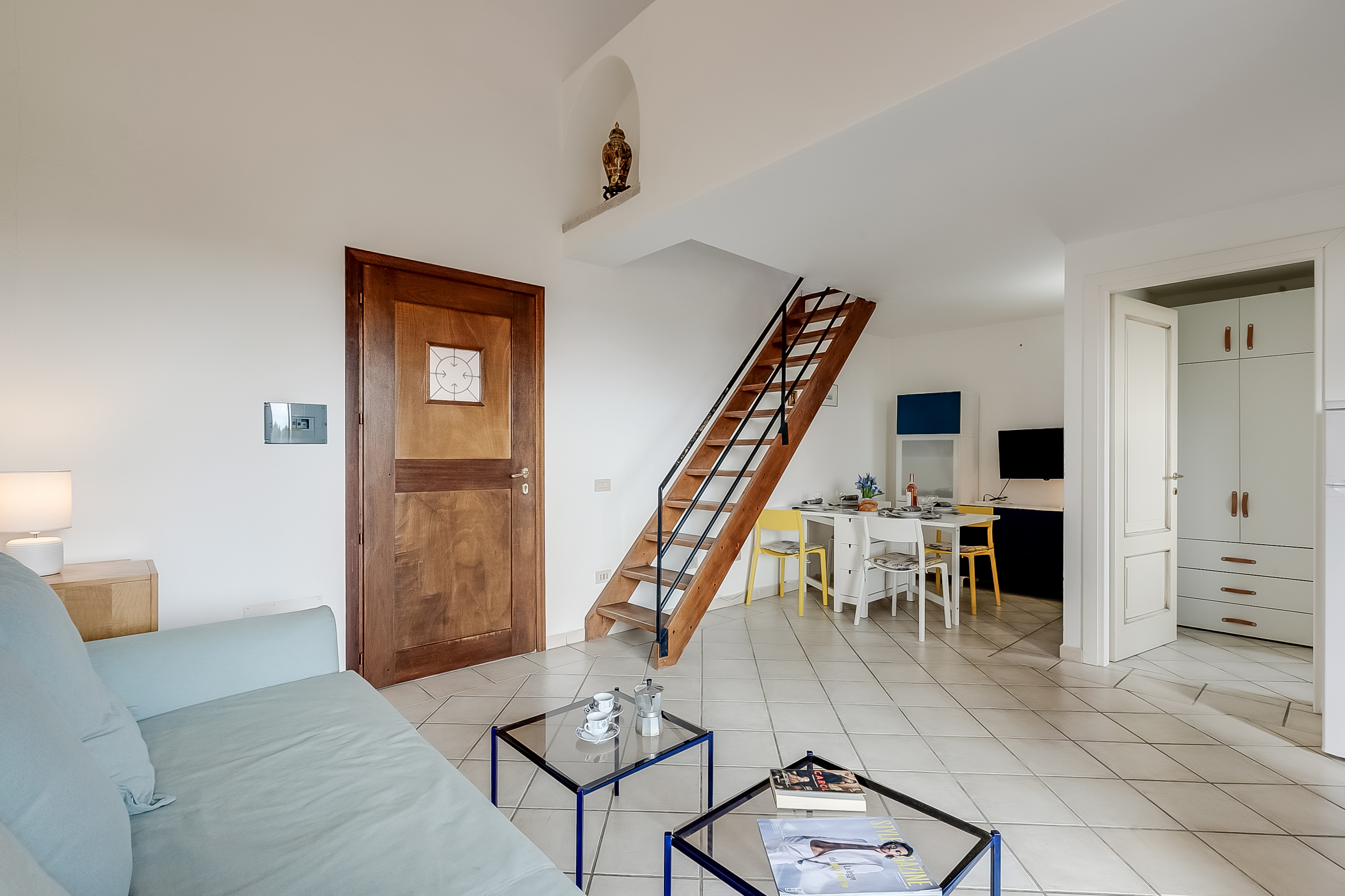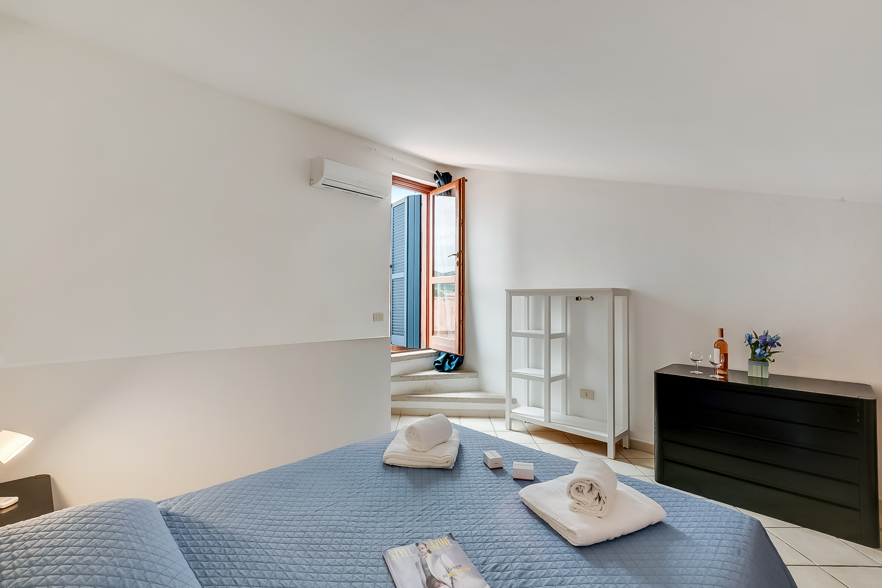 In een rustige, maar centrale locatie bevindt zich deze stijlvolle duplex, slechts 700m van het strand en 150m van de winkels in het chique vakantieoord Loiri Porto San Paolo. Porto San Paolo staat bekend om zijn ongerepte witte zand en turquoise zee, en biedt een ontspannende en leuke vakantiebestemming met een breed aanbod aan watersporten. Het eiland Tavolara is vlakbij en zeker de moeite waard voor een daguitstap om te wandelen, zwemmen en te genieten van een lunch in het beroemde restaurant Da Tonino.