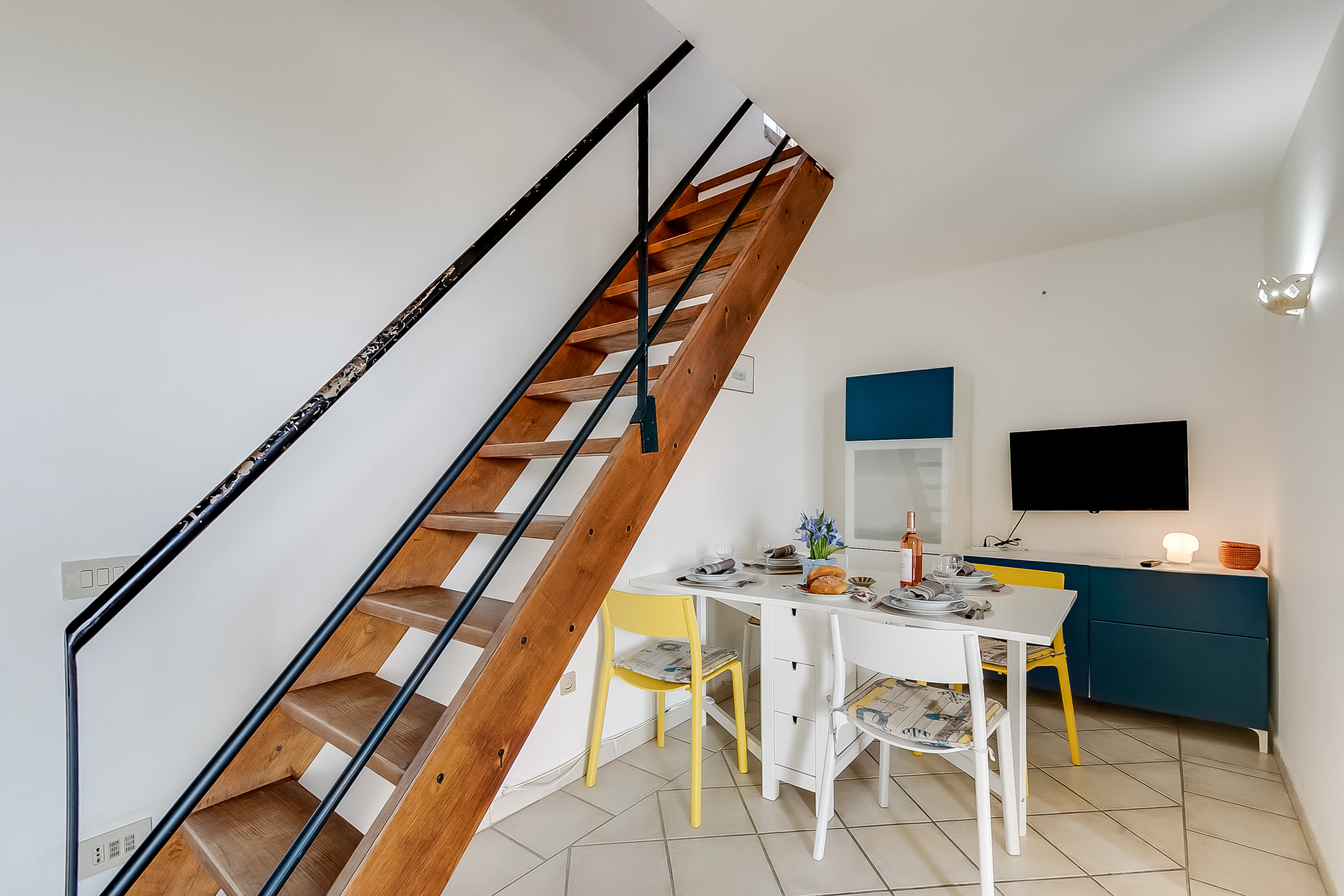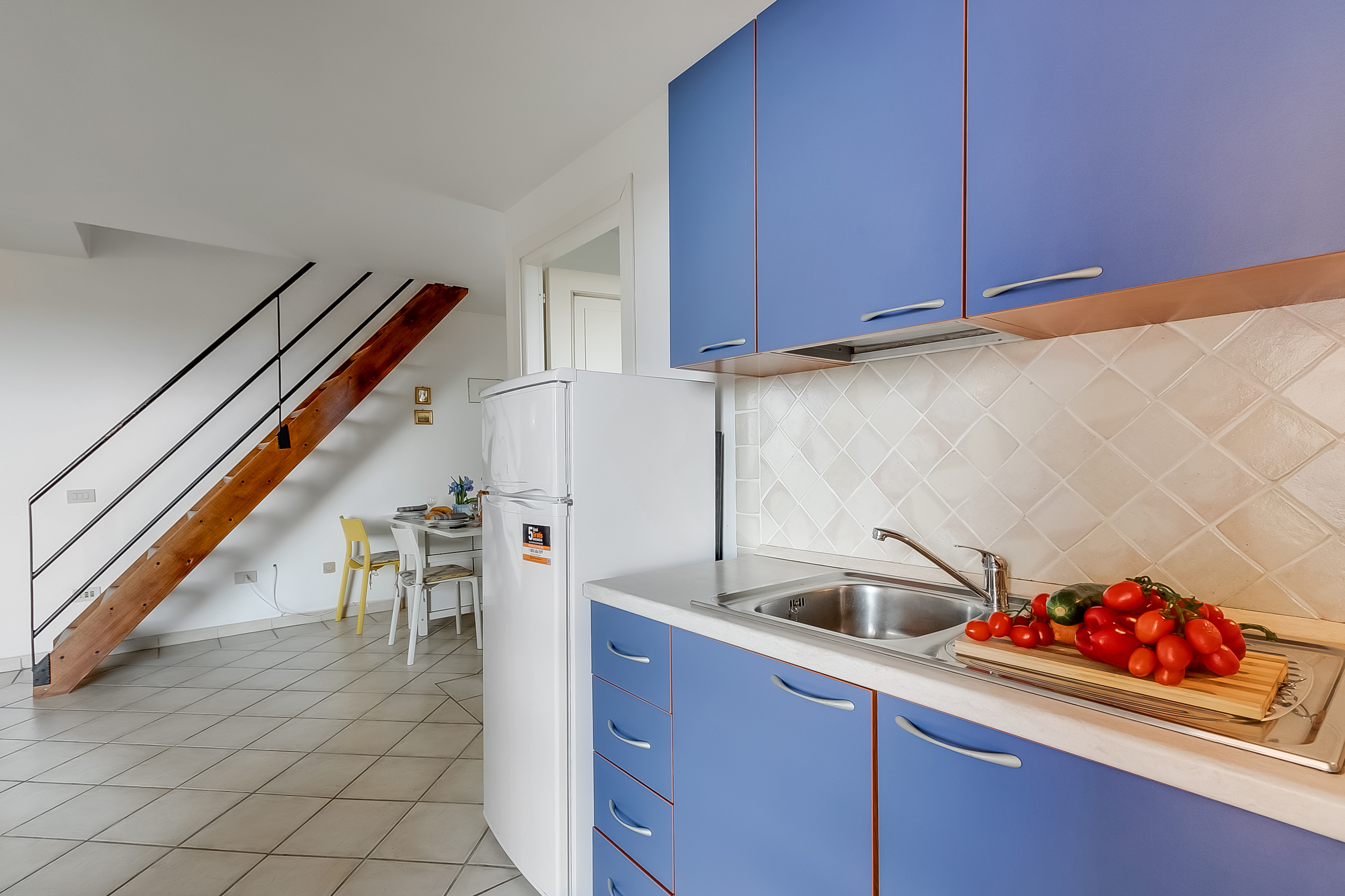 Verspreid over 2 verdiepingen beschikt het duplex appartement over een woonkamer met een bank, een flatscreen-tv en grote glazen deuren die naar een overdekt balkon leiden. De kitchenette is goed uitgerust met een kookplaat, oven, koelkast en vriezer, wat zelfcatering gemakkelijk maakt. Op de eerste verdieping bevindt zich een lichte slaapkamer met een tweepersoonsbed en een eigen balkon om te zonnebaden. De bank in de woonkamer kan worden omgebouwd tot een comfortabel tweepersoonsbed en er is een grote kledingkast voor opslag. Een aantrekkelijk betegelde badkamer met een glazen douche, bidet, wastafel, toilet en wasmachine.