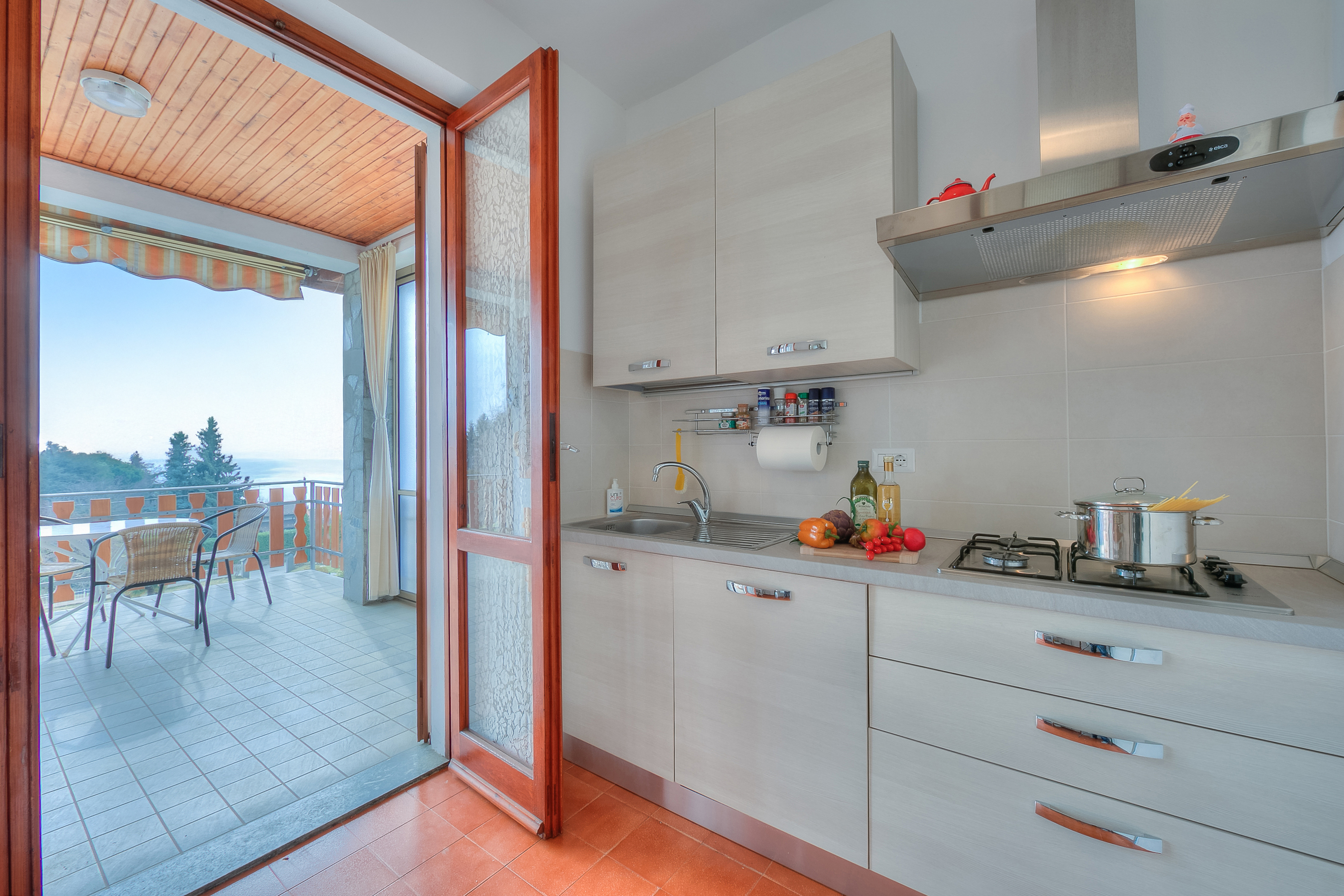 Het moderne appartement bevindt zich op de eerste verdieping van een villa met twee verdiepingen en beschikt over een groot terras met uitzicht op het Lago Maggiore. Het appartement met twee slaapkamers heeft een ruime woonkamer, een volledig uitgeruste keuken met moderne apparatuur en een complete badkamer.