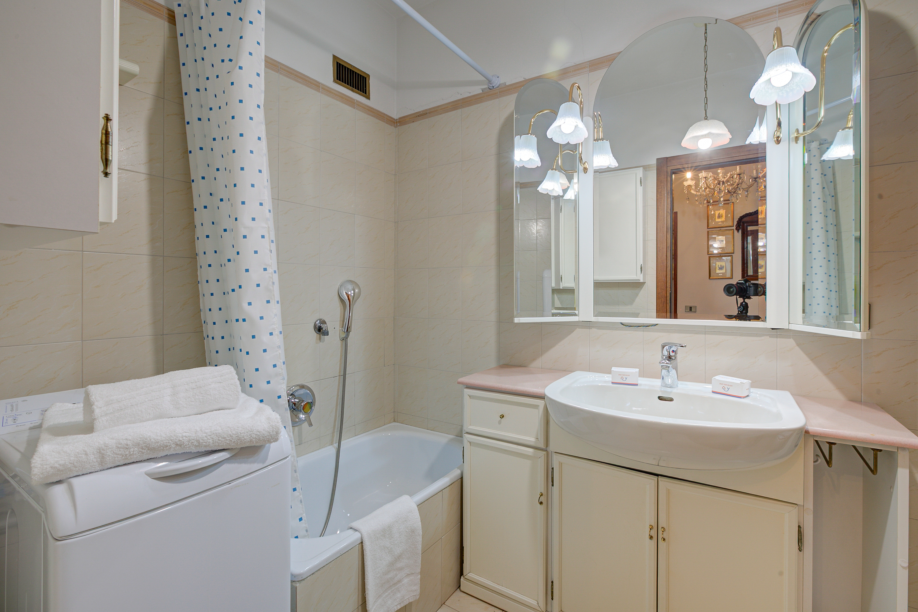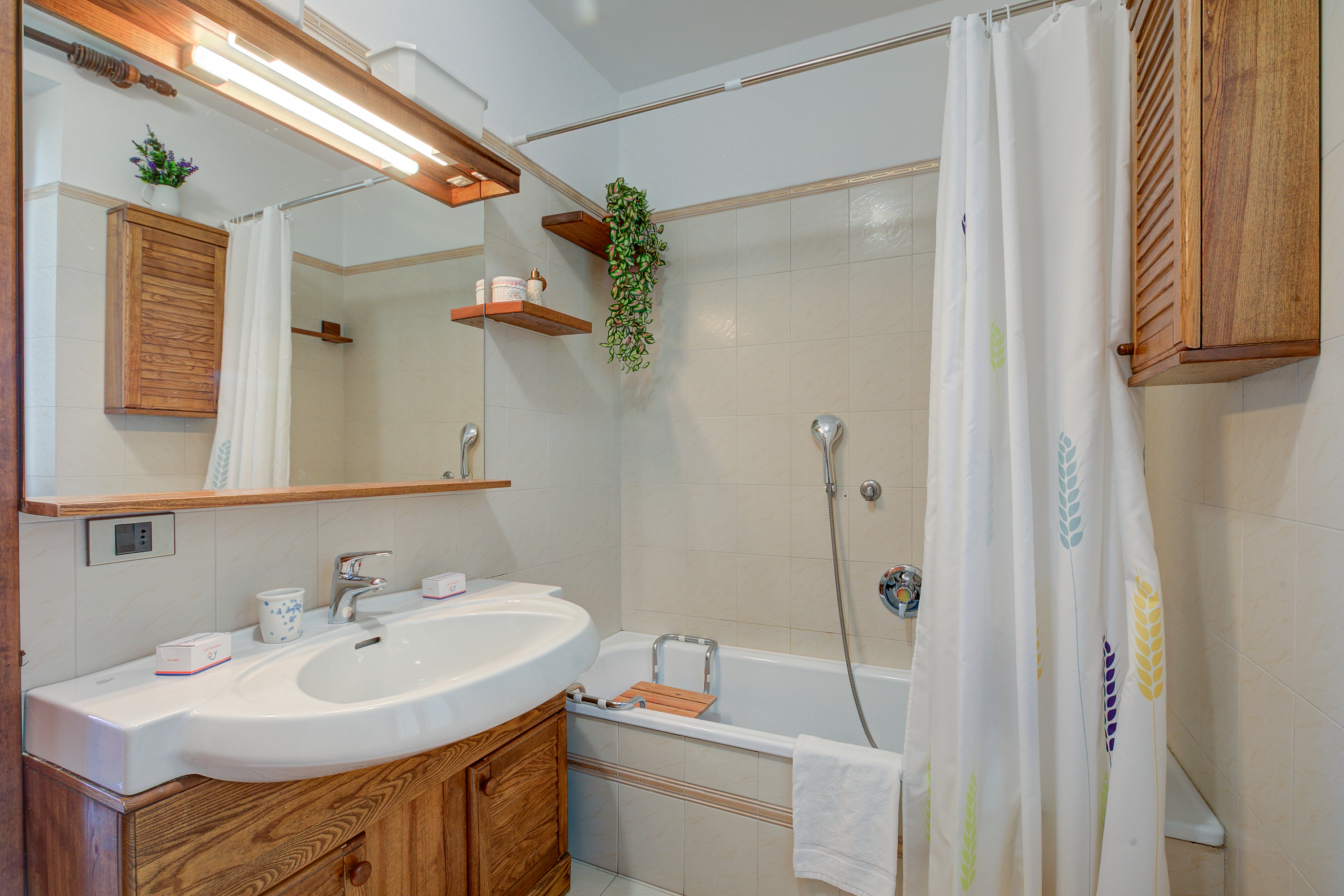 Badkamer 2: Deze badkamer heeft een bad met douche, een wastafel en een toilet.