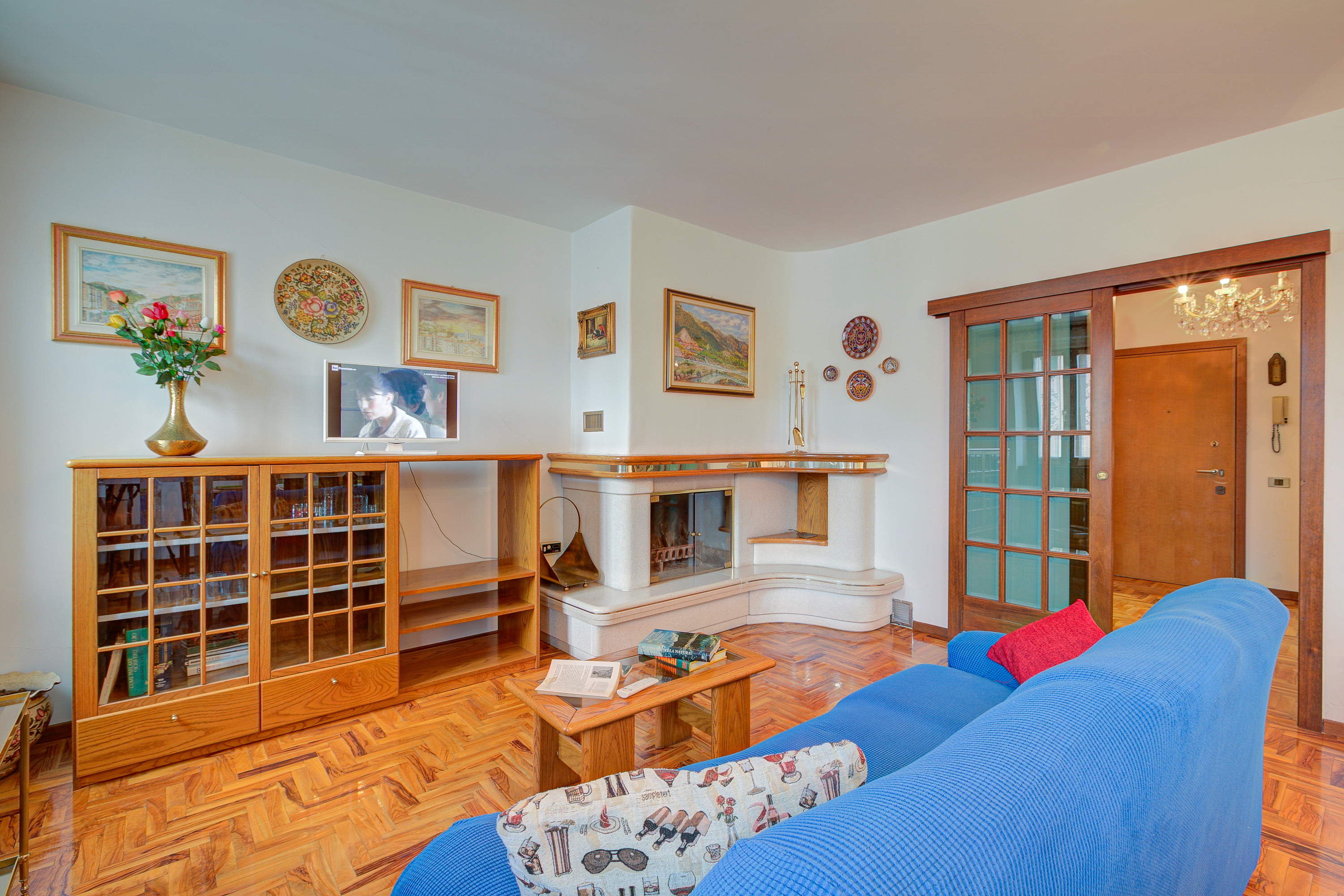 De woonkamer is gevuld met natuurlijk licht en elegant ingericht, wat zorgt voor een warme en gastvrije sfeer. De ruimte is voorzien van een comfortabele bank, een eettafel met stoelen en een flatscreen-tv, ideaal om te ontspannen of quality time door te brengen met dierbaren. De open keuken is goed uitgerust met een kookplaat, koffiezetapparaat, oven en koelkast met vriesvak, zodat alles aanwezig is voor het bereiden van dagelijkse maaltijden. Vanuit de eetruimte is er directe toegang tot het balkon, waar gasten kunnen genieten van de frisse lucht en het panoramische uitzicht tijdens het eten of gewoon ontspannen in de rustige omgeving. Deze Lake Garda-woning combineert elegantie, comfort en natuurschoon voor een onvergetelijk verblijf.