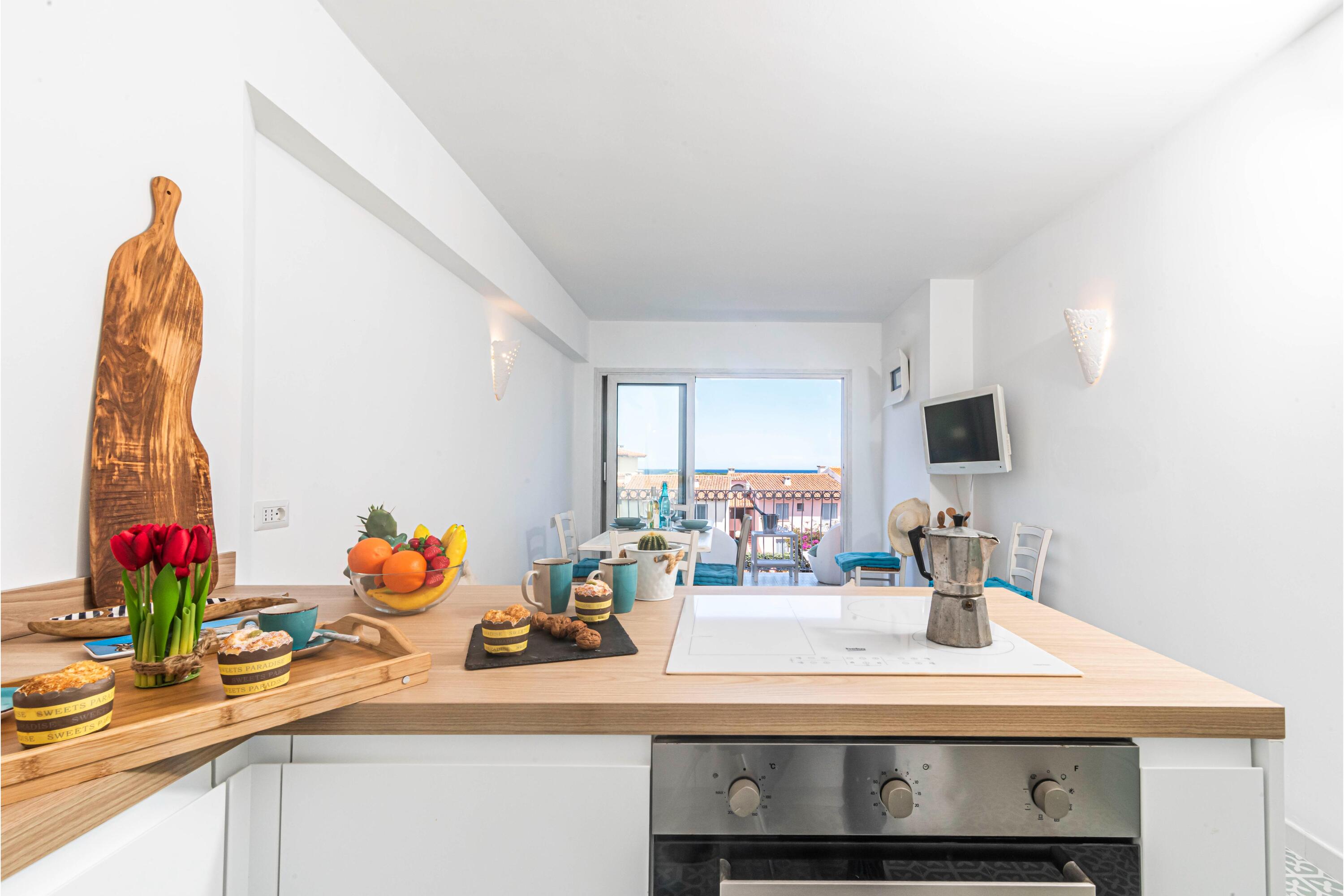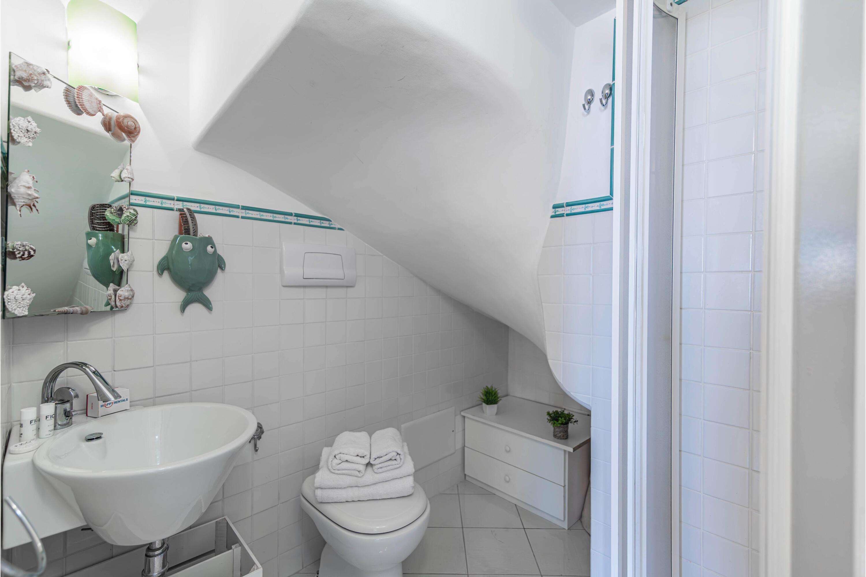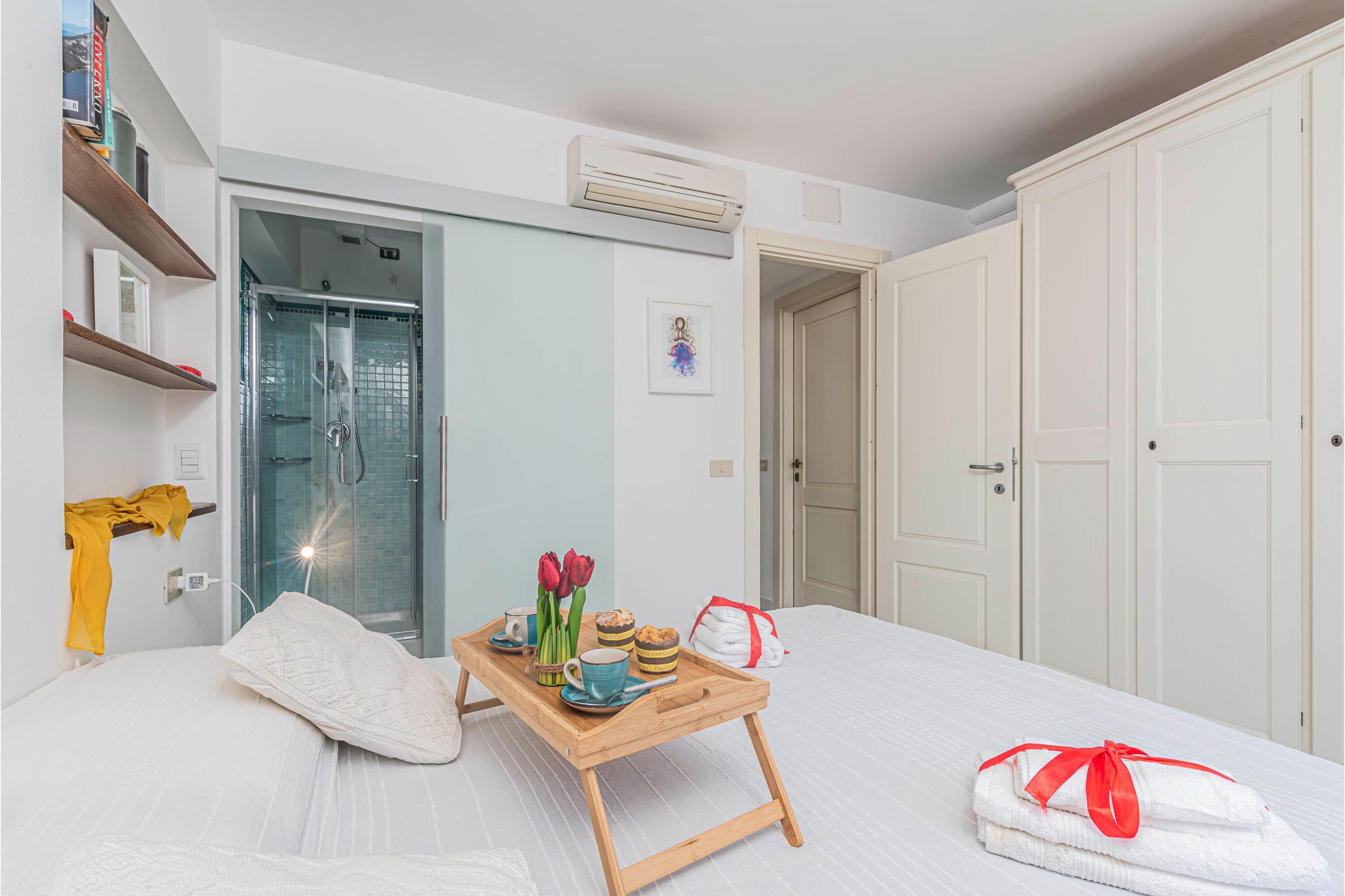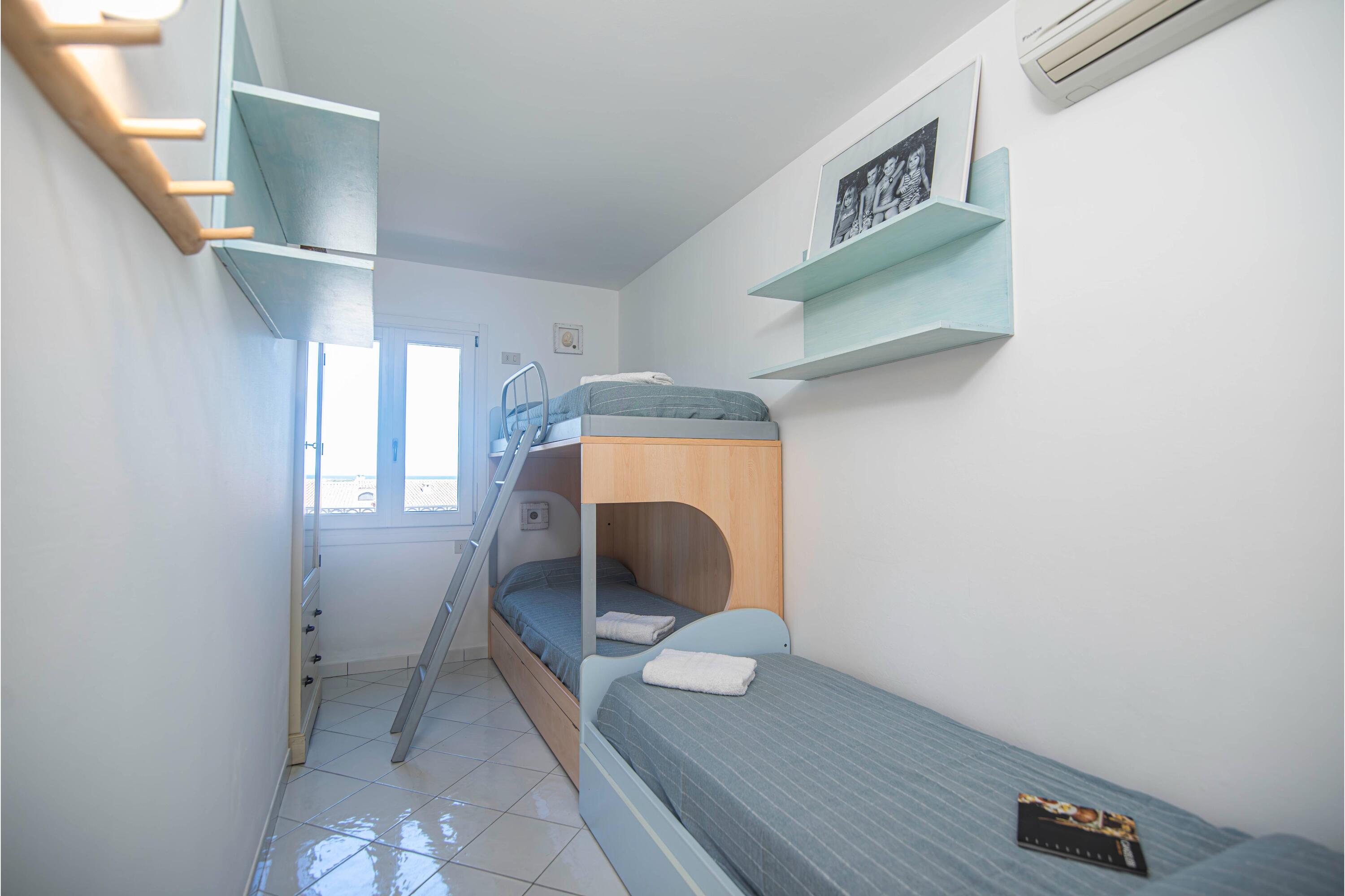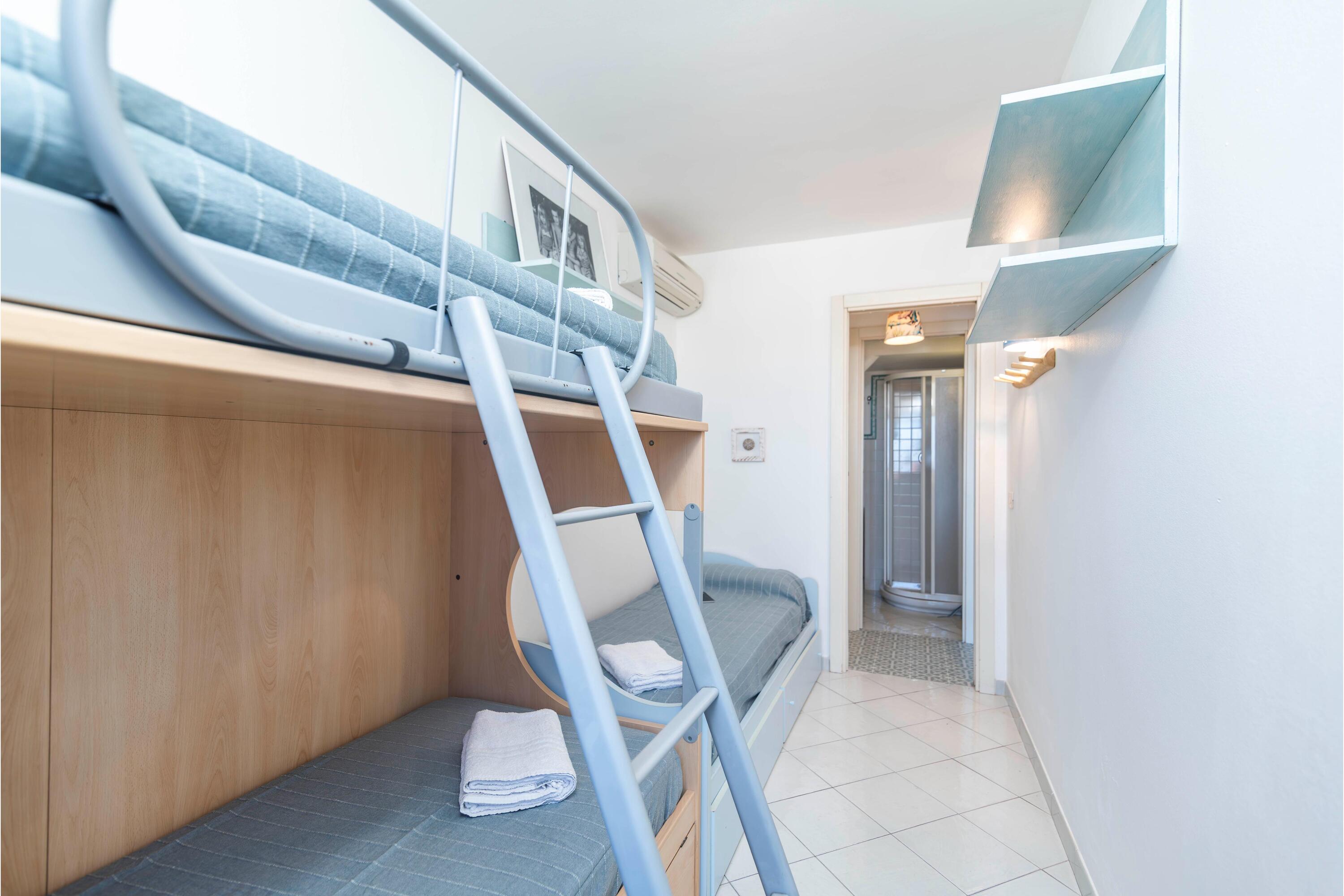 Het appartement op de tweede verdieping beschikt over een moderne, lichte en luchtige woonruimte ingericht met een bank, fauteuils, flatscreen-tv, eettafel en een volledig uitgeruste keuken met een koffiezetapparaat, oven, kookplaat, vaatwasser en koelkast met vriesvak. . Twee slaapkamers bieden plaats aan zes gasten, waarbij slaapkamer 1 een tweepersoonsbed en een eigen badkamer heeft, slaapkamer 2 een stapelbed en een eenpersoonsbed heeft, en een tweepersoonsslaapbank in de woonkamer. Twee badkamers zijn voorzien van een bidet, douche, wastafel en toilet.
