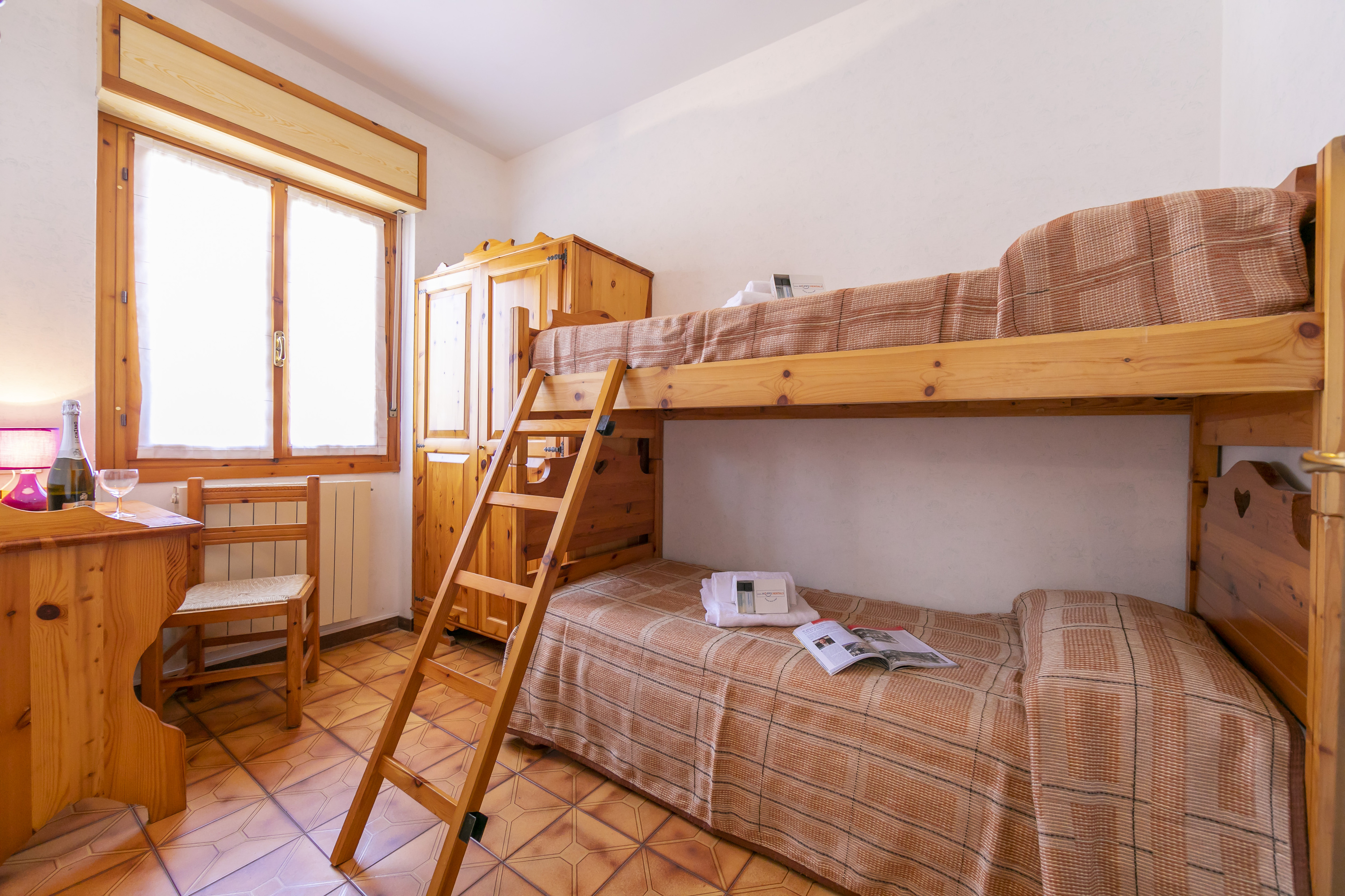Het appartement beschikt over een woonkamer met eettafel, een open keuken en een zithoek. De keuken is uitgerust met een koffiezetapparaat, magnetron, inductiekookplaat, waterkoker, broodrooster en koelkast. Slaapkamer 1 heeft twee eenpersoonsbedden die tegen elkaar geschoven kunnen worden, terwijl slaapkamer 2 een stapelbed voor twee personen heeft. De badkamer is voorzien van een douche, bidet en toilet. Extra voorzieningen zijn onder andere een terras, gratis internet, satelliet-tv en privéparkeergelegenheid.
