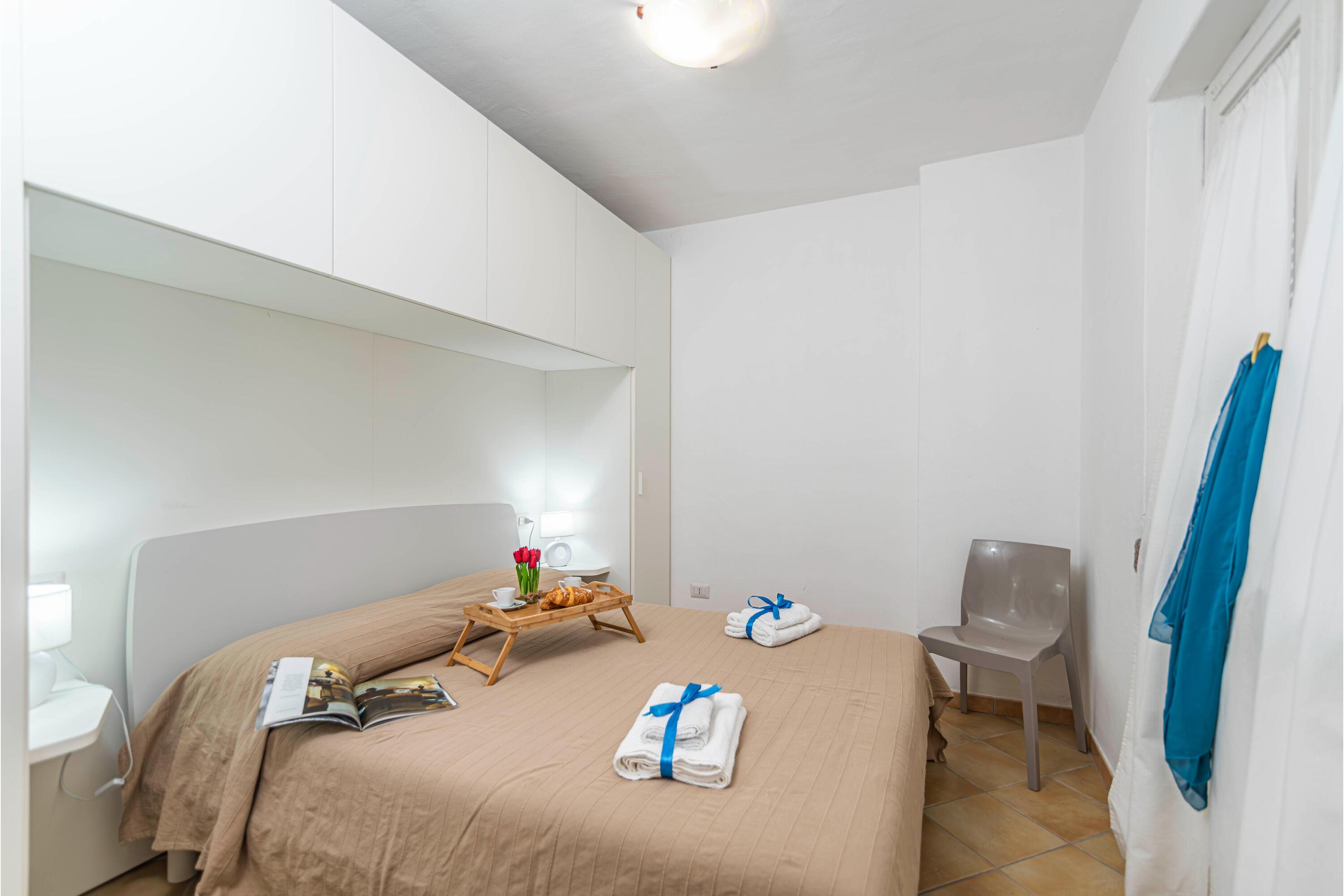 Slaapkamer 2: De tweede slaapkamer is ook ingericht met een tweepersoonsbed en een kledingkast.