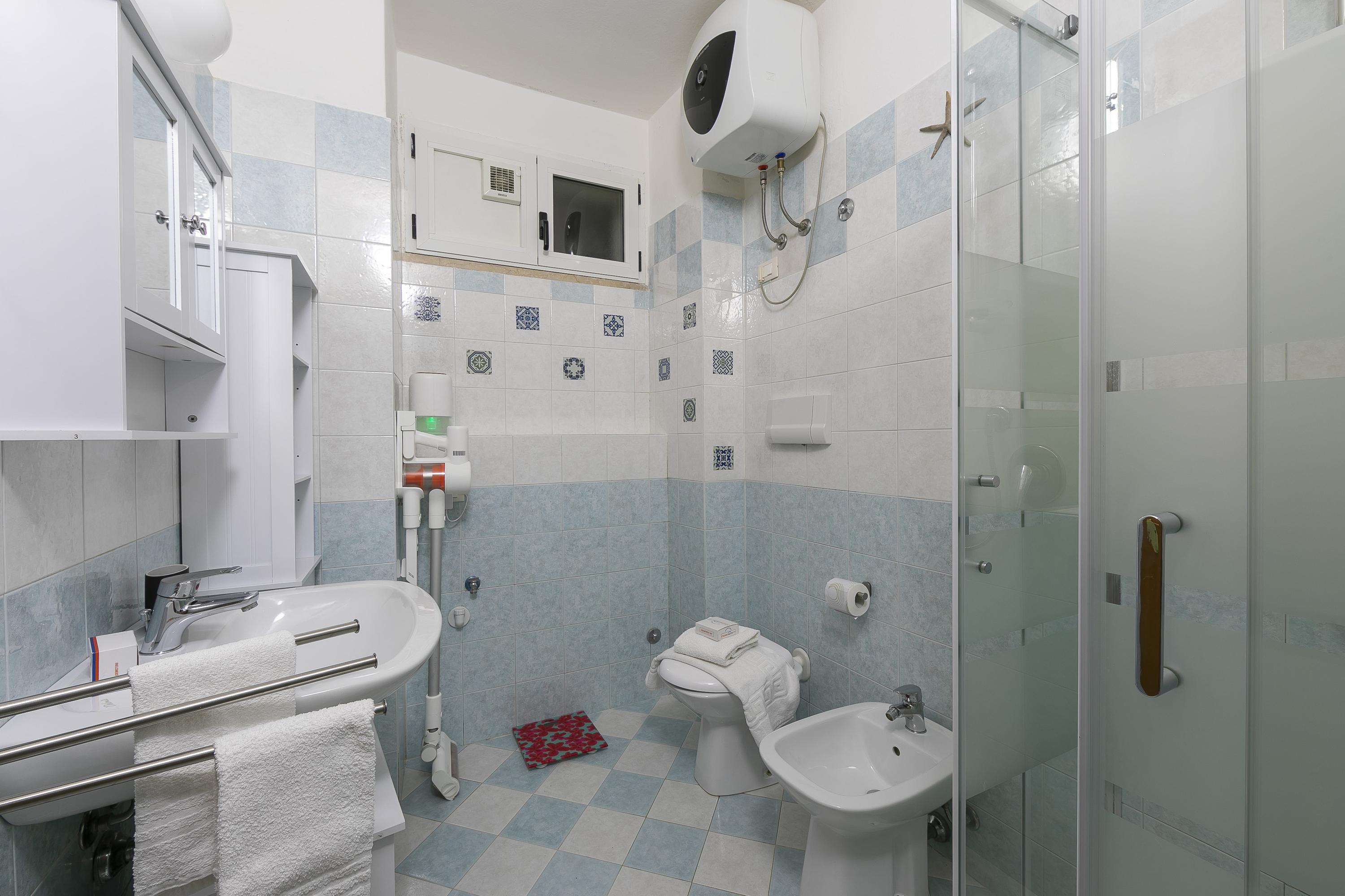 De ingang van het appartement is via een schaduwrijk privéterras met een bank, die leidt naar de open woonruimte met een eigentijdse inrichting en een moderne ingerichte keuken die is uitgerust met alle benodigde apparatuur. Er is een aparte slaapkamer met een tweepersoonsbed en een flatscreen-tv, evenals een badkamer met een douche, wastafel, bidet en toilet. De bank in de woonkamer kan worden omgebouwd tot een tweepersoonsbed voor extra slaapruimte.