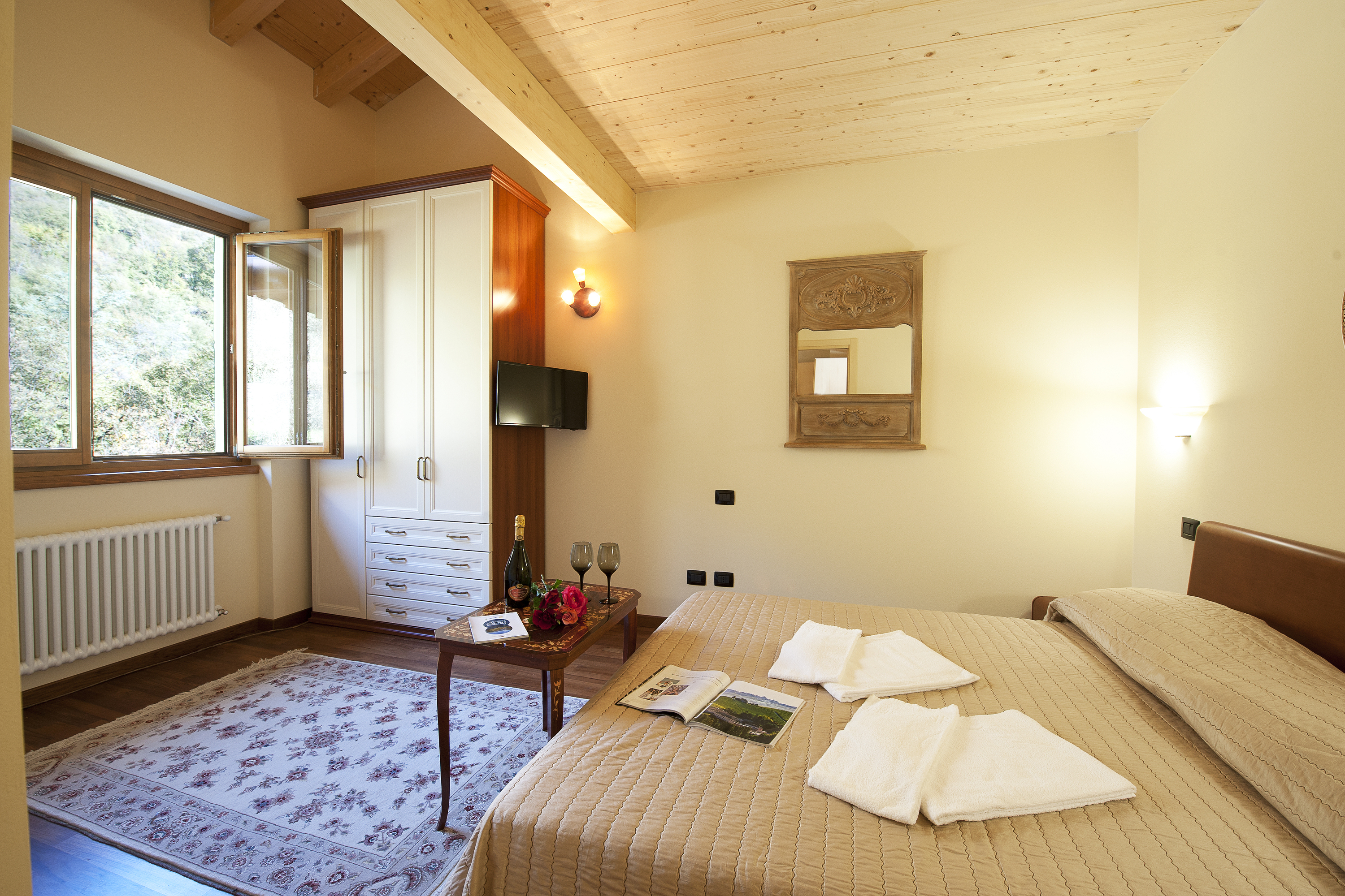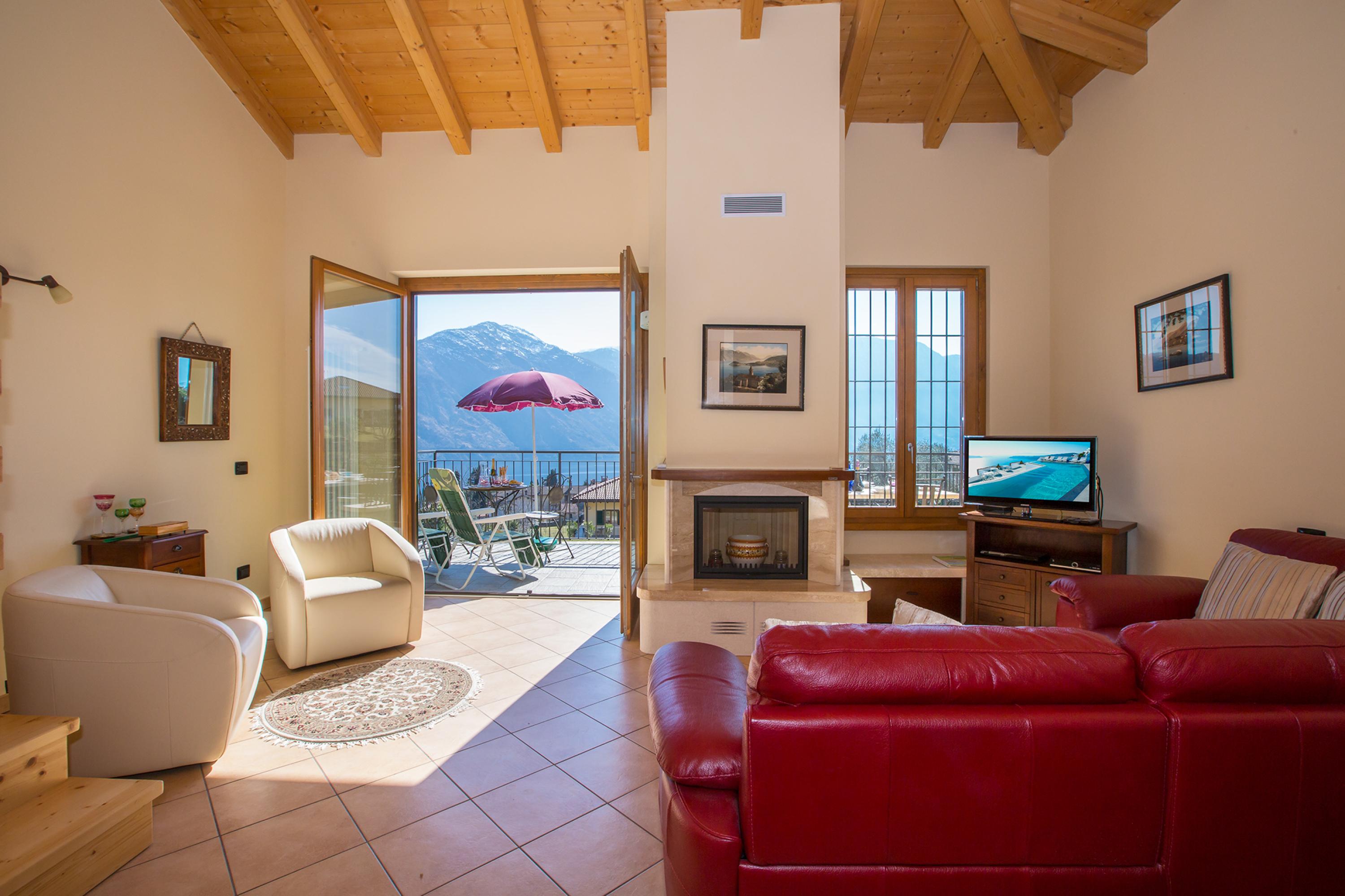 Deze vakantiewoning is ruim en luxe. De accommodatie is geschikt voor koppels, gezinnen en groepen. Het beschikt over een open woonkamer in zacht beige met een hoog plafond. De kamers zijn ingericht met leren banken, een open haard, een eethoek en een kitchenette. Franse deuren openen naar een balkon met prachtig uitzicht op het meer. Gasten kunnen ontspannen met een boek of genieten van een aperitief op het terras. Ze kunnen ook het terrein, een zwembad en het meer bewonderen.