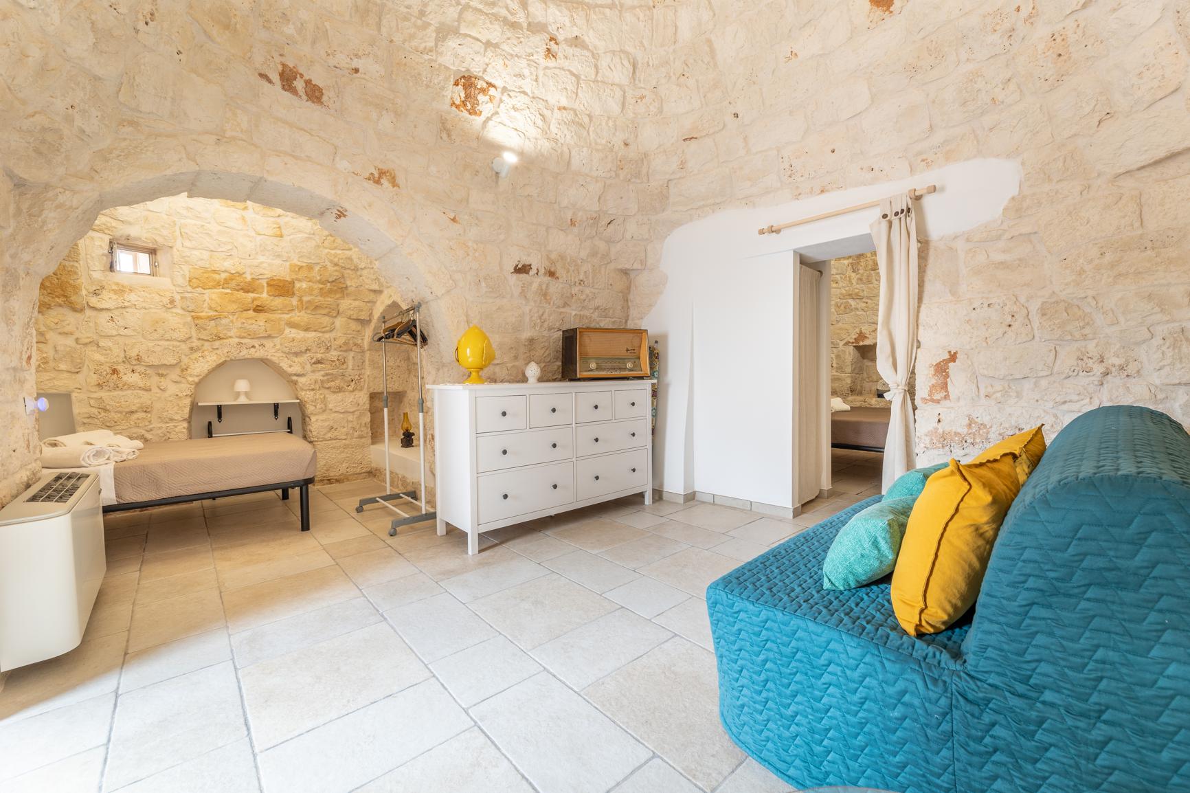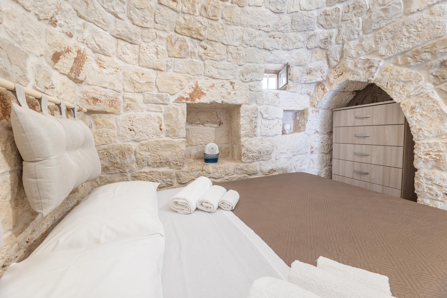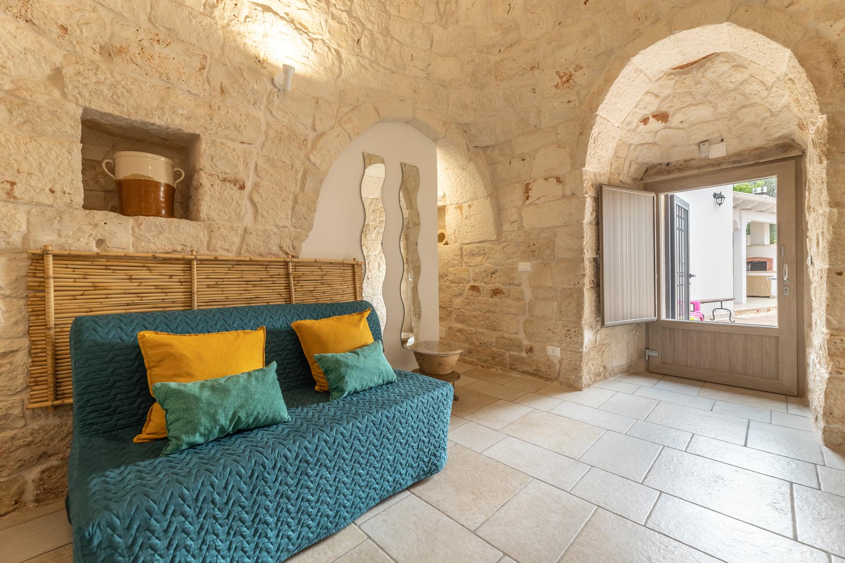 Deze charmante trullo biedt 70 vierkante meter woonruimte en is ideaal voor maximaal zes gasten. De accommodatie heeft twee mooi ingerichte slaapkamers, beide met een comfortabel tweepersoonsbed. Elke slaapkamer heeft een eigen moderne badkamer, waarvan één met een complete badkuip. De ruime woonkamer is voorzien van een slaapbank, waardoor er extra slaapruimte is voor twee gasten.