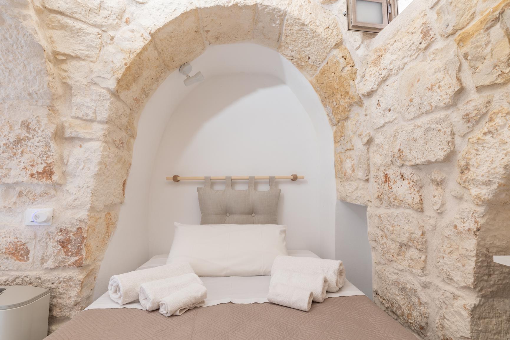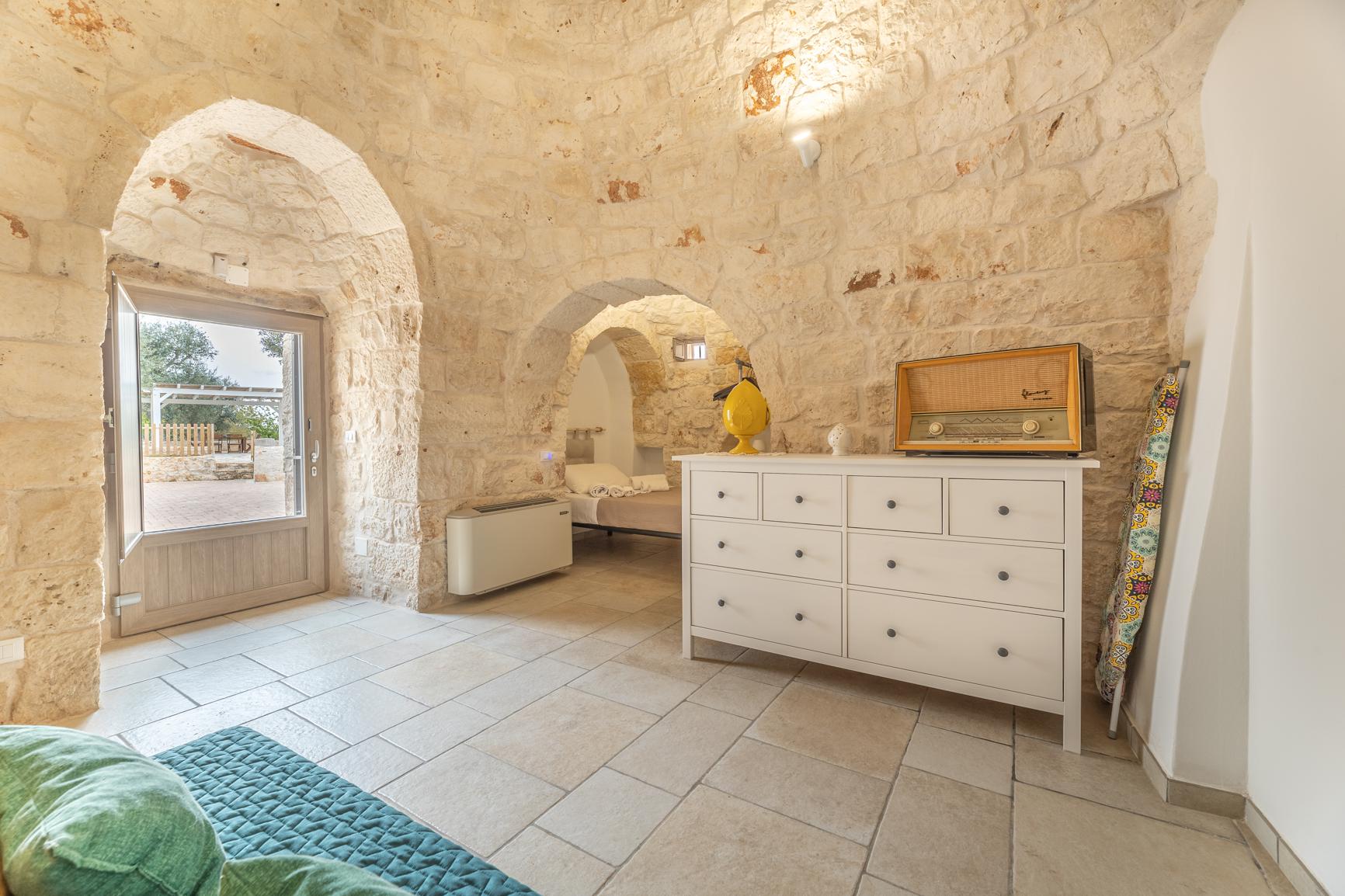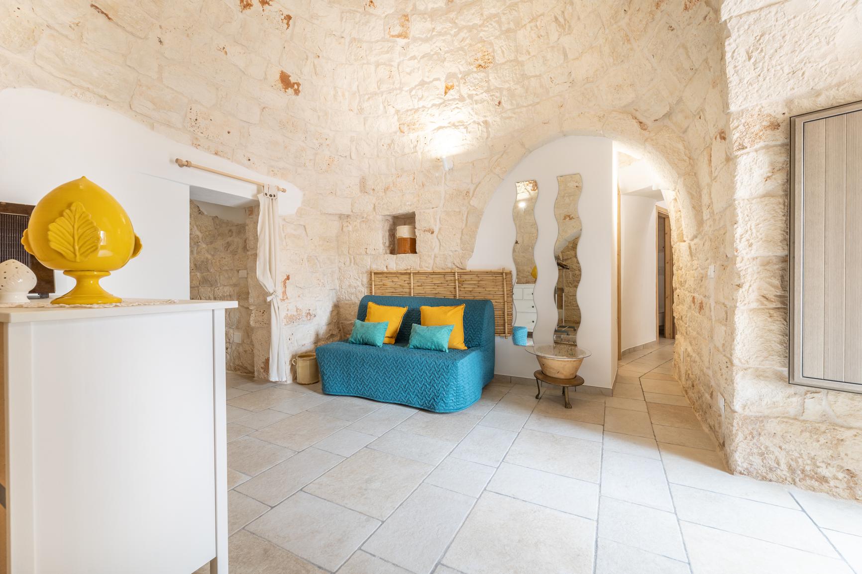 Deze charmante trullo biedt 70 vierkante meter woonruimte en is ideaal voor maximaal zes gasten. De accommodatie heeft twee mooi ingerichte slaapkamers, beide met een comfortabel tweepersoonsbed. Elke slaapkamer heeft een eigen moderne badkamer, waarvan één met een complete badkuip. De ruime woonkamer is voorzien van een slaapbank, waardoor er extra slaapruimte is voor twee gasten.