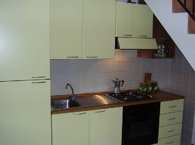 Dit appartement bereikt u via enkele treden en bestaat uit twee verdiepingen. Het is geschikt voor vijf tot zes personen en heeft een oppervlakte van 80m2. Op de begane grond bevindt zich een woonkamer voorzien van een éénpersoons slaapbank. De open keuken is volledig uitgerust met onder andere gasfornuis, Italiaans koffiezetapparaat, waterkoker, koelkast met vriesvak en een elektrische oven. Via een trap bereikt u de eerste verdieping waar zich drie slaapkamers bevinden. De eerste slaapkamer is voorzien van een tweepersoonsbed. De tweede slaapkamer beschikt over twee éénpersoonsbedden. In de derde slaapkamer vindt u een éénpersoonsbed. Op aanvraag kan er een kinderbedje bijgeplaatst worden. Er zijn twee badkamers voorzien van wc, bidet, douche en wastafel. In een van de badkamers bevindt zich een zitbad. Alle appartementen zijn modern en comfortabel ingericht en beschikken over airconditioning, tv en centrale verwarming. Het appartement beschikt over een tuin of balkon voorzien van tuinmeubilair waar u kunt genieten van het schitterende uitzicht.
