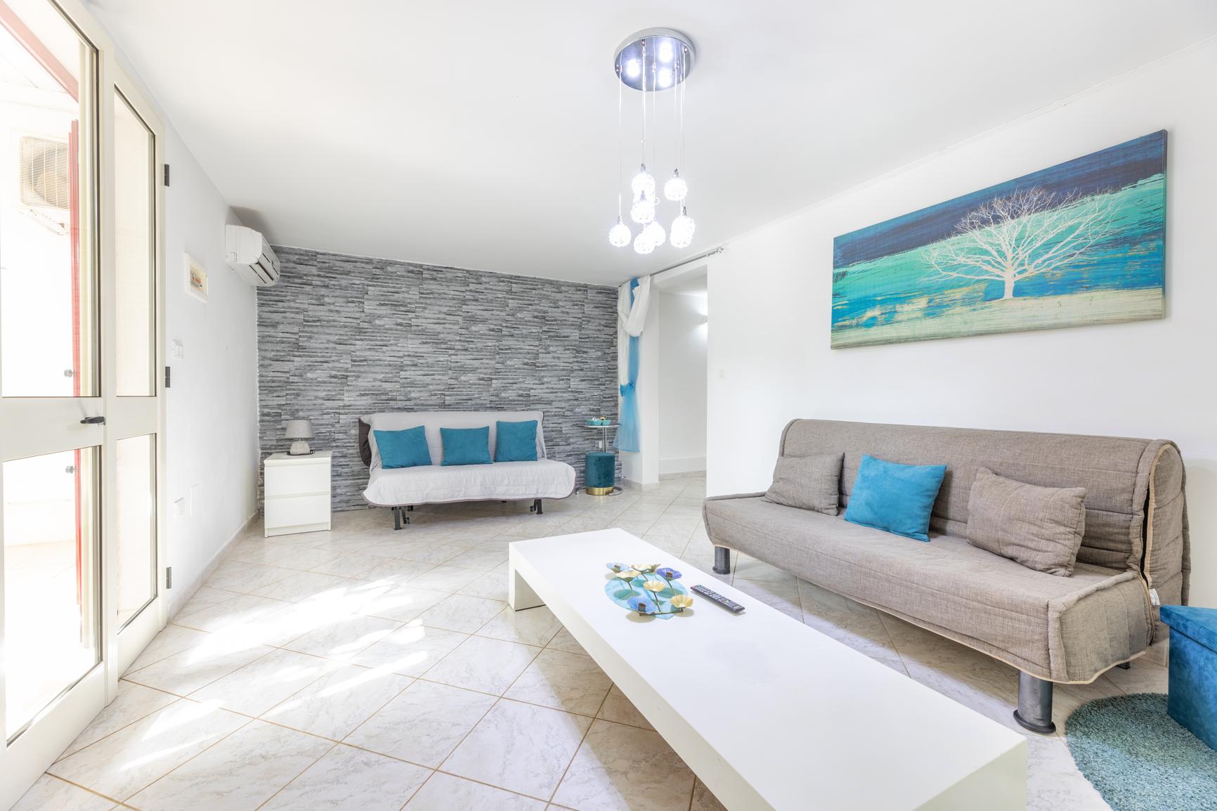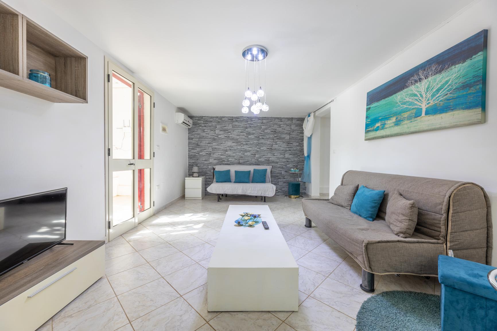 Deze charmante villa biedt een rustige ontsnapping met een indeling van 70 m², met twee gezellige slaapkamers en twee badkamers. Perfect voor maximaal acht gasten, biedt de villa een comfortabele en uitnodigende woonruimte, met een zwembad met zeezicht dat bijdraagt aan de rustige sfeer. De eerste slaapkamer is uitgerust met een tweepersoonsbed, terwijl de tweede twee eenpersoonsbedden biedt om gasten gemakkelijk te accommoderen. De villa heeft een volledig uitgeruste badkamer en een tweede toilet voor uw gemak. De ruime woonkamer biedt voldoende zitplaatsen, waaronder een tweepersoons slaapbank, een andere eenpersoons slaapbank, evenals een wieg voor jonge kinderen.