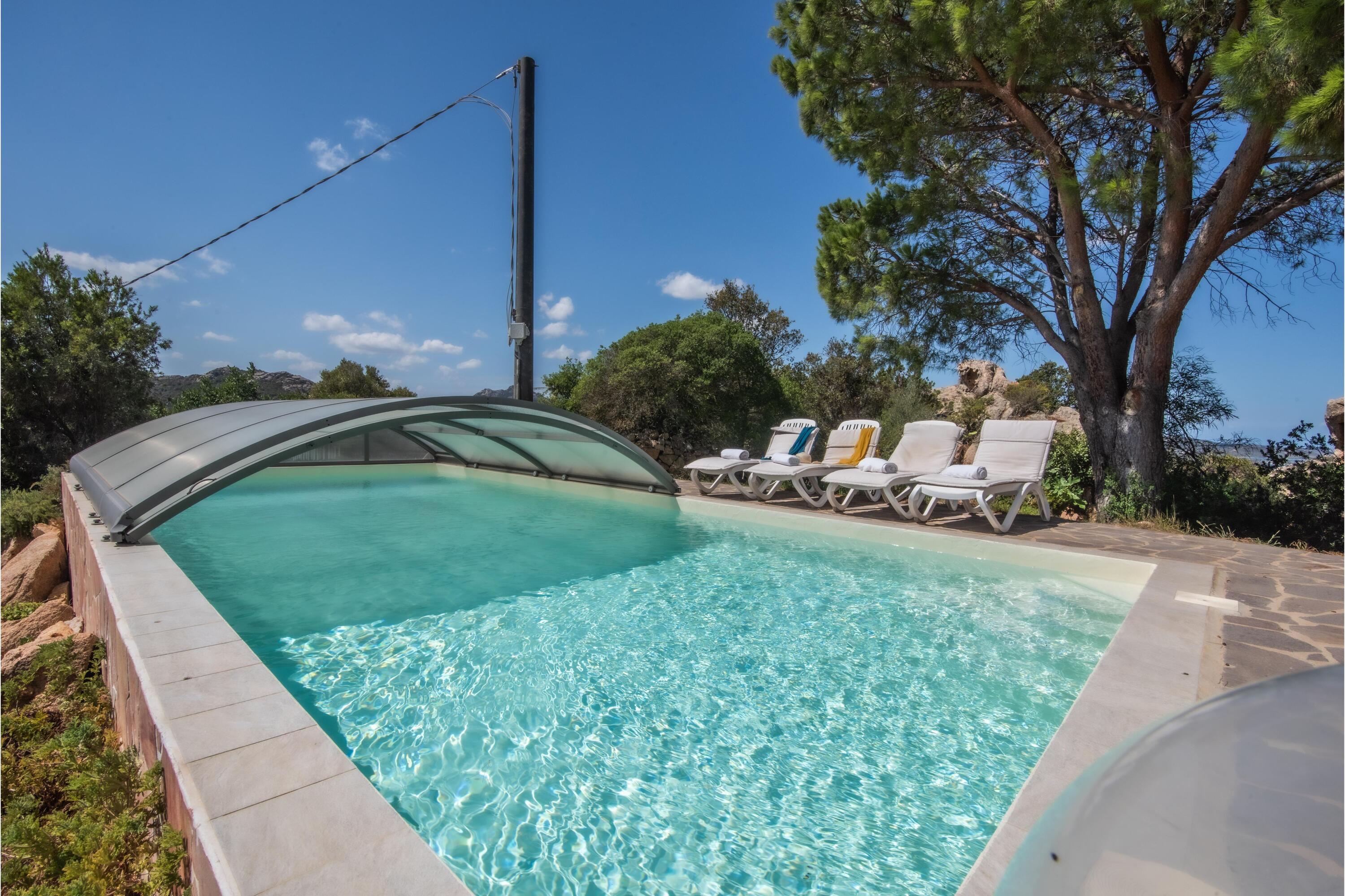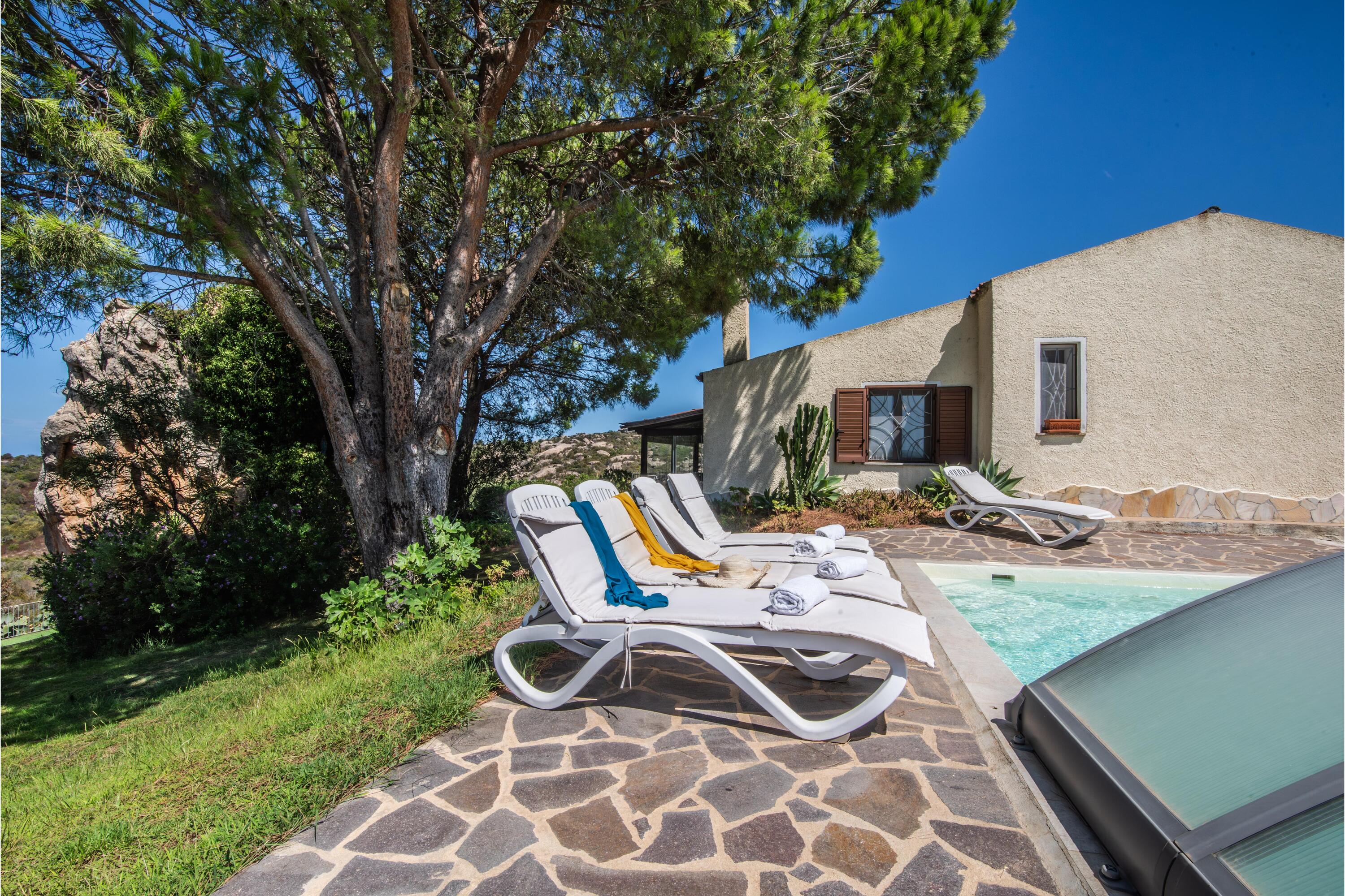 De uitgestrekte tuin van de villa biedt diverse plekken waar gasten kunnen ontspannen. Er zijn ligstoelen bij het privézwembad, een tweede zonneterras, naast indrukwekkende rotsen en een open terras om te ontspannen met een drankje bij zonsondergang.