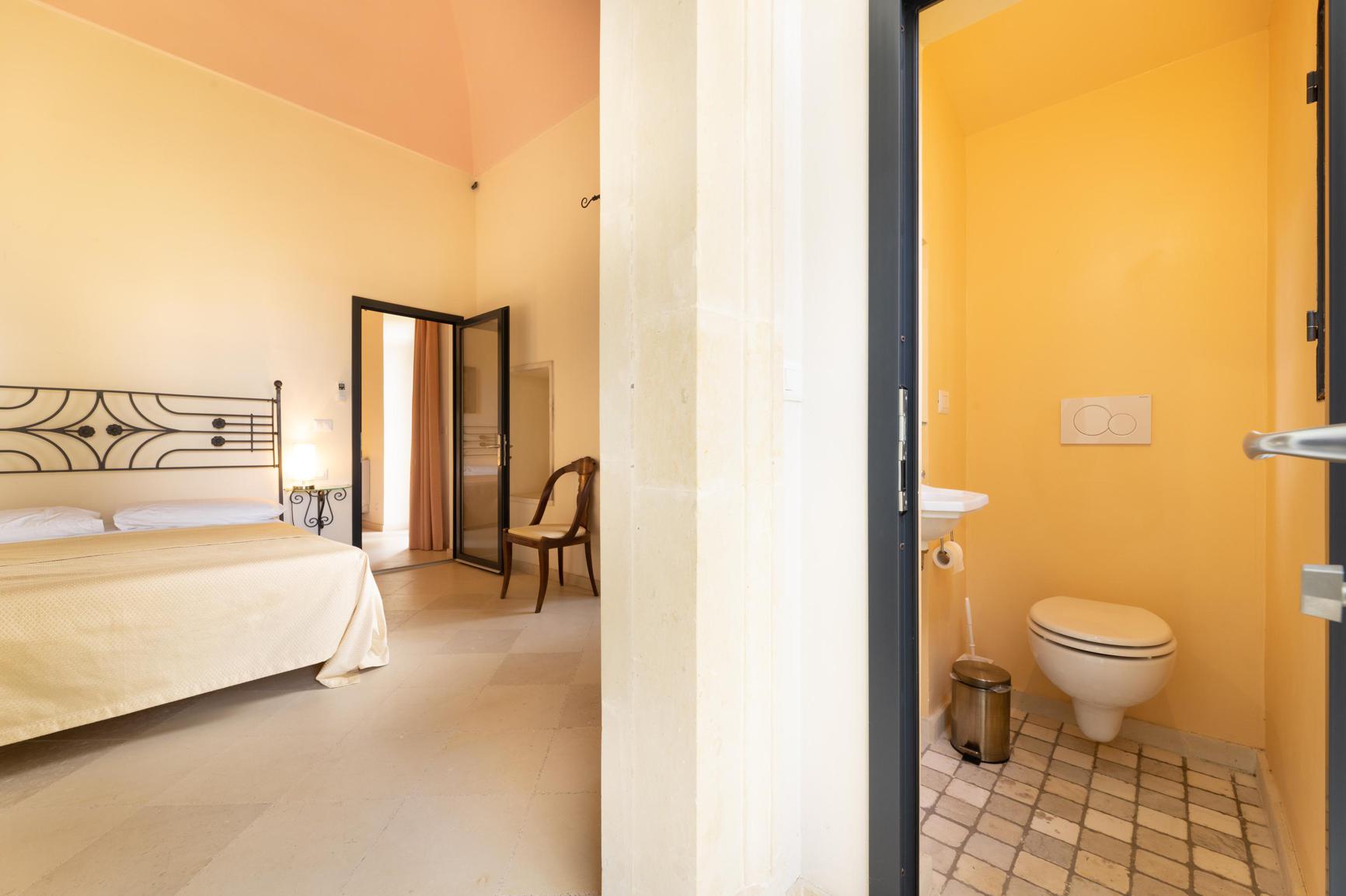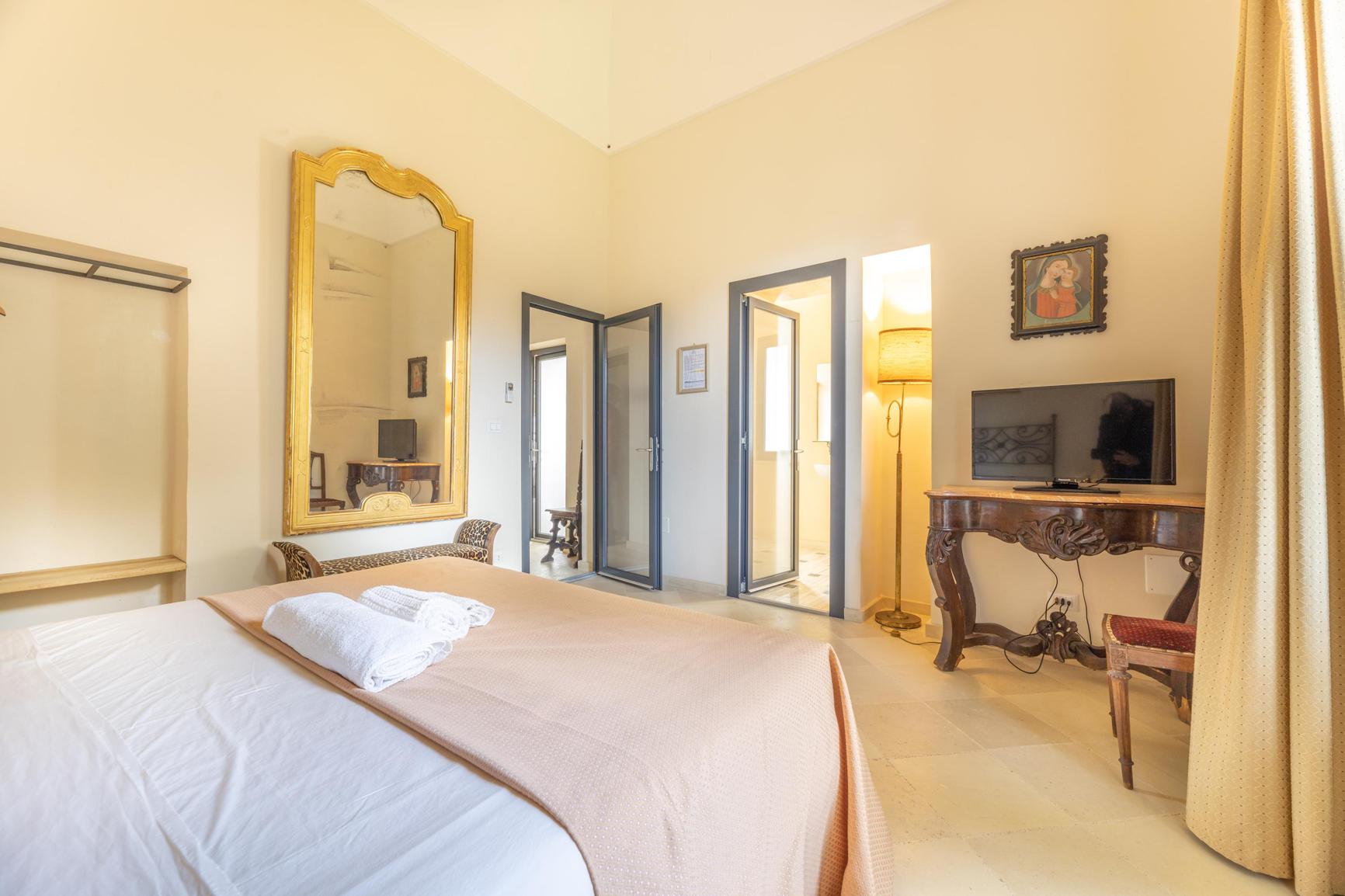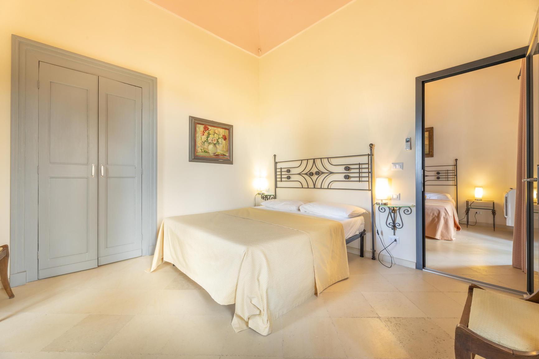 Deze historische villa van 800 vierkante meter in Cutrofiano biedt een elegant en ruim toevluchtsoord voor maximaal 20 gasten. De residentie beschikt over tien elegante tweepersoonskamers, elk met een eigen en-suite badkamer om comfort en privacy voor alle gasten te garanderen. Dertien badkamers zijn zorgvuldig over het hele terrein verdeeld om zowel gemak als luxe te bieden.
