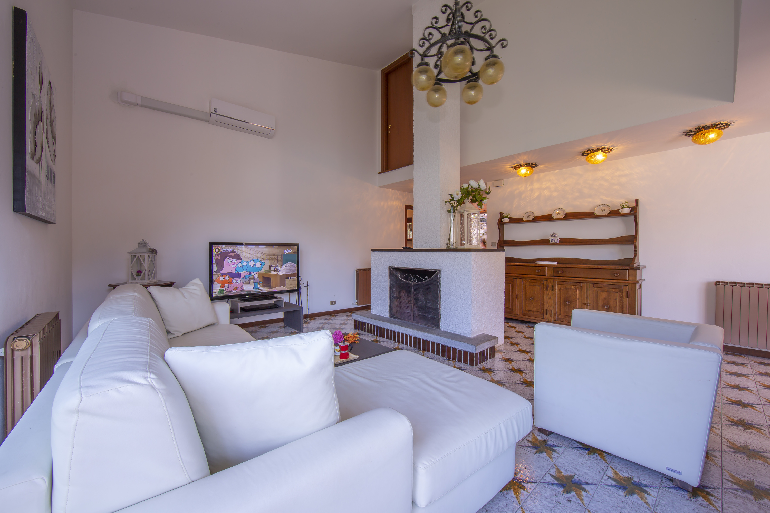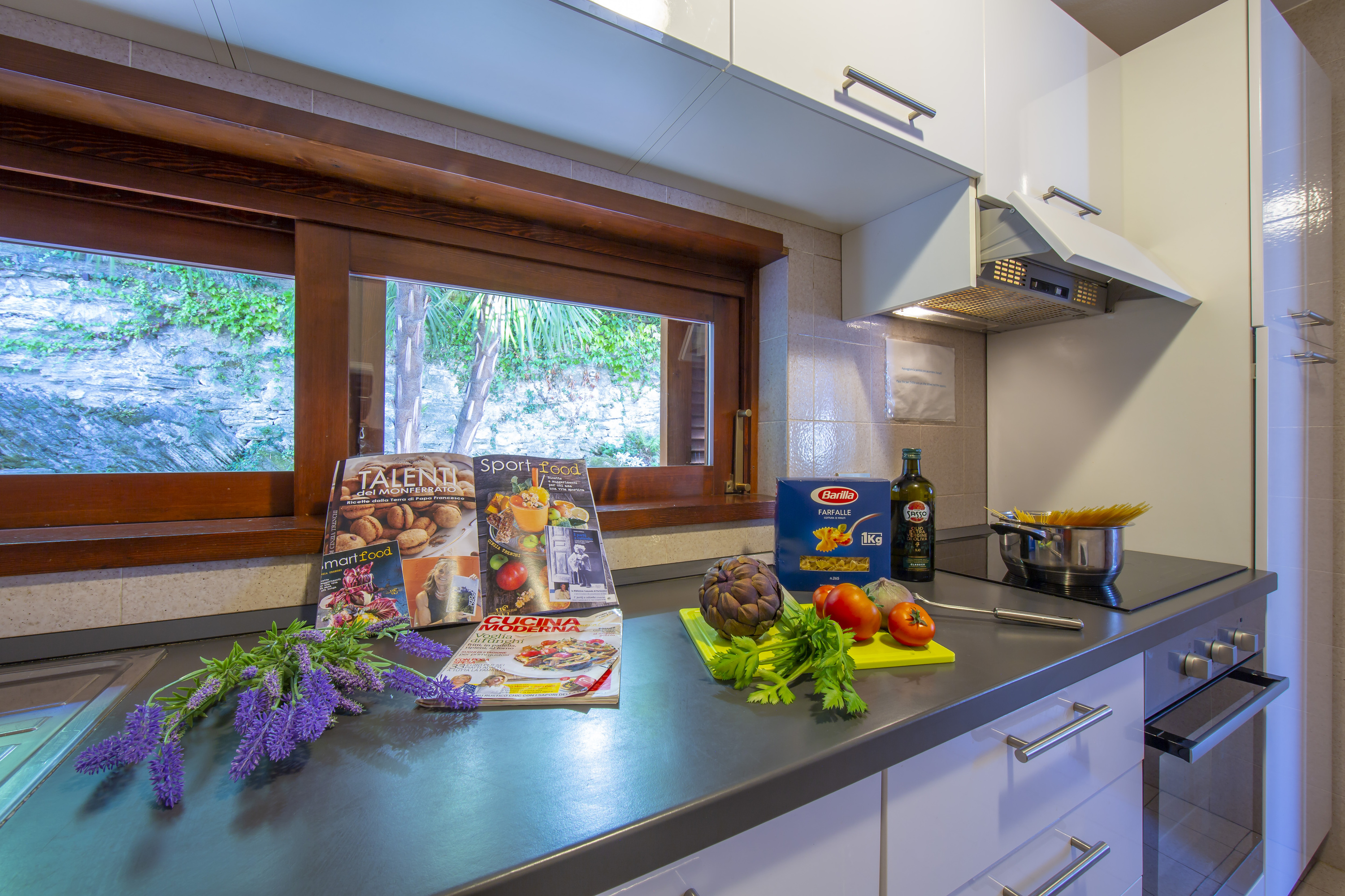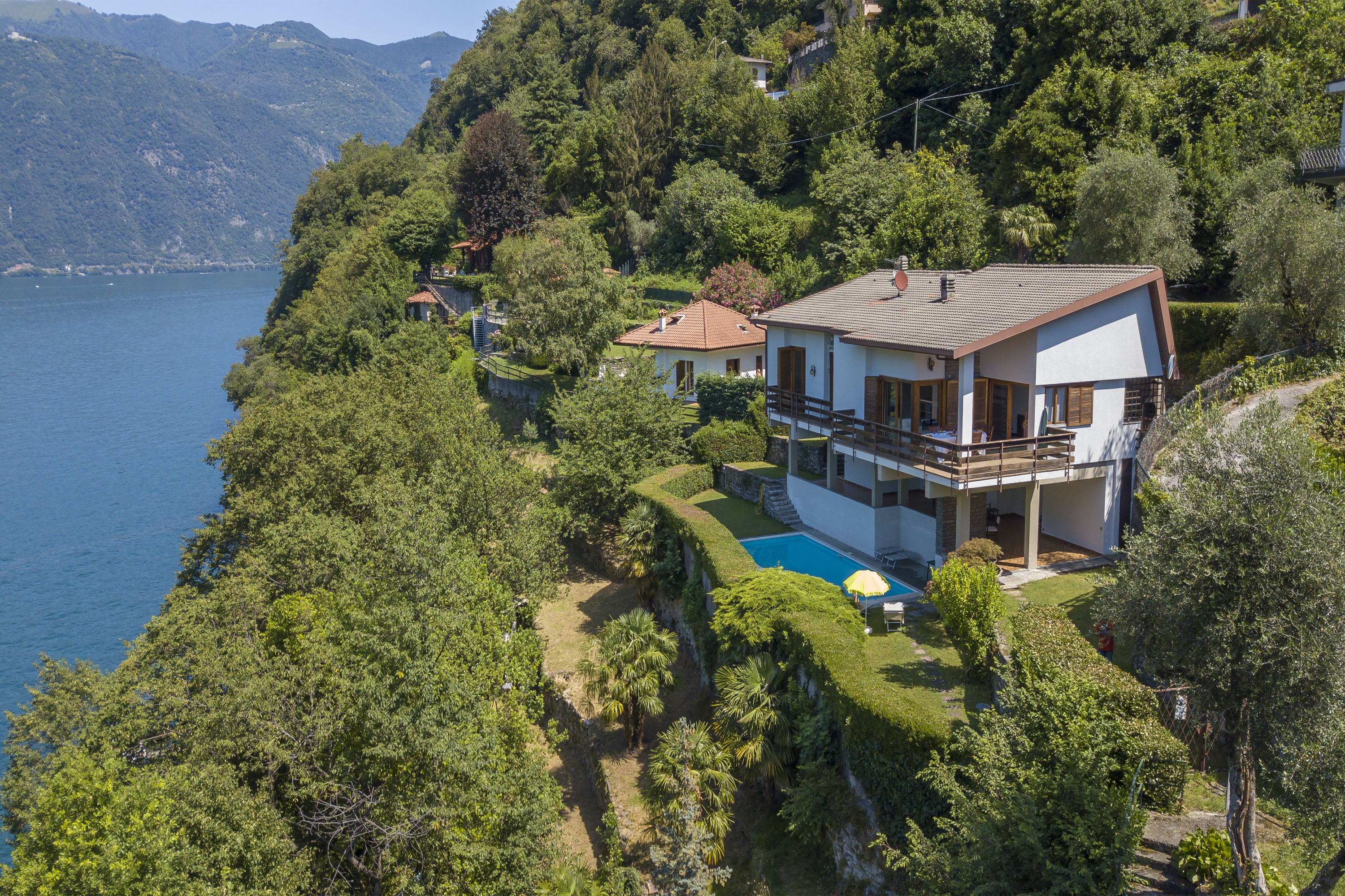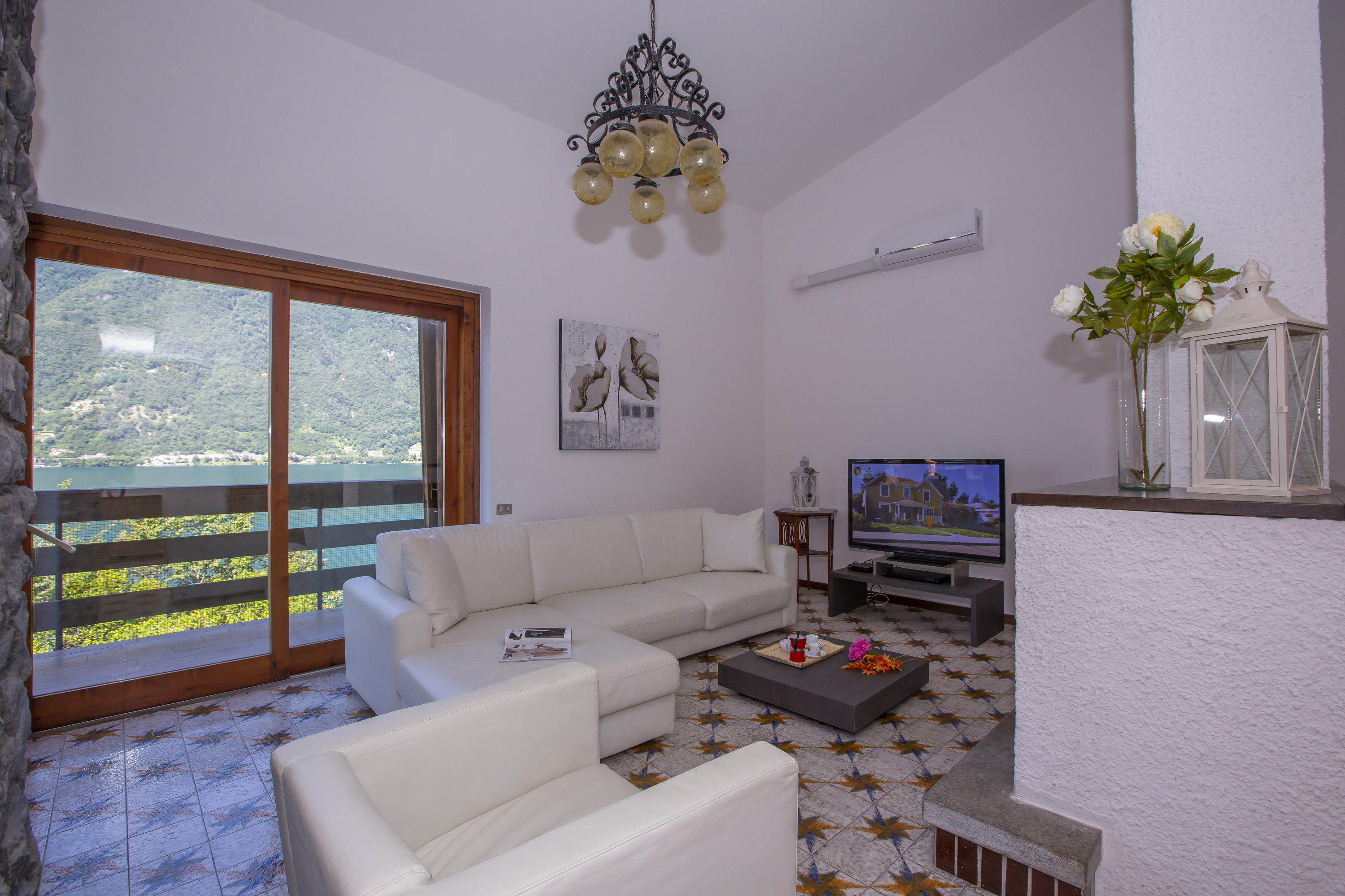 Een ruime open woonkamer met direct uitzicht op het meer en de bergen wordt aangevuld met een eetkamer met uitzicht op de bergen en een aparte volledig ingerichte keuken. Een prachtig eetterras met uitzicht op de tuin biedt ook de perfecte setting voor ontspannen zomerse barbecues en gedenkwaardige diners in de buitenlucht in de avond.