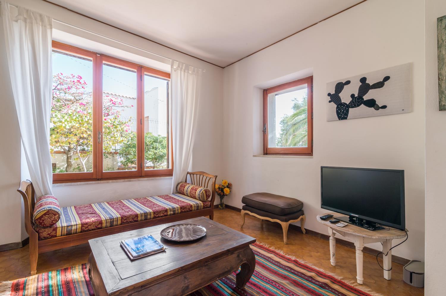 Voor grotere groepen is er een charmant bijgebouw met twee kamers in perfecte Sardijnse stijl te huur. Dit bijgebouw biedt vier extra bedden en een extra badkamer, naadloos verbonden met het hoofdgebouw.