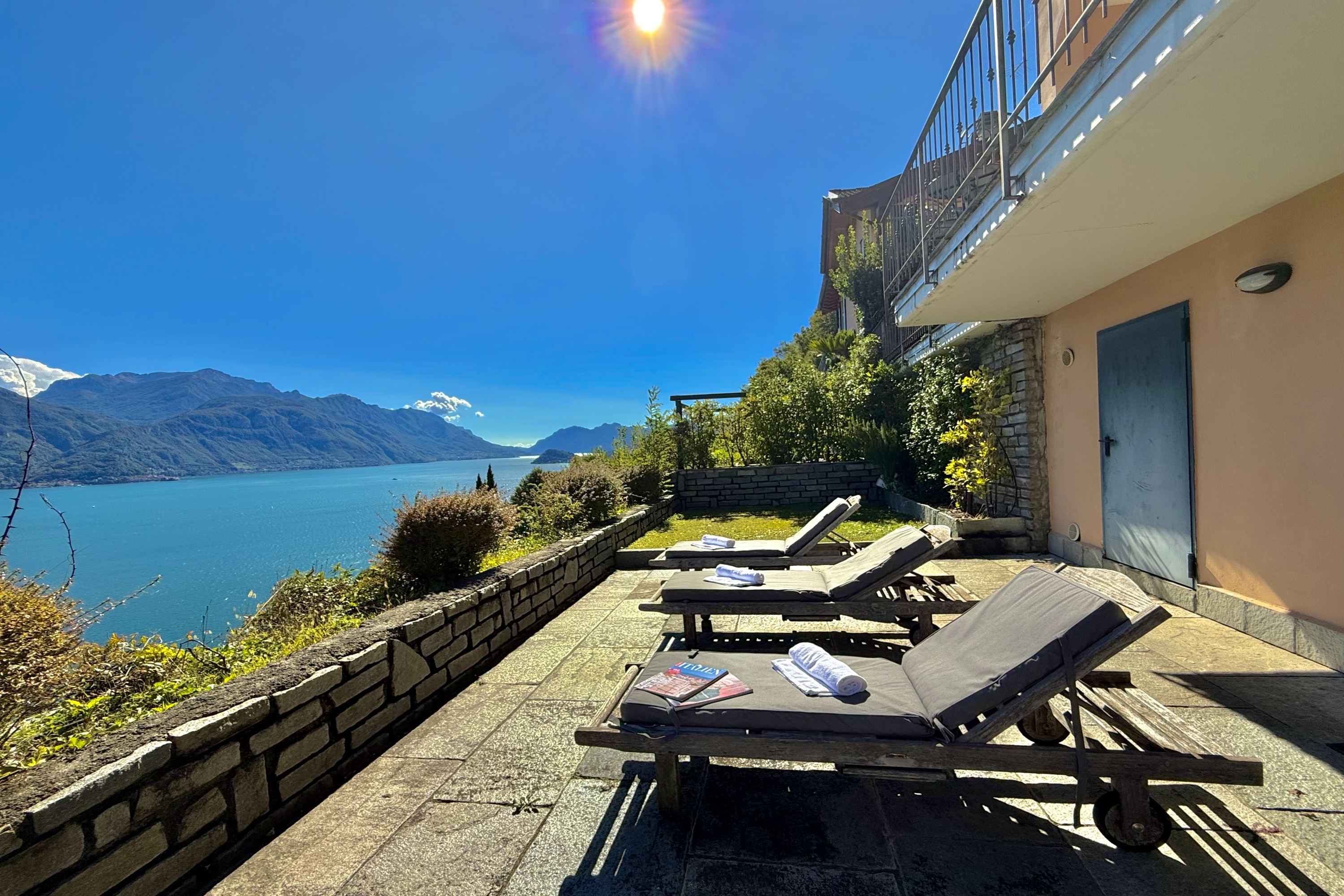 Naast de privé zonnige terrassen kunnen gasten genieten van het gedeelde zwembad, dat spectaculair uitzicht op het meer biedt.