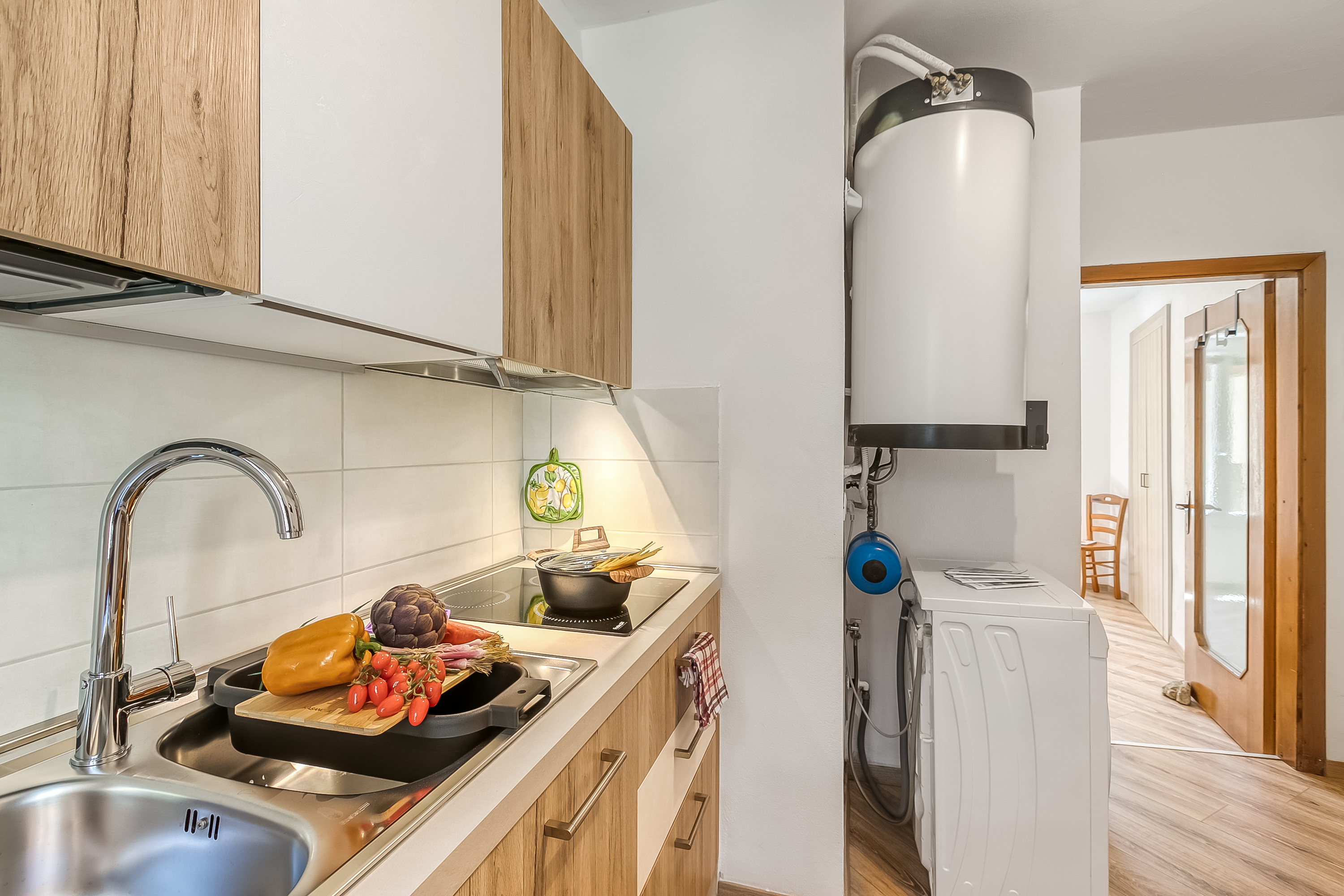 Binnen is het appartement ingericht om een huiselijke maar moderne sfeer te garanderen. De keuken is uitgerust met een magnetron, oven, inductiekookplaat en koffiezetapparaat, waardoor het bereiden van maaltijden eenvoudig is. De eethoek biedt plaats aan twee personen, perfect voor gezellige maaltijden. Voor ontspanning kunt u op de bank genieten van moderne gemakken zoals gratis Wi-Fi en een Smart TV. Stap naar buiten en geniet van het privéterras, een ideale plek om te ontspannen in de open lucht of te genieten van een rustige avond onder de sterren. De ruimte is zorgvuldig ontworpen om uw verblijf te verrijken met schoonheid en functionaliteit.
